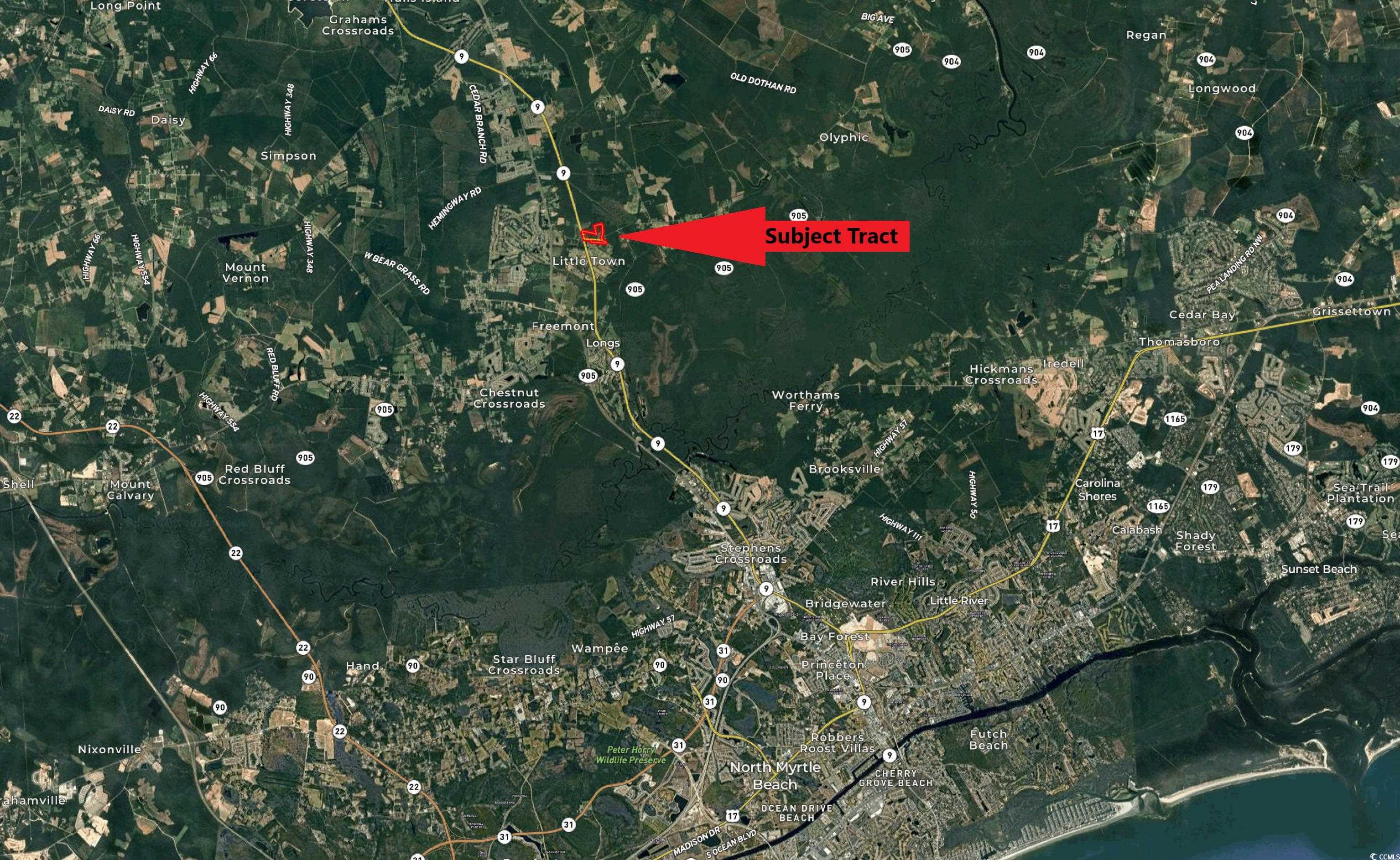 REDUCED!!! 47-acre tract of Development land with 1,o27 feet of highway road frontage less than 2 miles from SC HWY 905 and less than 10 miles from North Myrtle Beach and U.S. 17! Beautiful development tract right in the middle of the fastest growing region in Horry County and across the east coast. Tract contains over 1,000 feet of highway road frontage along the heavily-traveled S.C. HWY 9 corridor of Horry County. New developments and new communities are sprouting up all around this tract that makes this tract a real jewel for your next development. Very limited tracts are available along this corridor for development and this one is making its debut right in time. Tract is between Loris and North Myrtle Beach within the Longs Community and less than 2 miles from S.C. HWY 905. The rear of the tract abuts the old Buck Creek Run, but Buck Creek has been significantly channelized allowing water to drain effectively that has reduced flooded for all tracts along its limits. Few properties are available in this corridor right now and this one is perfect for any developer ready for progress! Don't let this property get by before another developer snags this one up! Not only could this tract be eligible for a future development, the tract could be a perfect place to build a home or create a mini-farm to raise some livestock, or take advantage of the abundant deer and turkey population that pass through this tract going to and from the Buck Creek corridor. Tract contains all the right stuff for the wildlife enthusiast with the opportunity to take a large Horry County whitetail, a long-bearded turkey, or a collection of small game. The frontage is mostly covered in loblolly pine, but the back half of the tract is covered in beautiful oaks in the red and white oak family that contribute to its magnificent character. It is truly a beautiful tract of land that one must come and see.