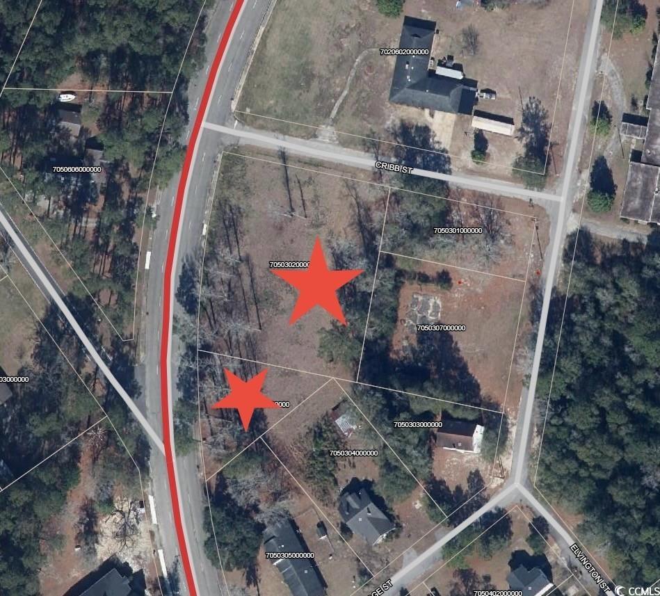 Corner lot that is partially cleared in a charming small town. Estimated at 1.30 of an acre. STICK BUILT ONLY! NO TINY HOMES! No HOA'S!!! No timeframe on building! TWO PARCELS CONVEY! Water and sewer run on that road. Buyer will have to pay tap in fees. You are an estimate of 50 minutes away from North Myrtle Beach, SC and all that it offers. Which means you are tucked away from all the beach traffic, but close enough if you want to visit anytime. Buyer is responsible for all measurement verifications.