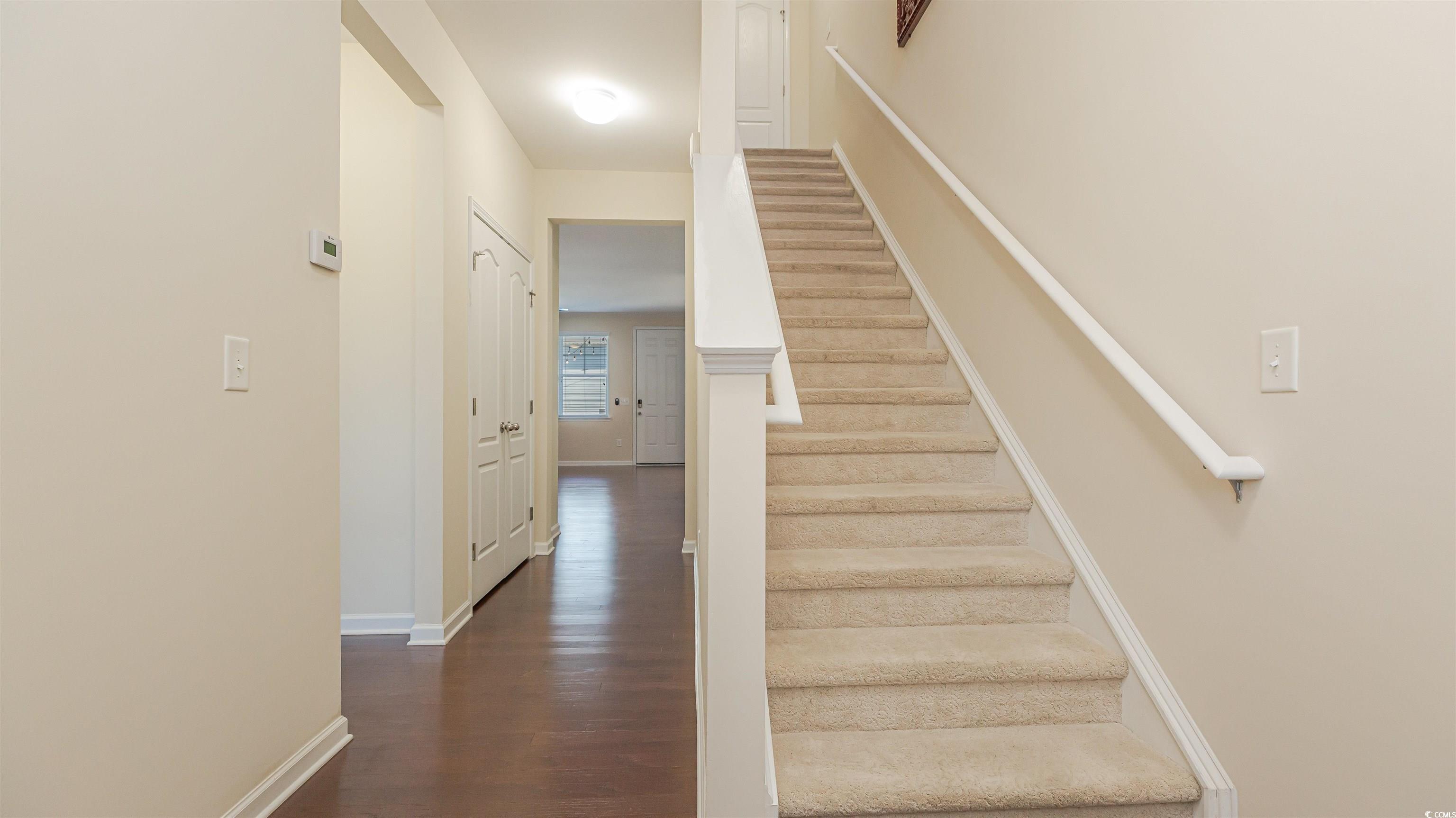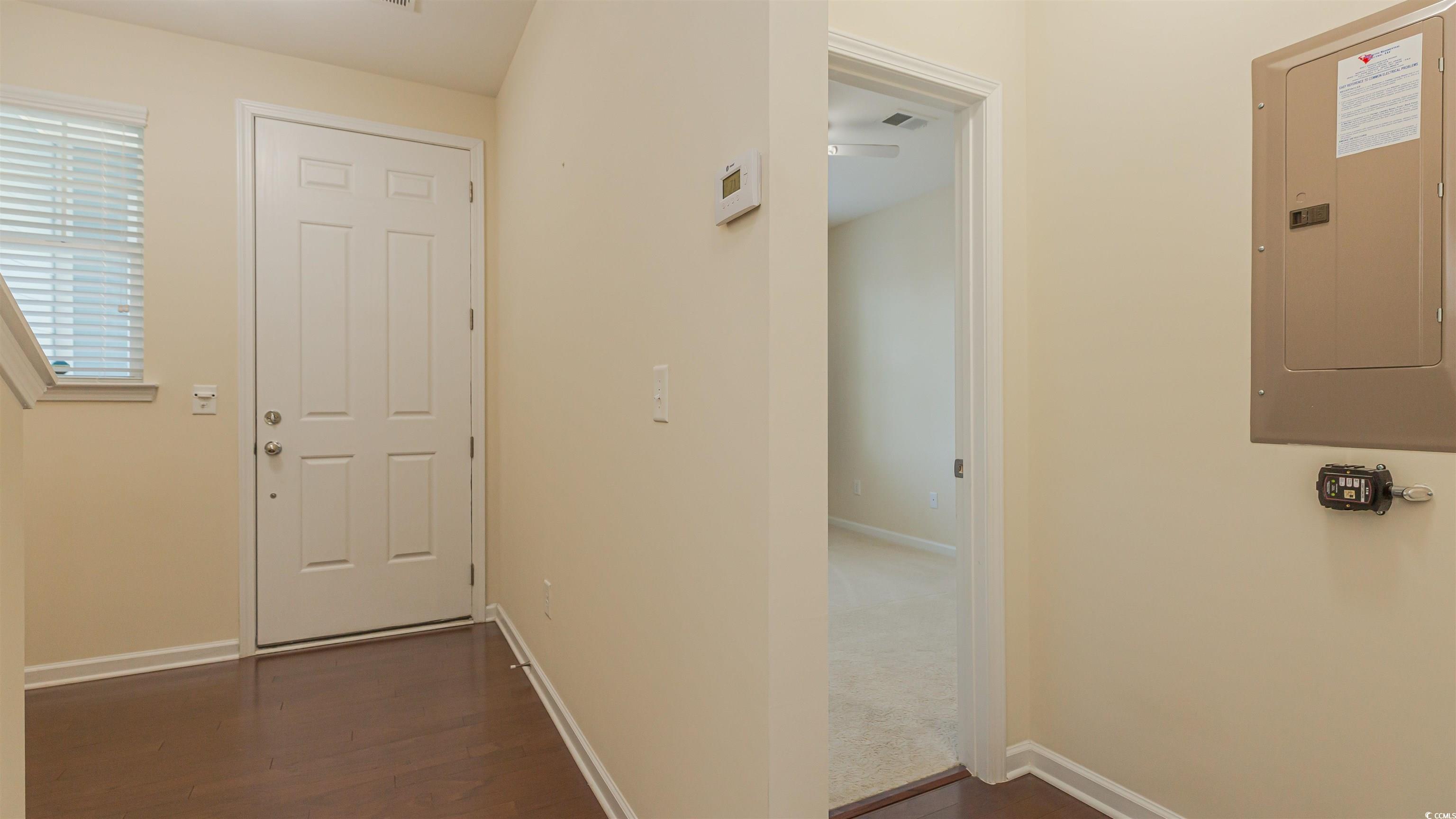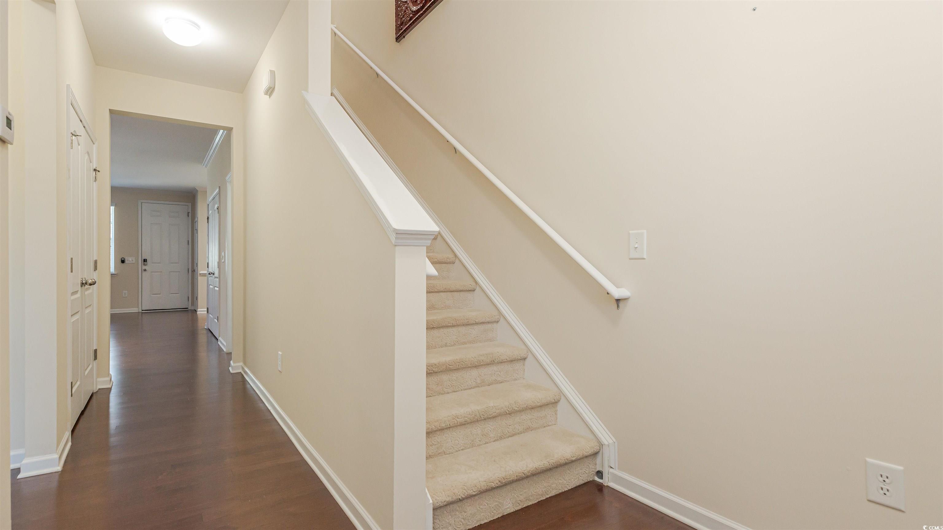 Live the dream in Market Common! This beautiful 3 bed, 3.5 bath townhouse is one of the most desirable floorplans in Emmens Preserve. This town home features hardwood floors in the living, dining, and kitchen areas. There is a water filtration system that runs throughout the home! Downstairs you have a first floor master with a full bath. Upstairs you will find the other 2 bedrooms, each with a full bath & walk in closets. As a bonus, there are large flat screen TVs in every bedroom. And as you walk upstairs you will find a built in desk, perfect for homework or an at home office. Private courtyard and 2 car garage! Come live at the beach with limited maintenance with only a 10 min bike ride or golf cart to the Beach or Myrtle Beach State Park! This resort style community offers an outdoor pool, fitness center, multiple lakes, dog park, walking and biking trails, picnic areas, fire pits and so much more! No smoking allowed. Minimum 1-year lease required. Tenant responsible for paying electric, gas, water, cable, and internet.