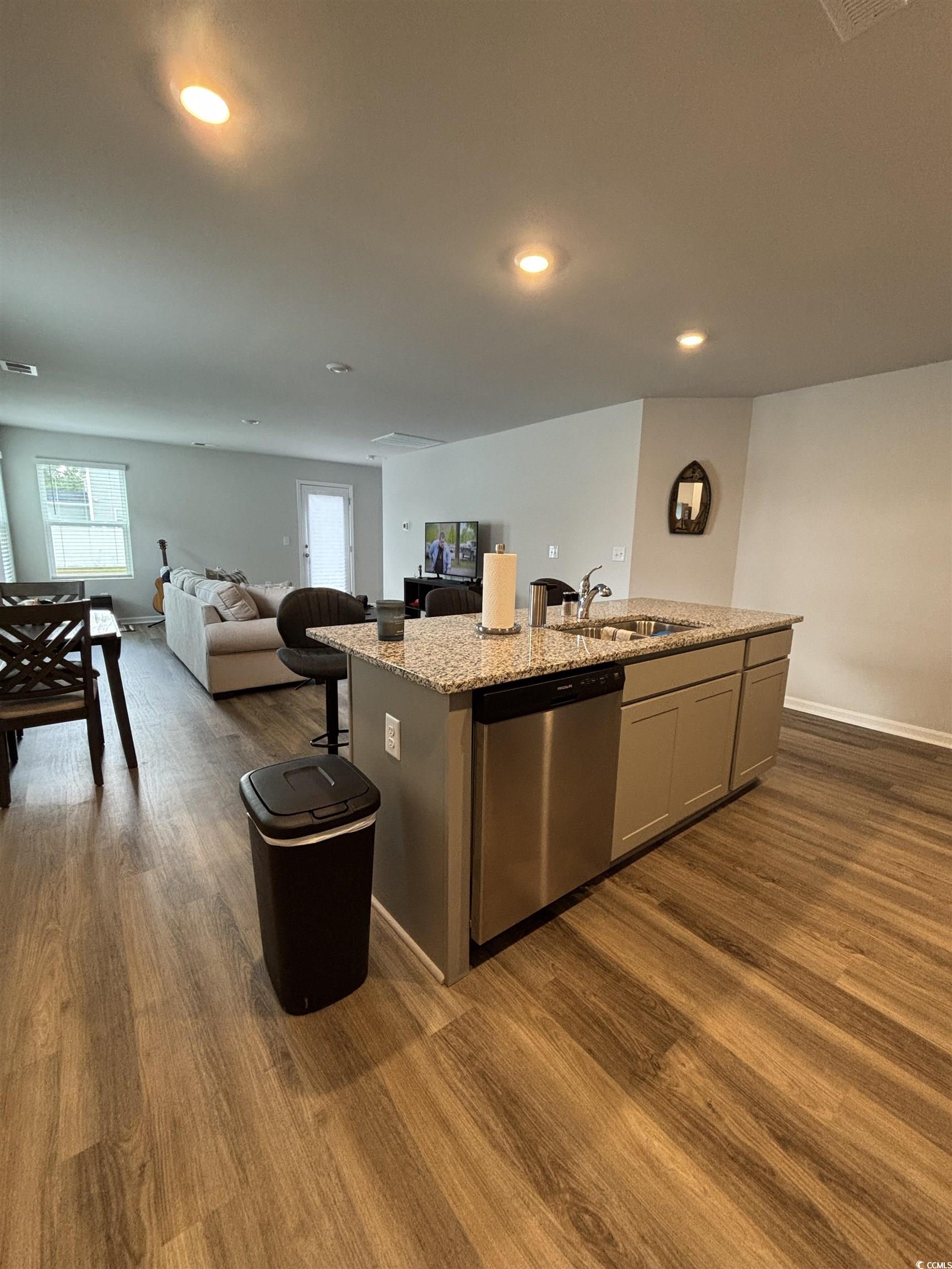 Welcome to this beautiful and move-in ready 3-bedroom, 2-bath single-family home located in the desirable Rivertown Landing community of Conway, South Carolina. This well-maintained home offers the perfect blend of comfort, style, and functionality in a peaceful neighborhood setting just minutes from historic downtown Conway and a short drive to Myrtle Beach. Step inside to find a bright, open-concept floor plan featuring a spacious living area with vaulted ceilings and plenty of natural light. The kitchen is thoughtfully designed with ample cabinetry, modern appliances, and a convenient breakfast bar overlooking the dining and living spacesideal for both everyday living and entertaining. The primary suite provides a relaxing retreat with a large walk-in closet and a private ensuite bath. Two additional bedrooms offer flexibility for guests, a home office, or a hobby room. The second full bath is easily accessible and tastefully finished. Outside, enjoy a private backyard with a patioperfect for grilling, outdoor dining, or simply unwinding after a long day. The home also includes an attached two-car garage, a laundry area, and excellent curb appeal with manicured landscaping. Located in a quiet, family-friendly community, Rivertown Landing is close to local schools, restaurants, shopping, and area attractions. With easy access to major highways, you can enjoy the best of both small-town charm and coastal living. This home offers the comfort of modern living paired with the relaxed atmosphere of Conways growing residential communitiesperfect for those seeking a serene lifestyle near the Grand Strand.