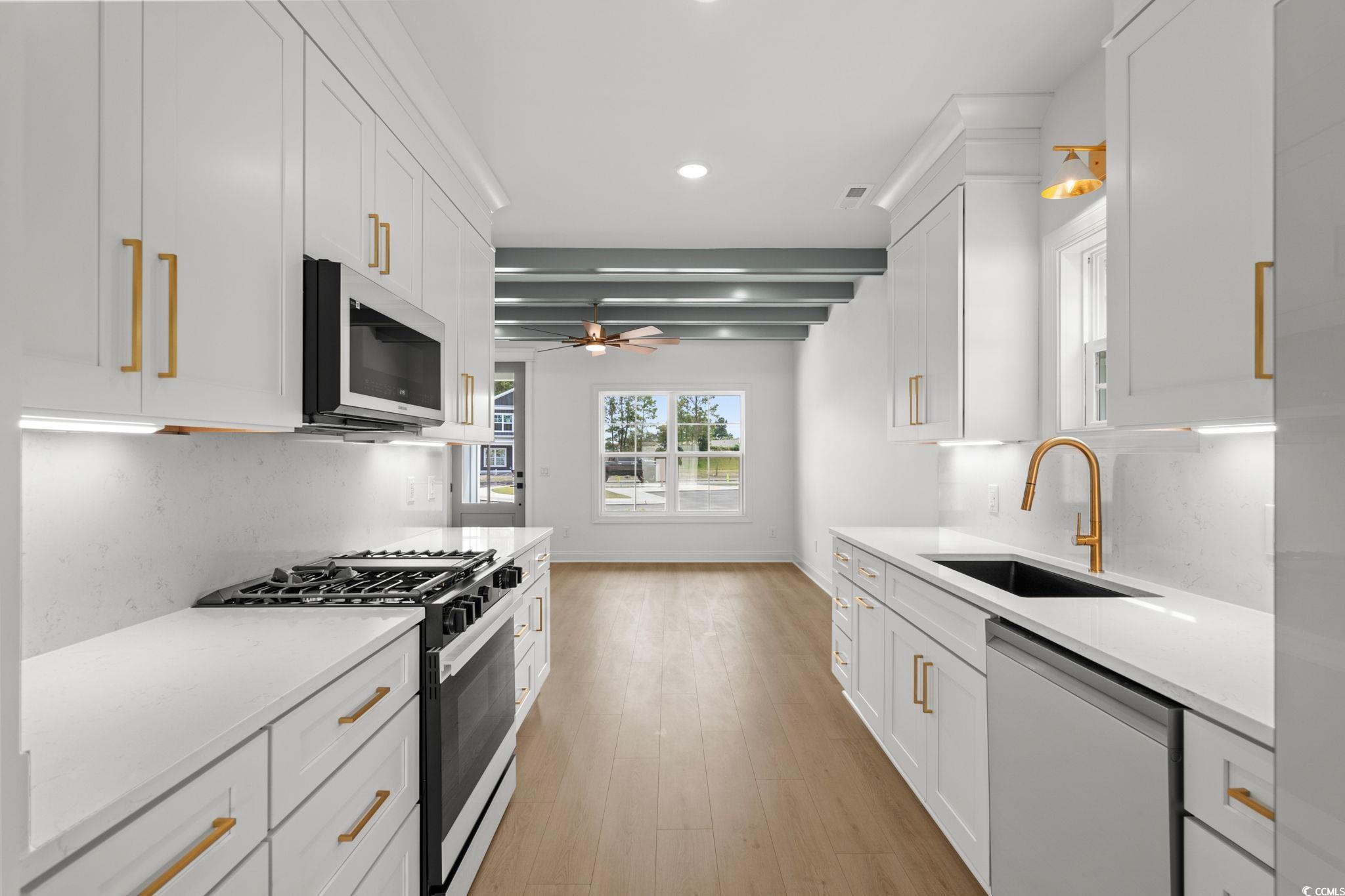 Now available for rent in Arbor Ridge, this brand new stunning 4 bedroom, 3.5 bath home at 160 Arbor Ridge Circle offers upscale living in one of Conways most convenient and fast-growing communities. This thoughtfully designed home includes a first-floor master suite, a flex room, and a secondary laundry room upstairs, providing ample space for work, play, or guests. The open floor plan seamlessly connects the kitchen, living, and dining areas, creating an inviting space perfect for entertaining or relaxing. Interior highlights include quartz countertops, detailed moldings, and shiplap accents, showcasing quality craftsmanship and modern design. This home features a covered patio and one-car attached garage. Lawn care is included through the HOA for a low-maintenance lifestyle. Ideally located just off Myrtle Ridge Drive, Arbor Ridge offers easy access to HWY 544 and HWY 501 and is minutes from Coastal Carolina University, Conway Medical Center, Downtown Conway, and Myrtle Beach.