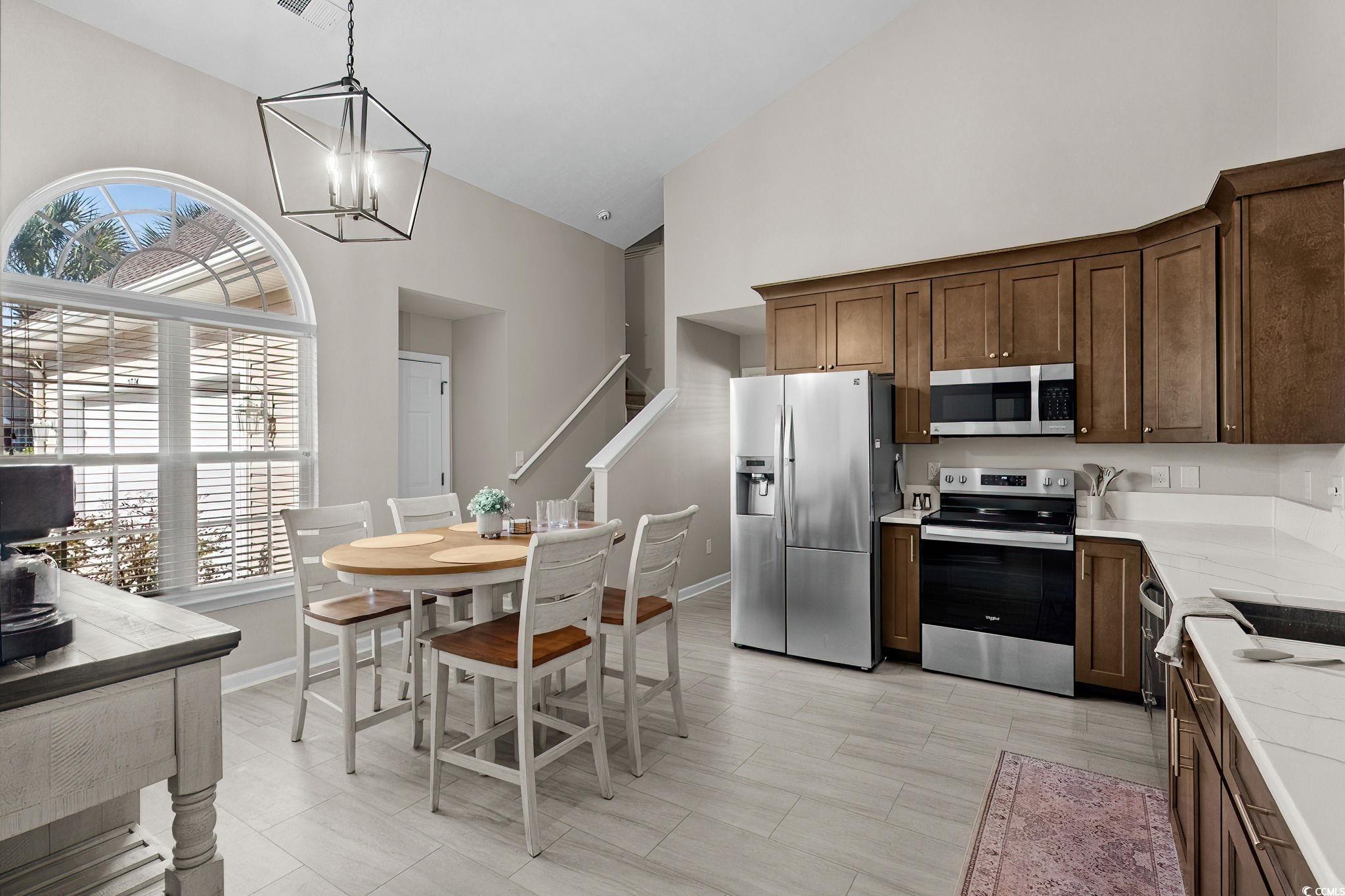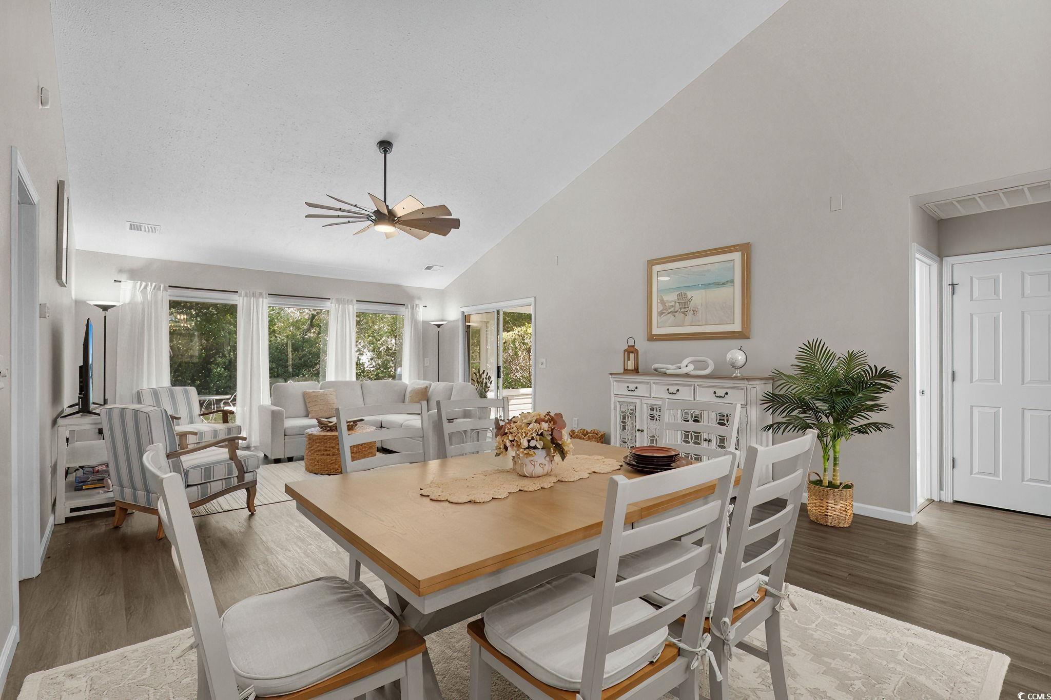 Welcome home to the Sanctuary at Wild Wing Plantation! This updated MOVE-IN READY home is available now as a fully furnished, annual rental and will WOW you with its soaring vaulted ceilings, open floor plan, sun-filled sliding glass doors, and designer-style touches. You will immediately feel right at home with its tasteful and beautiful furniture, relaxing decor, wide assortment of kitchenware, comfortable bedding and linens, and so much more! This spacious 3 bedroom, 2 bath home provides privacy for all with its split bedroom floor plan yet offers great gathering and entertainment spaces in the main living area. The oversized eat-in kitchen features new LVP flooring, quartz countertops, SS appliances including a brand new range and dishwasher, breakfast bar, coffee station, and oversized pantry. Off the kitchen you will enjoy the convenience of a separate laundry room with an extra large washer and dryer and tons of storage. The primary bedroom boasts a king size Tempur-pedic adjustable mattress and a relaxing en-suite with double vanity, soaking tub, walk-in shower and two walk-in closets. The two other bedrooms on the main floor include full-sized beds, spacious closets, ceiling fans, and brand new carpet. Upstairs youll find the large bonus room which provides so many options including a place to relax and ""watch the game"", read in a quiet serene space or utilize the functional workspace. Enjoy your time on the relaxing screened-in porch or step outside to the large patio, including furniture and gas grill, that overlooks the grassy yard with mature trees for added privacy. There is extra storage and landscaping equipment provided for your use in the side-load 2-car garage, plus ample parking spaces for you and your guests in the wide driveway. Living in The Sanctuary at Wild Wing Plantation gives you access to resort-style amenities including a clubhouse, pool, tennis/pickleball courts, scenic ponds and walking paths surrounded by two gorgeous golf courses. This home is located in the highly desired Carolina Forest area and just minutes to dining, shopping, entertainment, health care and much more. This convenient and central location is just a short drive from Historic downtown Conway as well as the sandy shores of Myrtle Beach. Rent includes trash services. Pets will be considered. NO smoking in house or garage. Serious inquiries only. Schedule your showing today!