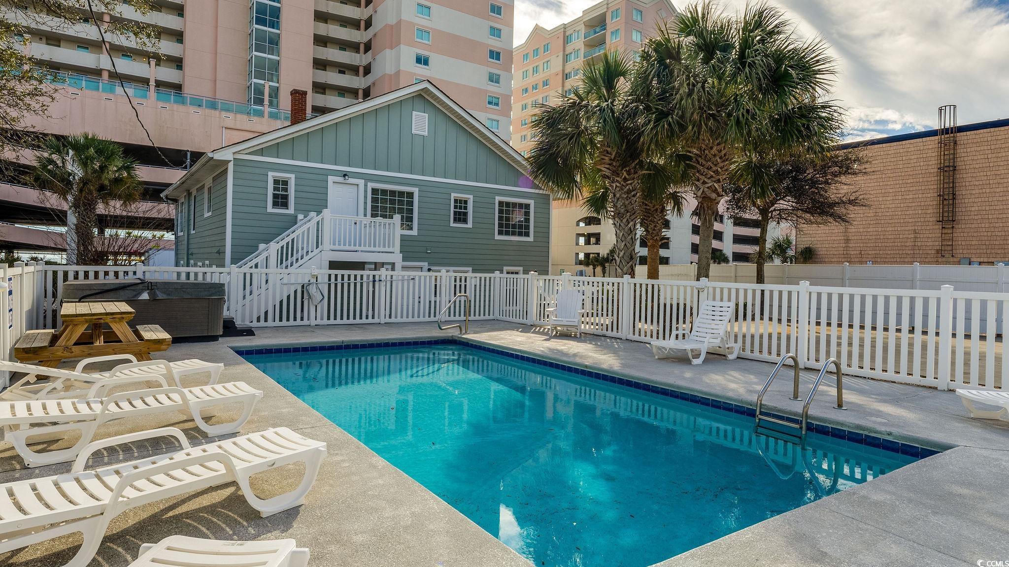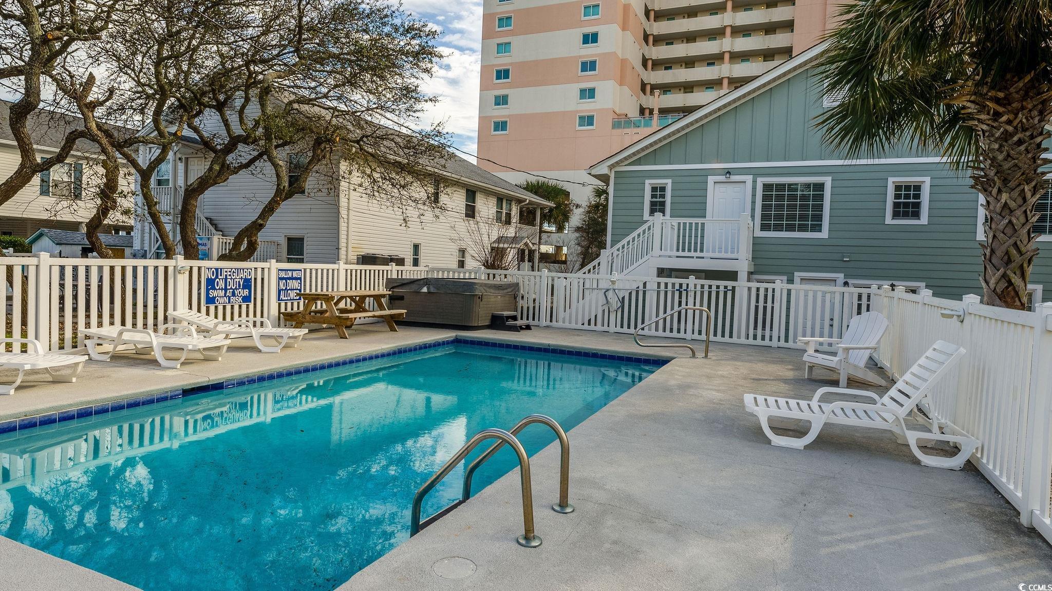 This two-story 7 BR/5 Bath furnished private beach home is located directly across the street from the ocean in the Crescent Beach section of North Myrtle Beach. There are 3 BRs on the first floor and 4 BRs on the second floor. Private salt water pool, hot tub and shuffle board for your leisure! No HOA! Great investment property, primary or vacation home. Convenient to golf (regular and mini-golf), dining, and shopping. Just minutes from Barefoot Landing! Across the street from the beach!