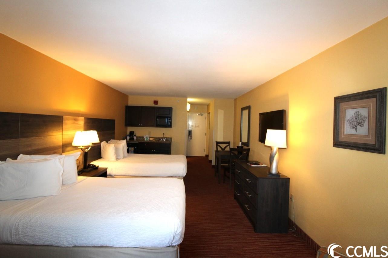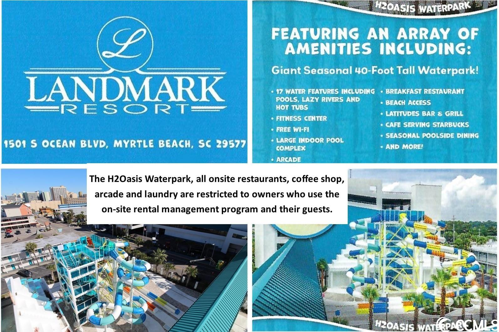 This studio condominium is located in the Landmark Resort, an oceanfront resort with 17 indoor and outdoor pools, including an on-site waterpark. This is an income generating property with an on-site rental management company. The Landmark Resort has a variety of onsite dining options. The Gazebo Restaurant is open for breakfast year-round. Latitudes Grill opens daily for lunch and dinner. During the summer months guests can enjoy the poolside bar, snack shop and grill. The onsite Havana Java Bar proudly servs Starbucks Coffee. Make a splash at Landmark Resort with spectacular amenities including newly renovated indoor and outdoor pools, lazy rivers, whirlpools, kiddie pools & H2Oasis waterpark. On-site Laundry, Exercise Facility, Video Arcade Parking Garage & Mini-Golf course. The Landmark Resort is a Family Friendly oceanfront resort in the middle of Myrtle Beach, close to the airport and all the attractions the Coastal Carolinas has to offer. www.landmarkresort.com