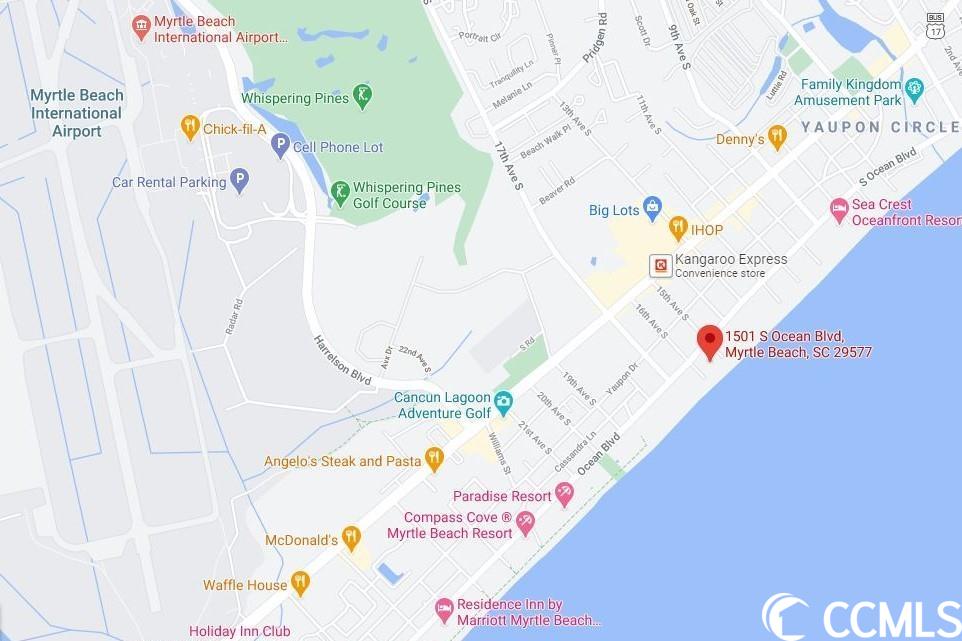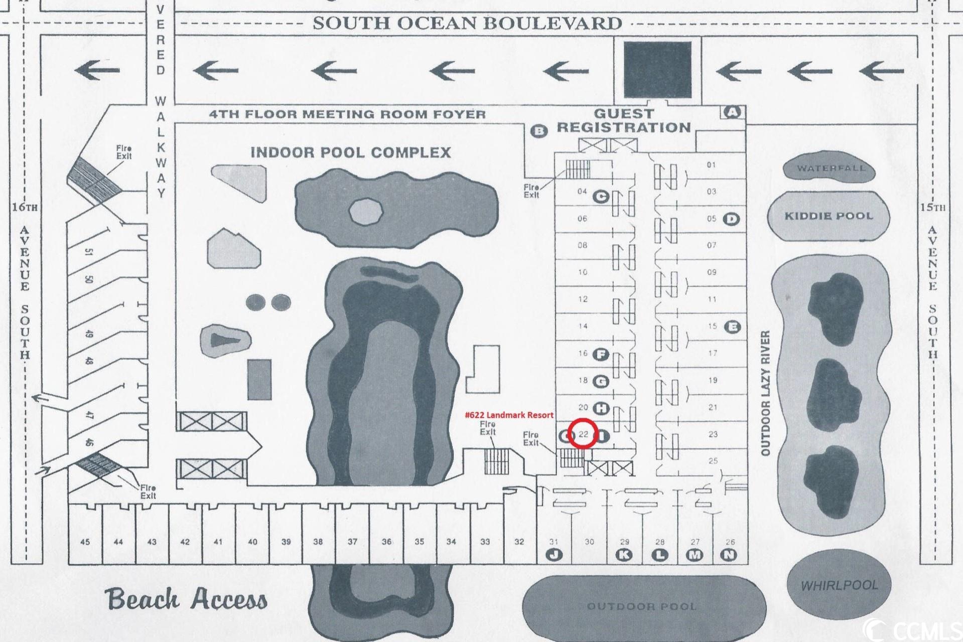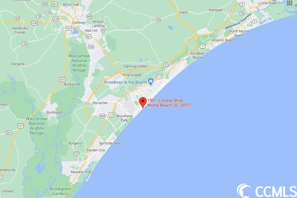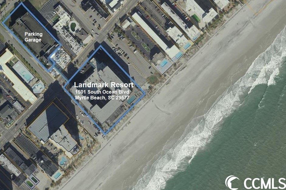 Landmark Resort is an oceanfront building located at 1501 South Ocean Blvd MBSC 29577. GPS 33.673354, -78.900671Courtesy of Re/max Southern Shores Gc - Cell: 843-450-8760