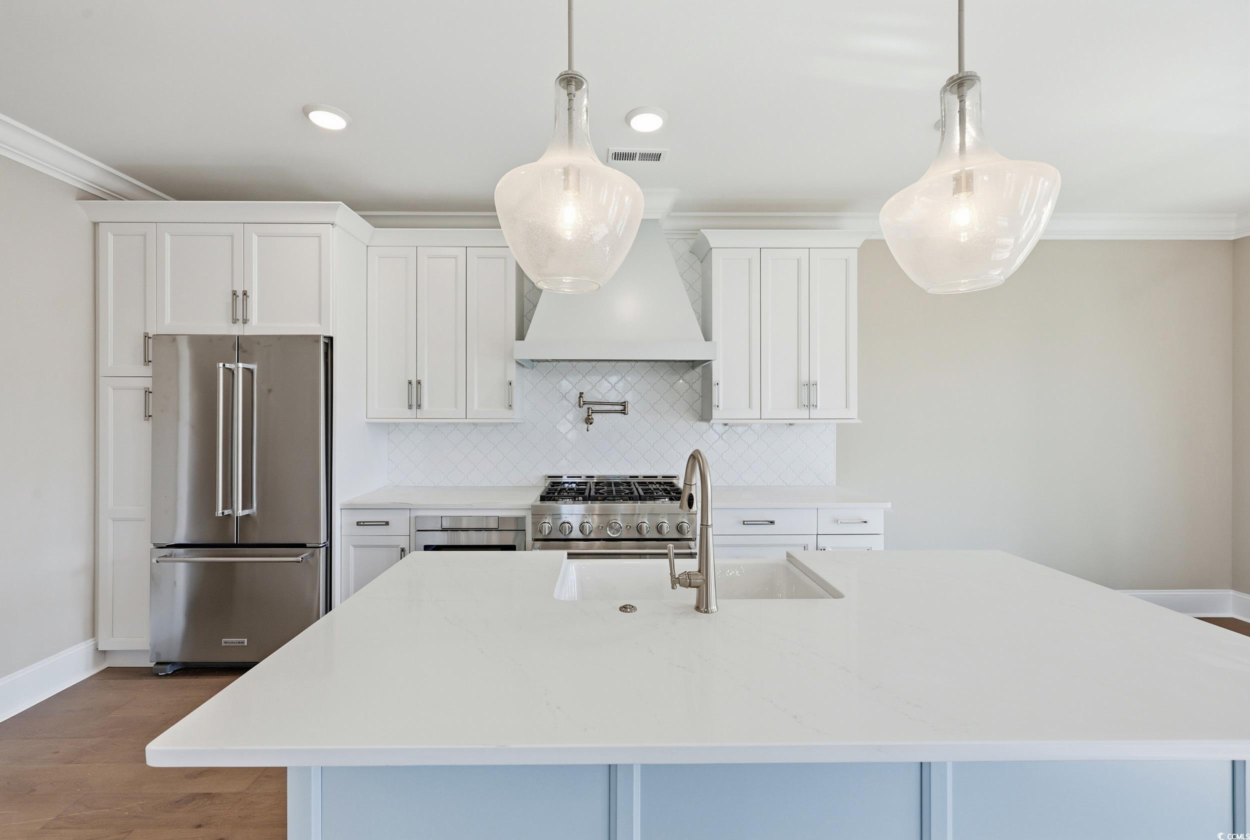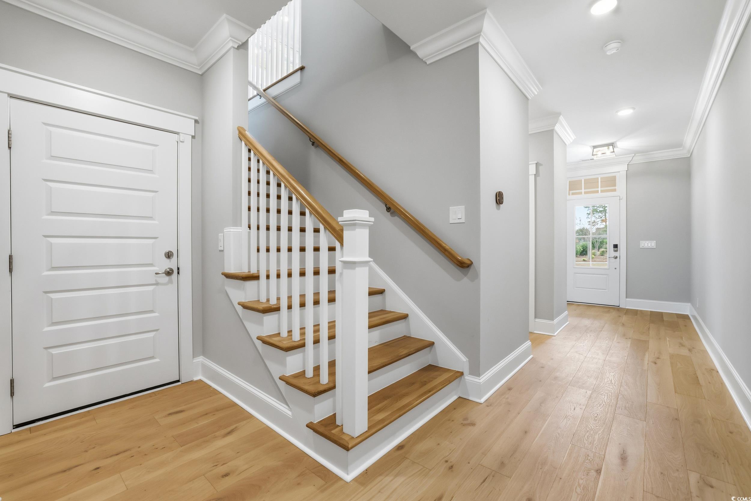 Enjoy luxury living with less maintenance in the Grande Dunes in this Under Construction, well designed 3 bedroom, 2.5 bath townhome. What people love the most on this plan is the show stopping covered wrap-around 2nd story porch. With an open great room, kitchen and dining area, the floor plan creates space for entertaining guests or simply enjoying family. The master suite is conveniently on the main level with a large walk-in closet, master bath accented by double sink vanities and a decorative tiled shower. This home offers two guest bedrooms that are nicely separated from the main living area on the 1st level floor, along with a full bath, laundry room and 1 car attached garage. Come live the Grande Dunes lifestyle at Living Dunes in our new construction homes with lakefront, water view or private perimeter real estate available. Located on the North end of Myrtle Beach less than 1 mile from the ocean, Living Dunes features low-country style single and multi-family homes constructed by locally renowned, CRG Homes. Our homes are built with elevated materials and practices that surpass regulations allowing you to own a quality home that is energy efficient and eco-friendly. Our kitchens feature designer quality Elmwood cabinets, with soft close doors and drawers, cove crown molding, and a light rail with under cabinet LED lighting. In our list of standard specifications are quartz countertops, tile backsplash, stainless steel appliances, 2 x 6 construction, impact resistant windows, natural gas, Rinnai tankless water heaters, Icynene spray foam insulation and cutting-edge home technology. As Myrtle Beachs first Gigabit community, Living Dunes provides residents with internet connections faster than the average, meaning more time spent doing what you want. Residents have superior on-site amenities with a zero entry free form swimming pool. that offers a tanning shelf, well appointed clubhouse, miles of walking trails, 10 acres of lakes, and green spaces. Thoughtful design and unprecedented amenities, the communitys location offers convenient access to the beach, Grande Dunes Ocean Club, Marina, golf courses, and several major marketplaces with groceries, pharmacies, shopping, dining, fitness, health care, salons, and more. Live Local, Live Smart, Living Dunes. Photos shown are of another similar plan in Living Dunes.