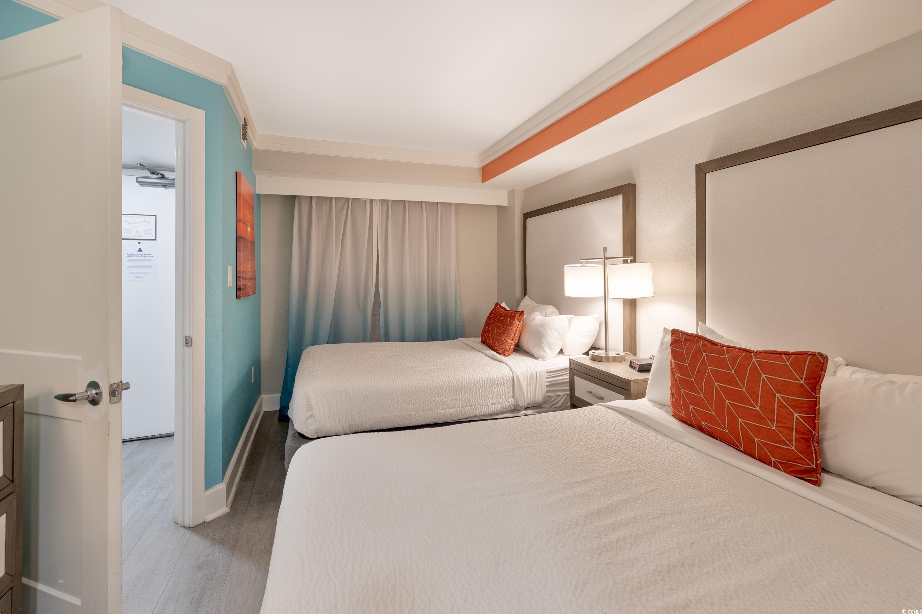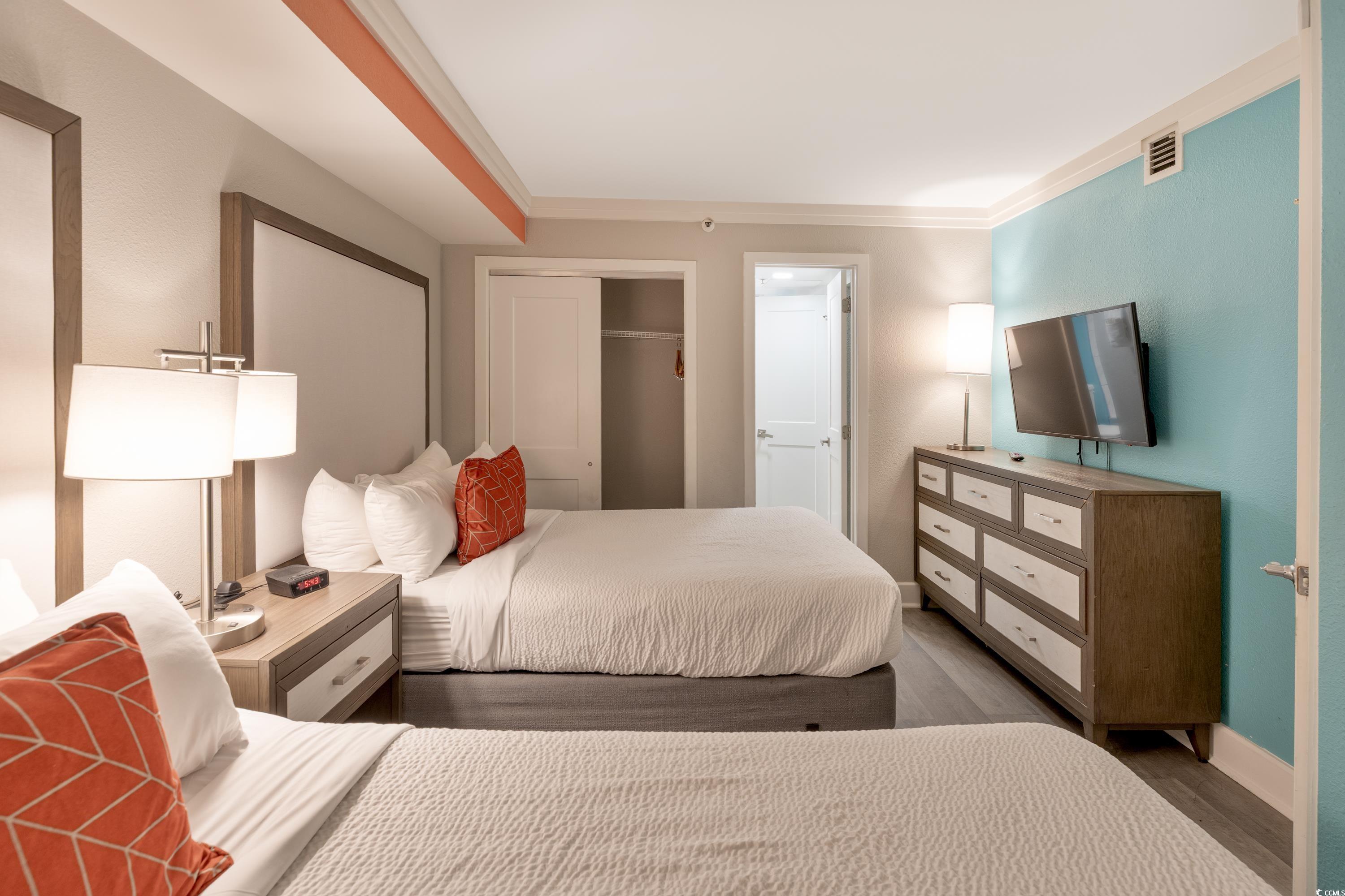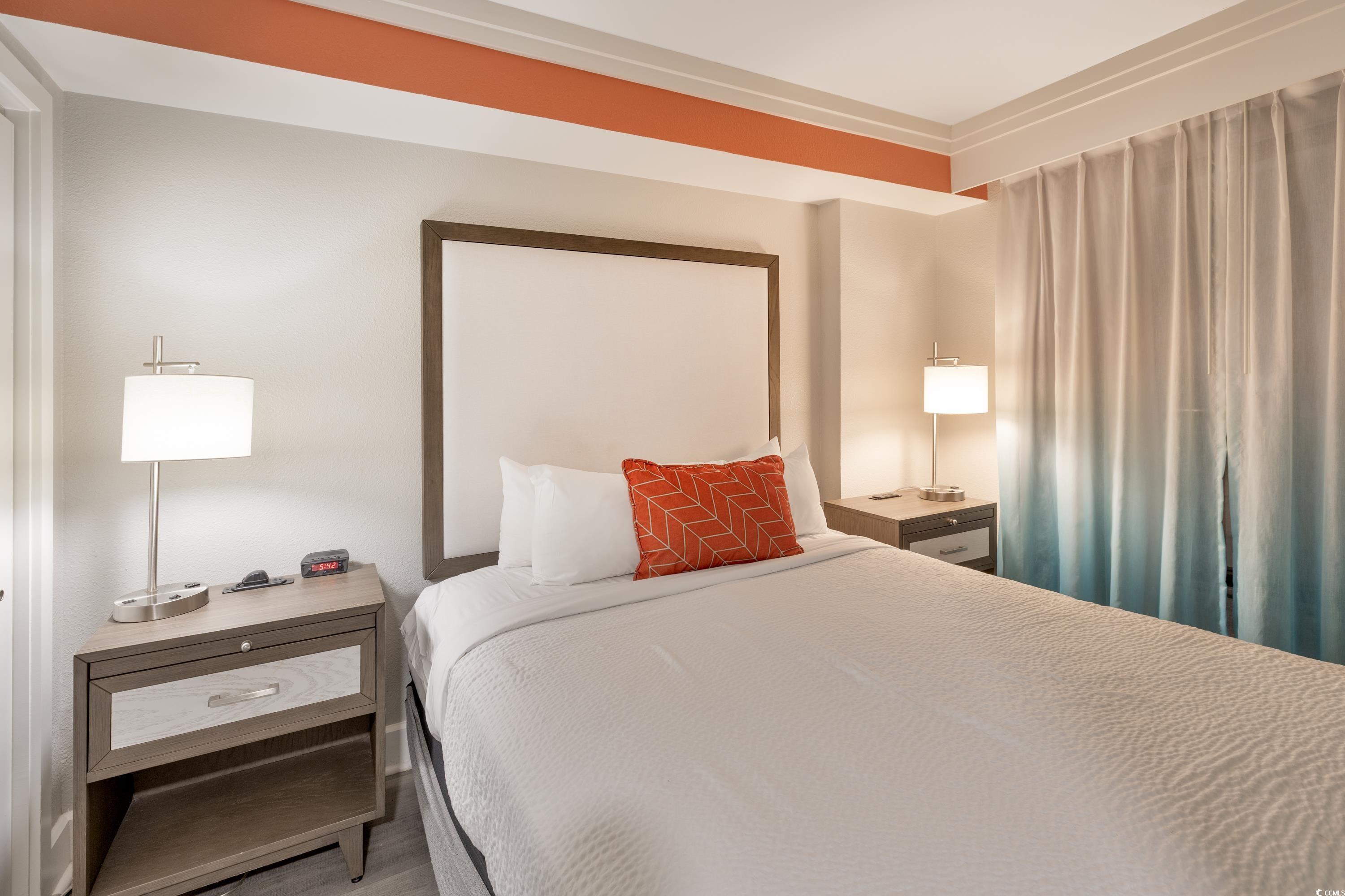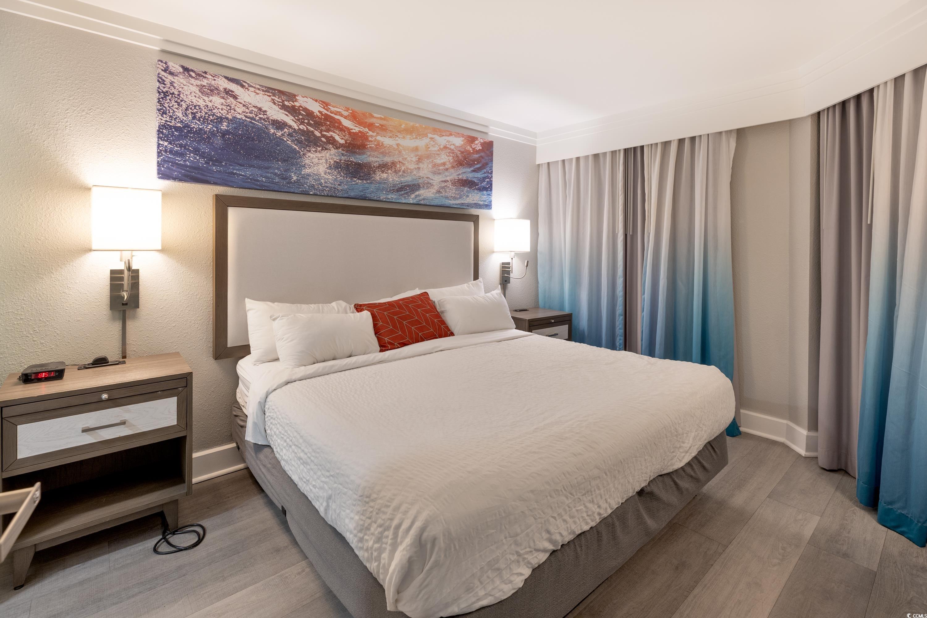 Ocean Front unit!!! Fully Furnished 3 bedroom and 2 bath luxury unit! Completely renovated resort and individual rooms which started in 2020! The resort features sun decks, indoor and outdoor pool, hot tub/spa, water park, splash pad, game room, mini golf, fitness center, onsite restaurants including Starbucks and Tikki Bar! Owner's closet, which ONLY the 3 bedroom units in this building have. Features Include: shiplap accent wall in the living area and an open concept kitchen/dining/living space. The kitchen has beautiful granite countertops, complemented by elegant white cabinetry. This condo has been upgraded with luxury vinyl flooring. The oceanfront master bedroom offers direct access to the oceanfront balcony where stunning views await. Additionally, the master suite features a private ensuite with a step-in tiled shower. Closing cost assistance available with acceptable offer.