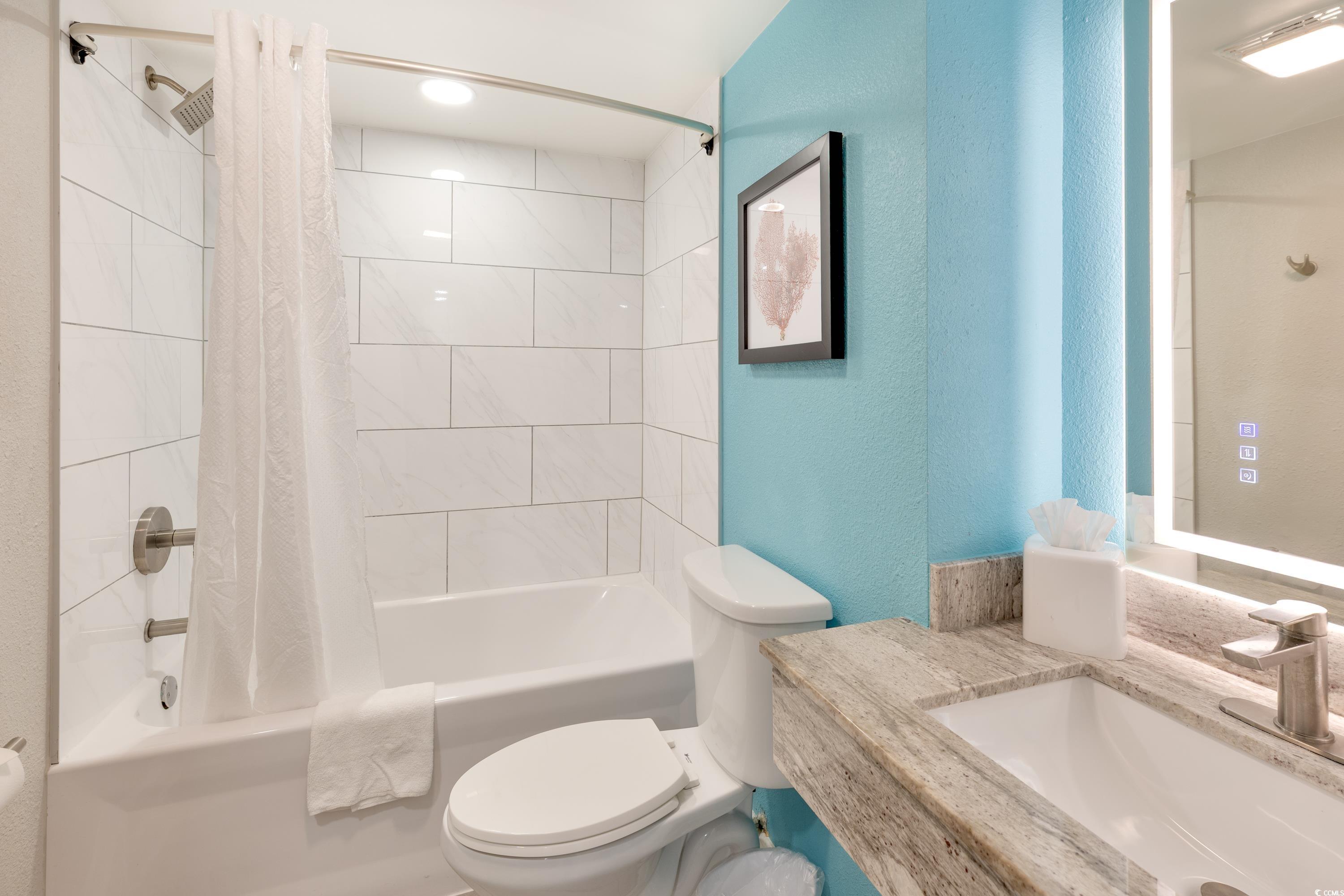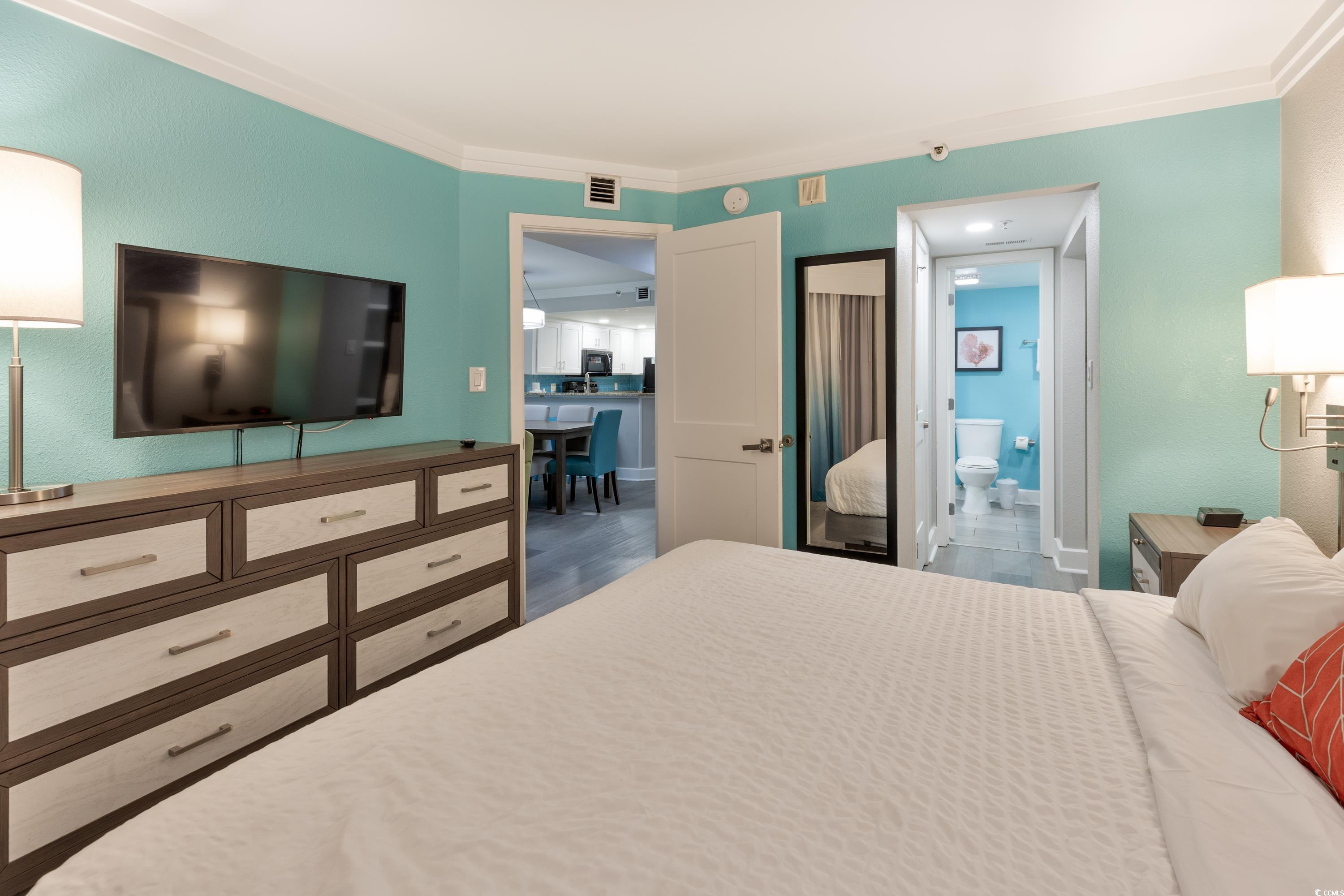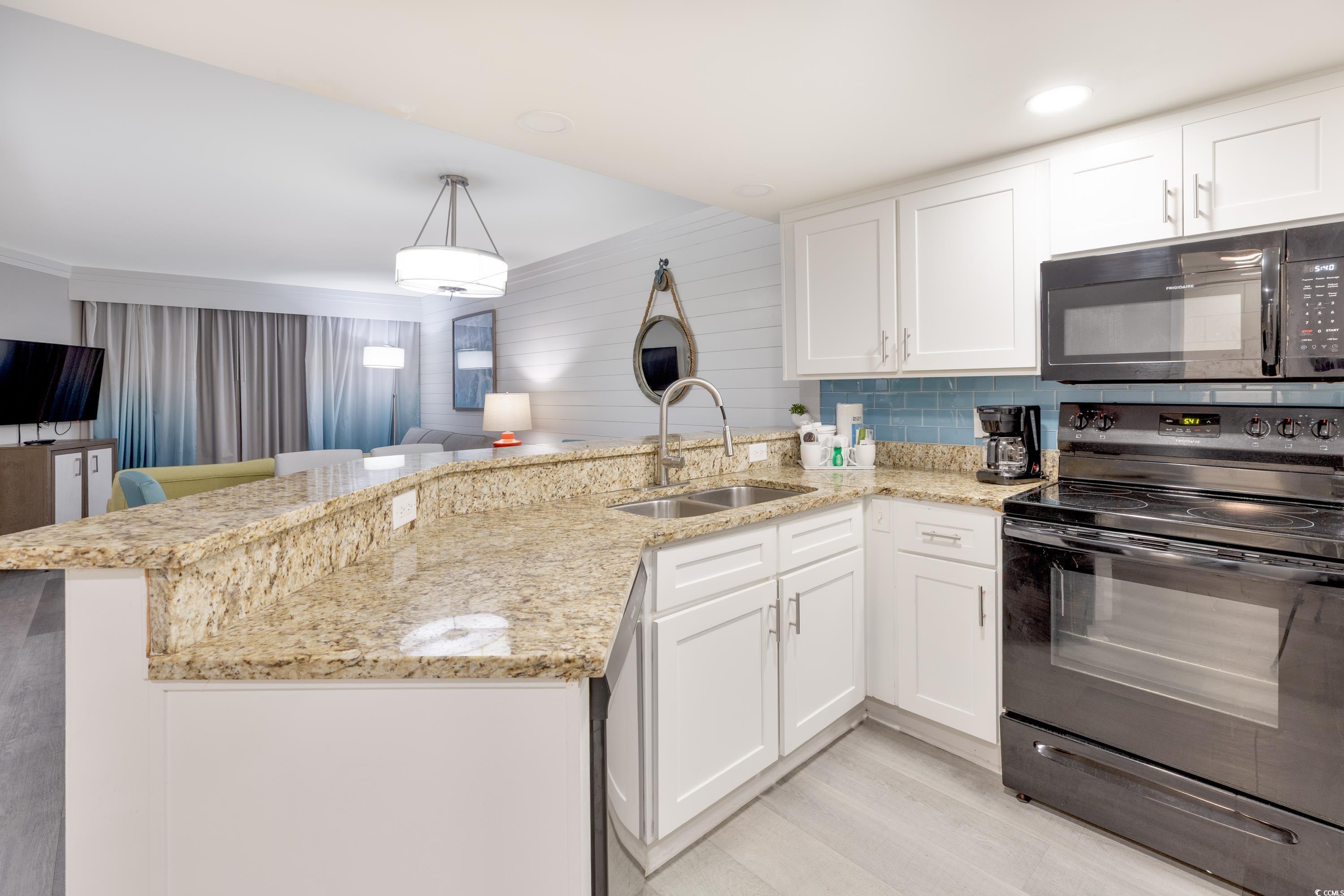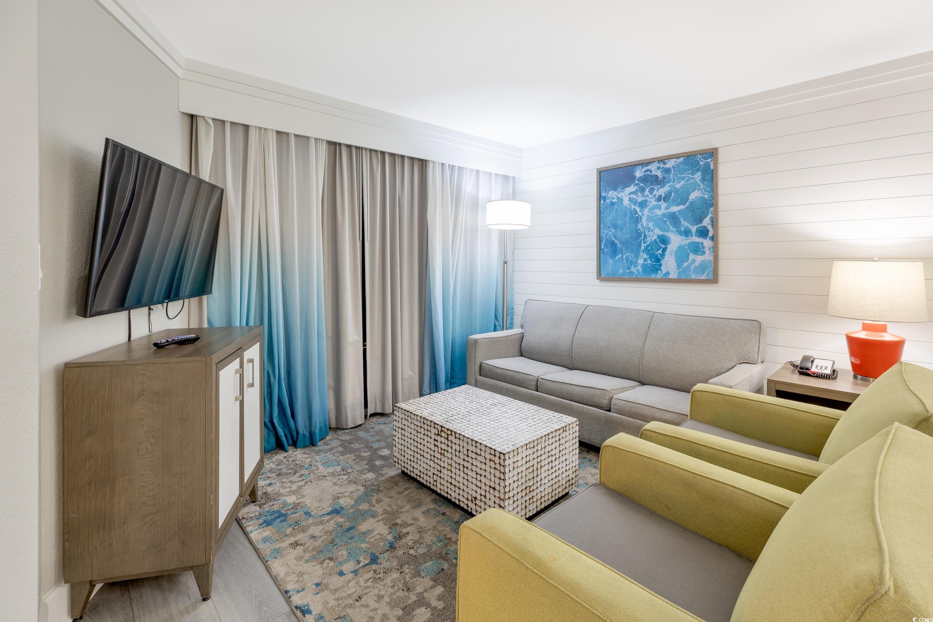 Ocean Front unit!!! Fully Furnished 3 bedroom and 2 bath luxury unit! Completely renovated resort and individual rooms which started in 2020! The resort features sun decks, indoor and outdoor pool, hot tub/spa, water park, splash pad, game room, mini golf, fitness center, onsite restaurants including Starbucks and Tikki Bar! Owner's closet, which ONLY the 3 bedroom units in this building have. Features Include: shiplap accent wall in the living area and an open concept kitchen/dining/living space. The kitchen has beautiful granite countertops, complemented by elegant white cabinetry. This condo has been upgraded with luxury vinyl flooring. The oceanfront master bedroom offers direct access to the oceanfront balcony where stunning views await. Additionally, the master suite features a private ensuite with a step-in tiled shower. Closing cost assistance available with acceptable offer.