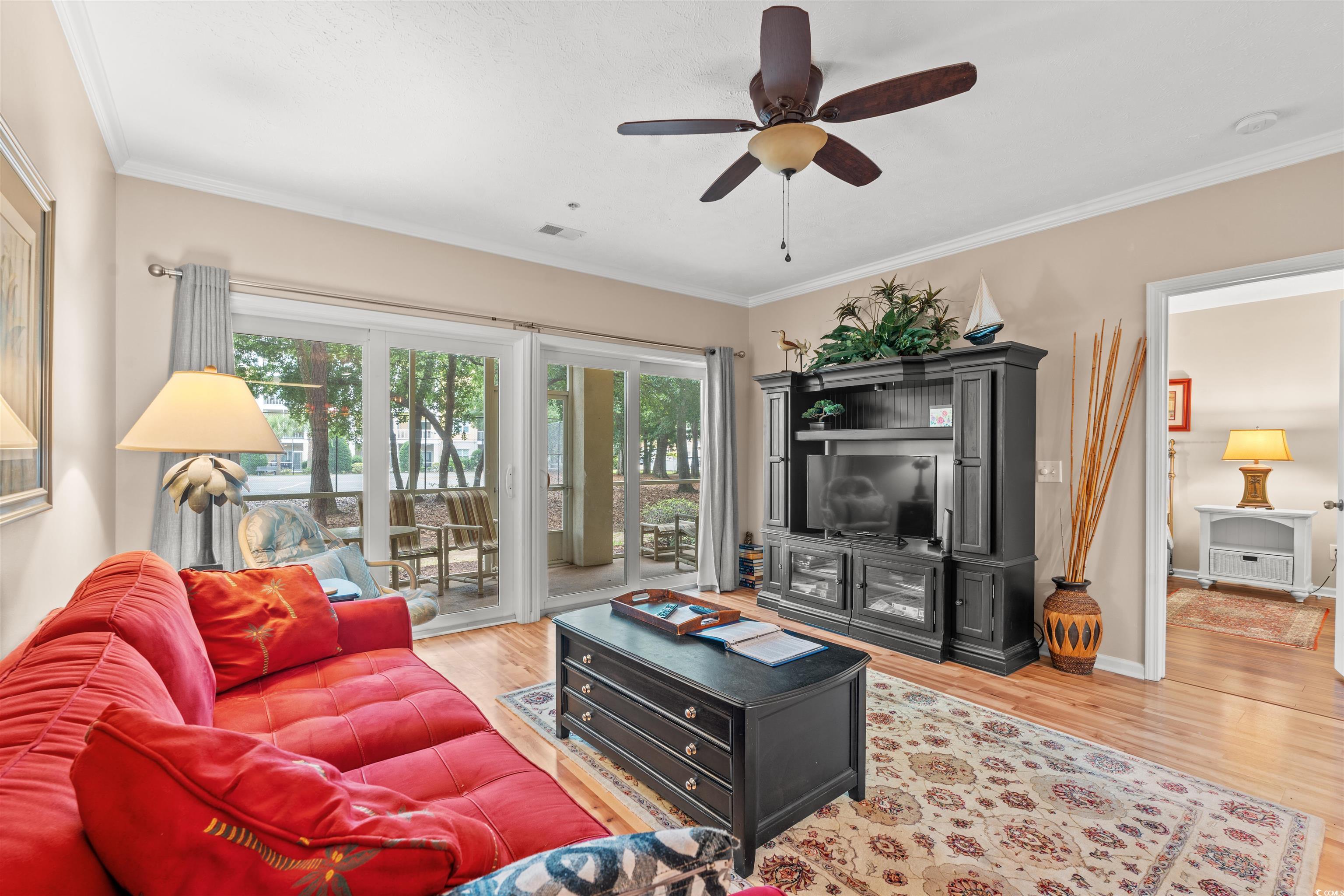 Welcome to this bright and spacious, fully furnished ground-floor unit in the golf cart-friendly Beach Villas of Ocean Keyes. This home boasts gorgeous new flooring throughout and a well-designed split bedroom plan. Custom paint and elegant crown molding adorn the foyer, hallway, kitchen, living room, and dining room. The living and dining areas feature upgraded ceiling fans and lighting, complementing the very nice furnishings and decor. The master bedroom includes a walk-in closet and has direct access to an extra-large screened porch, perfect for relaxing and entertaining. The kitchen is equipped with solid granite countertops and a breakfast bar. Enjoy the convenience of being just steps away from the swimming pool, tennis courts, and grilling area. Located in the gated community of Ocean Keyes in North Myrtle Beach, this property is a block away from the beach and two blocks from Main Street. You can walk to the beach, enjoy Ocean Drive nightlife, or take advantage of all the wonderful amenities Ocean Keyes has to offer, including six sparkling outdoor pools, hot tubs, tennis courts, clubhouses, and a Nautilus fitness center. Don't miss your chance to live life to the fullest in this dream home or coastal getaway!