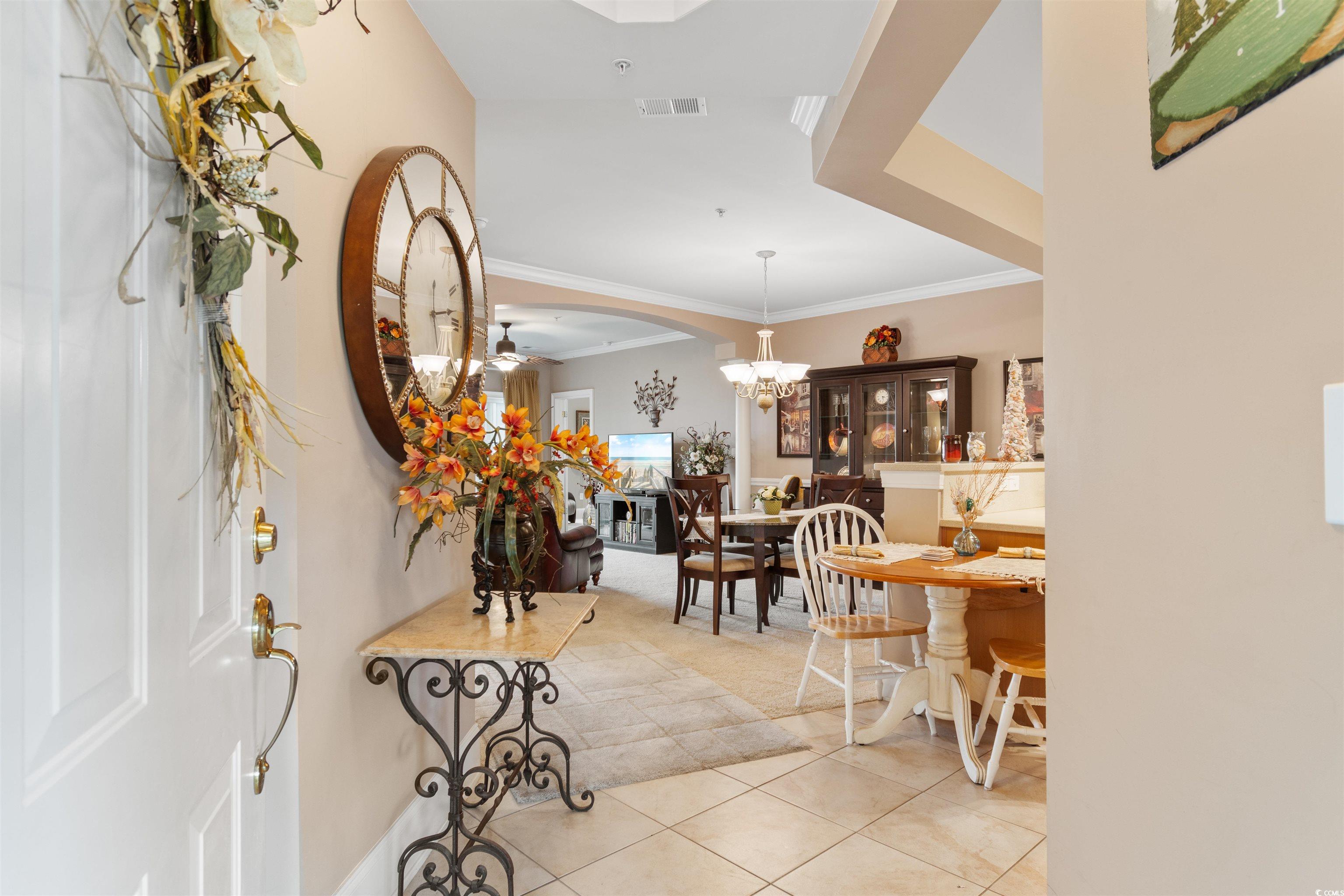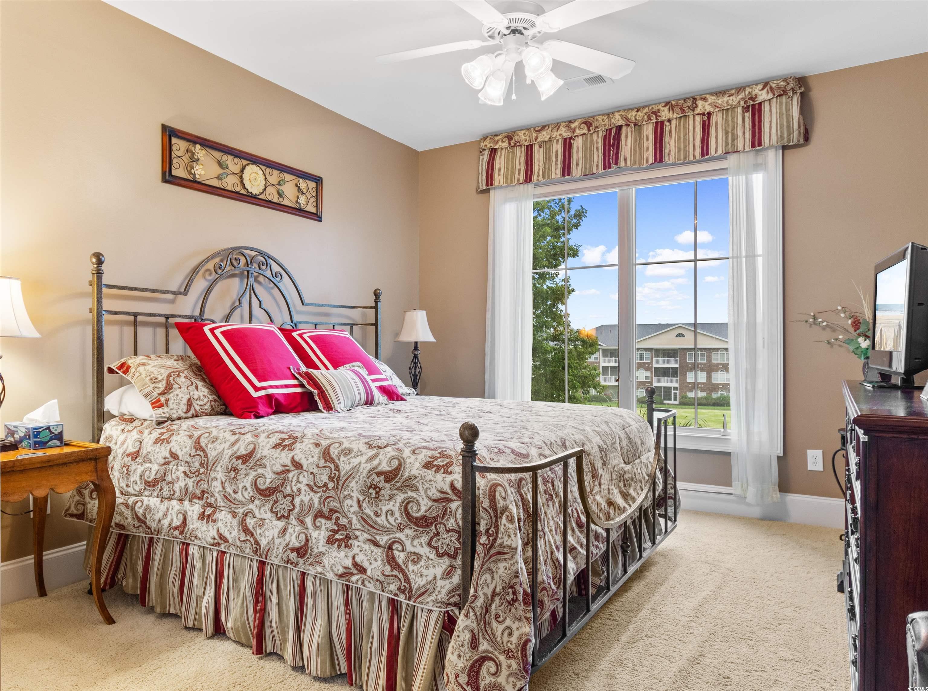 **Luxury Condo in Barefoot Edgewater - Overlooking the 15th Hole of the Norman Course** Experience unparalleled luxury living in the prestigious Barefoot Edgewater community, an exclusive Intracoastal Waterway enclave. This exquisite two-bedroom, two-bath condo offers breathtaking views of the 15th hole on the Norman course, making it a golfer's paradise. Step inside to discover a spacious, fully furnished living area adorned with crown molding and tray ceilings, creating an atmosphere of sophistication. The modern kitchen boasts stainless steel appliances and solid surface countertops, perfect for culinary enthusiasts. The master suite is a sanctuary of comfort, featuring a his-and-her walk-in closet, a luxurious bathroom with a dual vanity, a Jacuzzi-style tub, and a separate shower. Additional conveniences include climate-controlled storage upstairs, extra storage in the garage, and garage parking. Relax on the screened-in balcony while enjoying the serene views. As part of this gated community, you'll have access to a range of amenities, including a private community pool on the Intracoastal Waterway, a clubhouse with an exercise room, and secure punch code entry to both the building and neighborhood. Don't miss your chance to own a slice of paradise in one of the most sought-after locations on the coast! Barefoot is a 2300-acre master-planned community featuring a marina, 4 championship golf courses, sidewalks, lakes, pools, on-site restaurants, shopping and private beach cabana. Come enjoy the Barefoot life! All showings must be accompanied by an licensed/active SC agent.