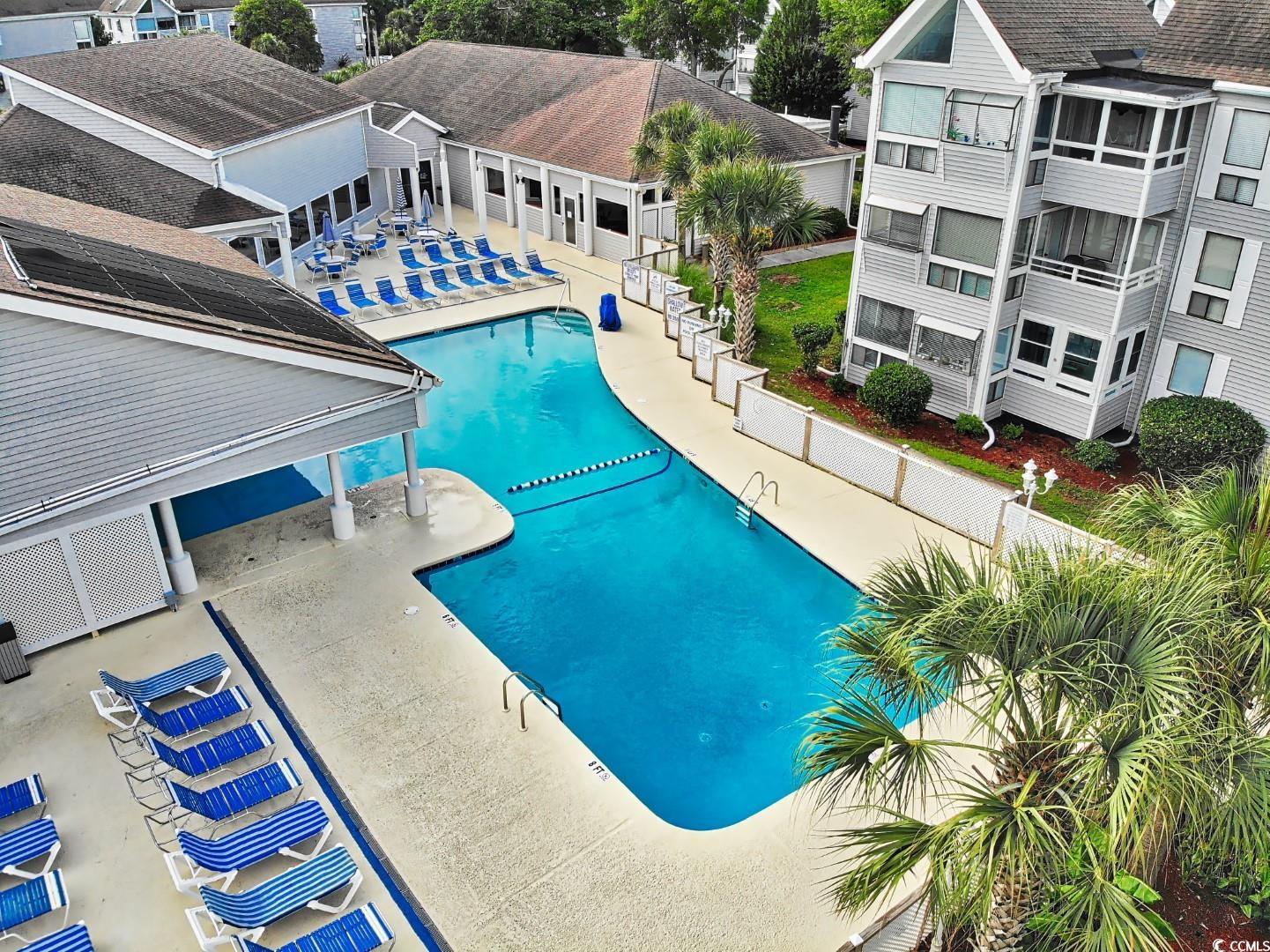 Hands down the nicest condo in this community. Beautifully remodeled 2/2 condo a block from the ocean. Fully furnished with large windows and vaulted ceilings, lots of natural light. Kitchen renovated new cabinets, granite counters, stainless appliances. Both baths renovated with walkin tile showers, new cabinets. Lots of new furniture. This is a turnkey condo with great potential as rental. 3 blocks to the longest wooden pier on the east coast. This community is known for its amenities... 2 pools, sauna, steam room, playground, 6 picnic areas and grills. Tennis/pickleball court, Workout Rm, Onsite Sports Bar & Grill (Harry the Hats) and an arcade with pool tables & video games. 4 minutes to Barefoot Landing, Tanger Outlets, Bass Pro Shop, and Walmart.