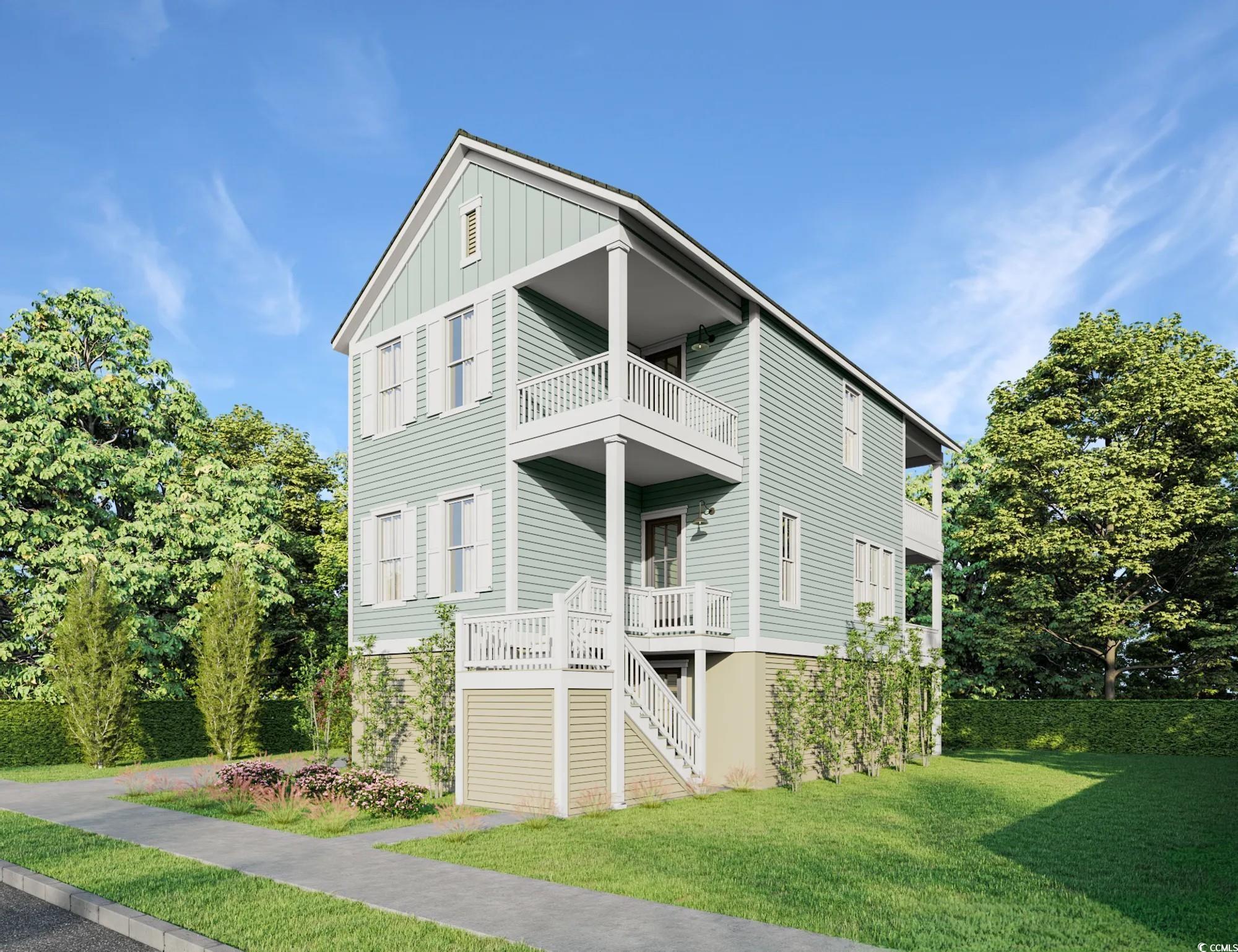 CLOSING BY THE END OF THIS YEAR!! Welcome to Charleston Landing. Only a golfcart ride to the beach with water views on top of water views directly from your rear covered porches. The Kailani home plan is the epitome of luxury and comfort. A modern twist on traditional coastal South Carolina architecture, this elevated single-family home is designed to maximize your lifestyle. A grand entry is where the upscale experience begins. Ten-foot first-floor ceilings greet you at the door and remain your companion as you head down the main hall into the main-floor living space. Just before entering the hallway, you notice a room at the front of the home. Curiosity moves you further into the room, where you are greeted by a large walk-in closet and a fully-appointed en-suite bathroom. Owners' suite? No. Could it be? Absolutely. This downstairs bedroom is strategically situated opposite the entertaining spaces, allowing for an ideal location for a lower-level retreat space, perfect for guests. Continuing down the hall, you eventually reach the main living space. A dedicated dining space (beautifully sun-kissed by the natural light from a wall of windows) greets you and offers a beautiful line of sight to the oversized covered rear porch. Opposite the dining area is the exceptionally functional gourmet kitchen, complete with an 8-foot island that can seat up to 5 of your closest family & friends. The island sits adjacent to the airy living room, which provides access to and another perfect line of sight to the oversized covered porch. Done with entertaining? The third-floor retreat is the perfect escape designed for comfort and functionality. Bedroom 3 is situated at the front of the home, close to the upstairs laundry room and full hall bathroom, while bedroom 2 is positioned closer to the owners' suite. Still far enough away for privacy, the grand owners' suite is tucked away just around the corner from bedroom two. The lofty 9-foot ceilings carry you effortlessly through the space, allowing you to breeze by a large walk-in closet, an accessible covered rear balcony, and an abundance of windows. The owner's bathroom features a dual vanity sink, a freestanding tub, and access to a second walk-in closet.