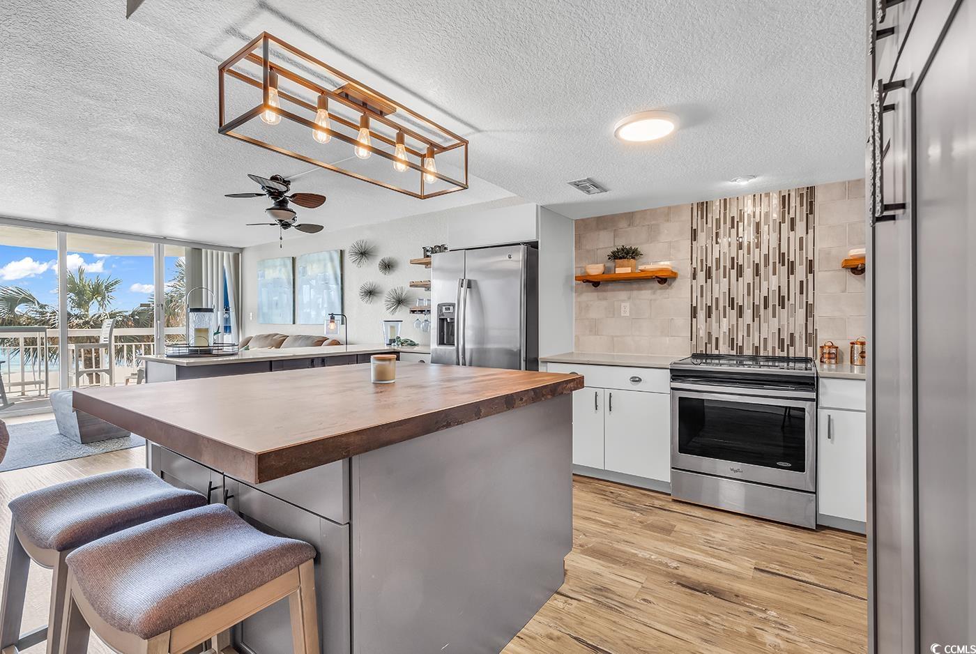 Welcome to your updated oceanfront condo at Waters Edge! LVP floors, beautiful tilework in the bathrooms and kitchen, tasteful light fixtures throughout, and modern decor to accompany. The extra cabinets and seating make this one bedroom feel very spacious! This condo comes furnished so just bring your things and put your feet in the sand. To appreciate all the finishes, this is a must see! *Information deemed reliable buyer to confirm*