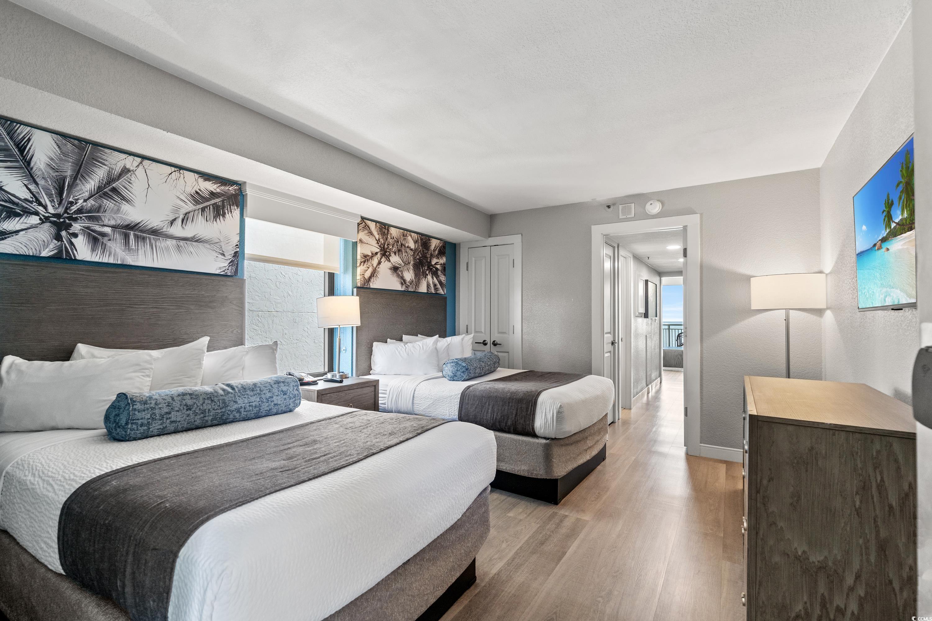 This resort has it all. Indoor/outdoor pools, greenspace, walkway to beach and located close to all the attractions, shopping &restaurants. End Unit with additional windows. Recently refurbished like new in excellent condition. Sleep up to eight with the murphy bed wall unit and sleeper sofa.