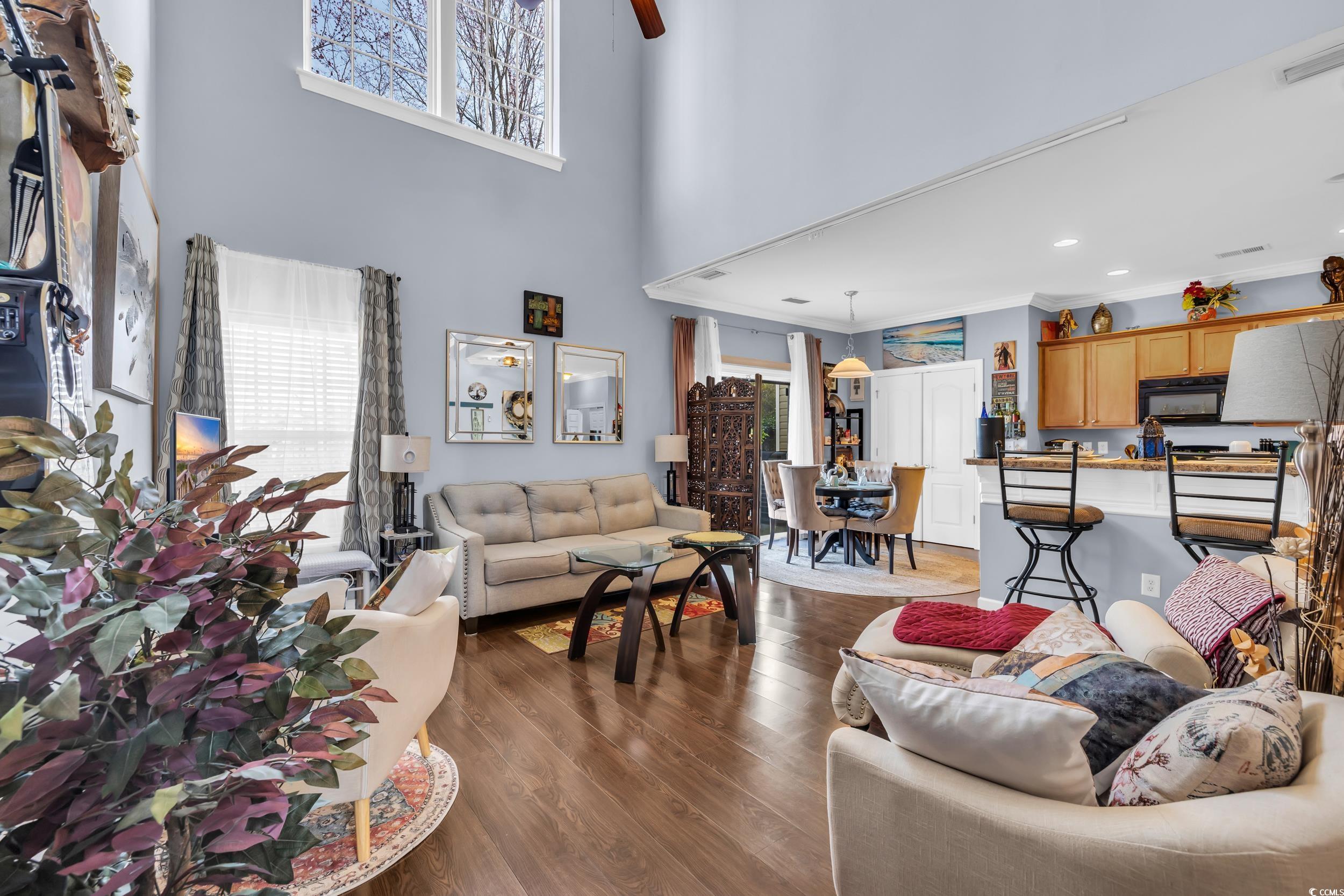 Welcome to Fairways at Wild Wing, a charming townhome community offering both comfort and convenience. This beautifully maintained two-story townhome is ideal as your new home or a potential investment property. Enjoy the added benefit of a private two-car garage and driveway, with a patio in the back that provides privacy and a peaceful retreat within the neighborhood. As you step inside, youll be greeted by a hallway leading into the open living area. One of the homes standout features is the impressive cathedral ceilings in the living room, creating an airy, open atmosphere. This inviting space flows seamlessly into the kitchen and dining areas. The kitchen features a bar-height countertop, perfect for casual meals and entertaining with friends and family. The dining area offers ample room for small gatherings and meals. Conveniently located off the kitchen, youll find a half-bath for guests and a laundry room equipped with a washer and dryer. You can also access the home through the two-car garage, offering added convenience and ease. Upstairs, youll discover a large primary bedroom bathed in natural light, featuring a walk-in closet and a double-sink bathroom. Two additional spacious bedrooms are also located on this floor, along with a second full bathroom, ensuring plenty of room for everyone. Dont miss the chance to be part of the highly sought-after Fairways at Wild Wing community, which offers residents access to a refreshing pool. This neighborhood is ideally situated just minutes from Carolina Forest, where youll find an array of dining, shopping, and entertainment options. Make this your new home today!
