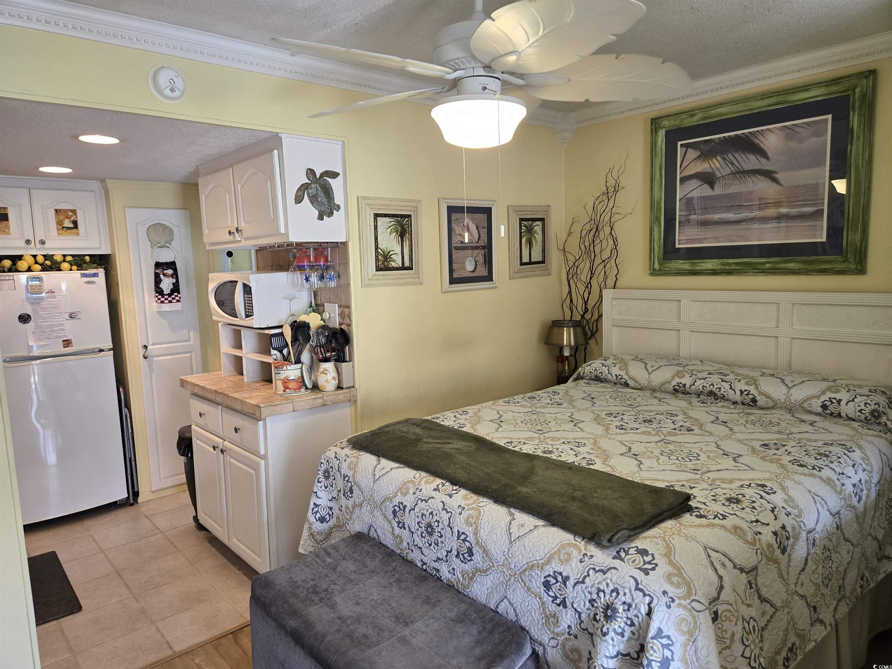 Charming Beachside Retreat - Fully Furnished & Rental-Friendly! Just steps or a short ride from the stunning Atlantic Ocean, this cozy, well-maintained unit is the perfect coastal getaway! Featuring a comfy sitting area with a sleeper sofa, swivel chair, TV, queen bed, dining set, and a fully equipped kitchen with ample storage. Enjoy the convenience of a full bath, new heating/cooling unit, and access to fantastic amenities, including an outdoor pool, golf cart parking, grilling area, and on-site laundry. Short- and long-term rentals allowed! LOW HOA covers W/S/T, cable, community Wi-Fi, pool, and building insurance. Recent upgrades include a roof replacement (late 2023), a resurfaced parking lot, a new water heater, and a new refrigerator. It's close to Barefoot Landing, shopping, dining, golf, and all the Grand Strands top attractions. The current owners have never rented their unit, and its in great shape! Dont miss your chance to own an affordable beachside escapeschedule your showing today!