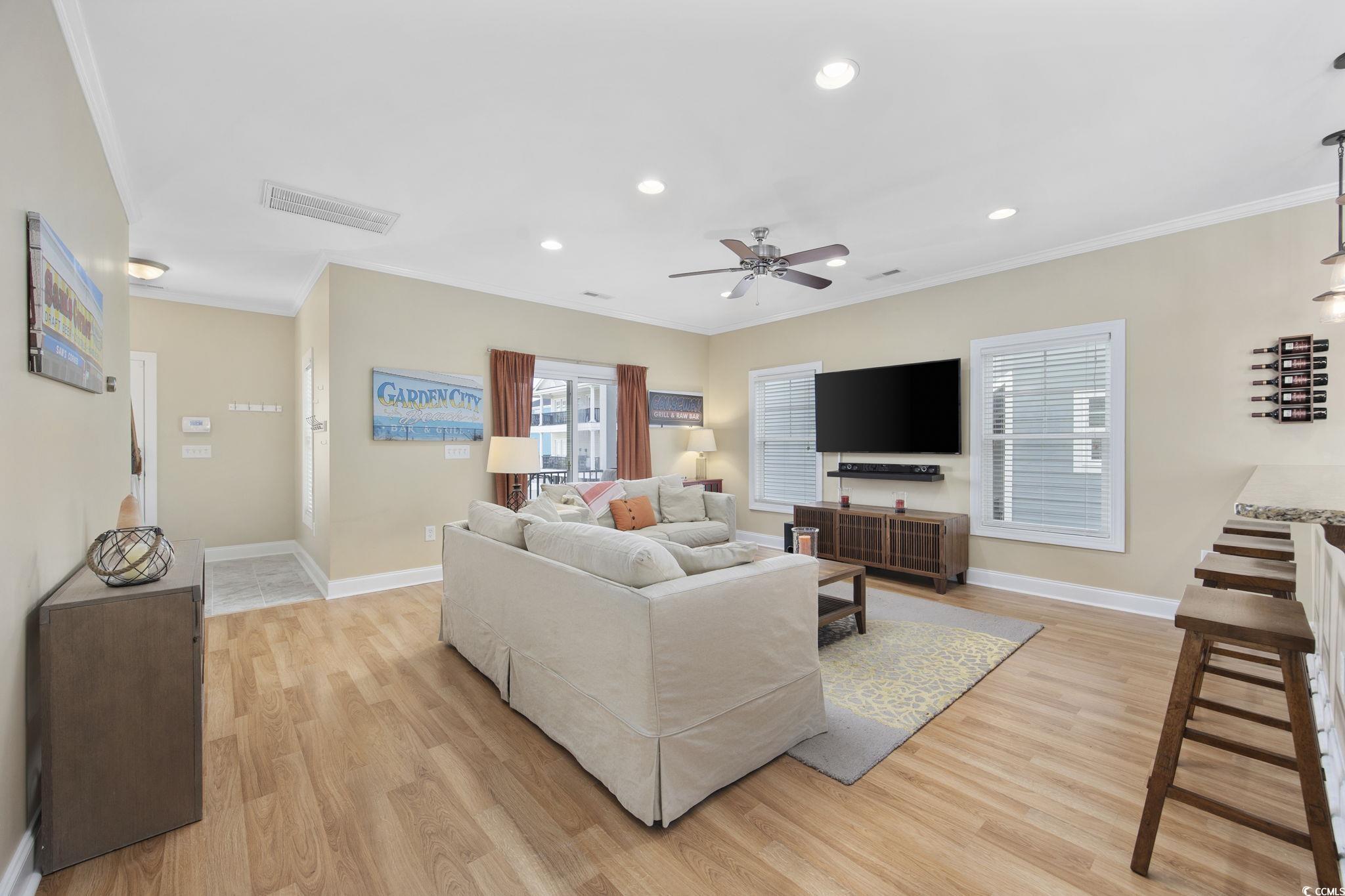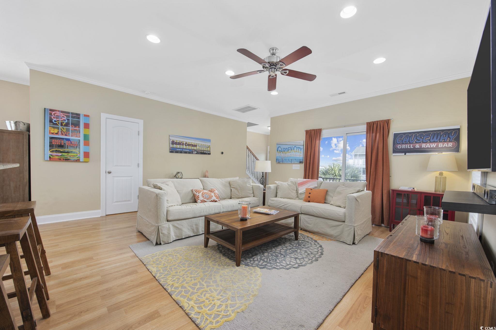 This fabulous fully furnished 3BR/2.5BA raised beach house is conveniently located in a 2nd-row community just steps away from everything Garden City has to offer! Enjoy a short walk to the pier, fishing, restaurants, arcade, lively bars, and of course, the beautiful beach. This private, fenced in neighborhood offers peace and seclusion, keeping vehicle and foot traffic at bay. Built in 2012, this home features quality upgrades, including Hardie Plank concrete siding, metal roof, and spray foam insulation for superior energy efficiency and quiet comfort inside. The open interior boasts granite countertops, stainless steel appliances, and low-maintenance flooring throughout. The large covered exterior storage closet is perfect for stowing beach gear, paddle boards, grills, and more. Enjoy relaxing by the community pool or take advantage of short-term rental opportunities for added investment potential. Don't miss this opportunity to make your dreams come true!