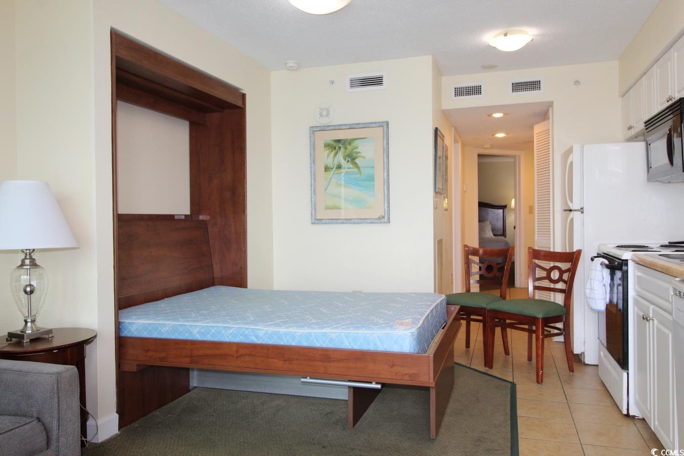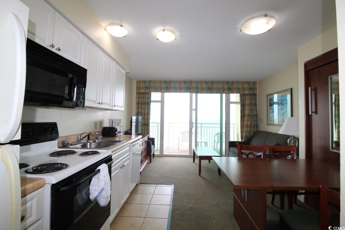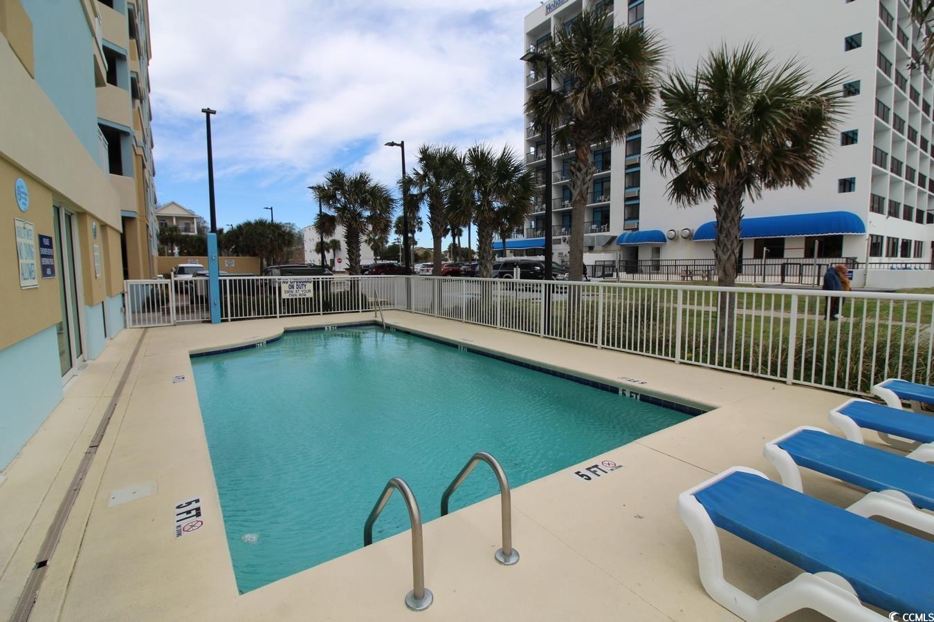 This fully furnished 1BR/1BA direct oceanfront condominium is located at Holiday Sands South. The kitchen features a full-size refrigerator, built-in microwave, dishwasher and stove. This unit also has a washer/dryer. The dining room table converts to a pull-out Murphy bed for additional sleeping accommodations. Holiday Sands has an impressive indoor pool complex which features lazy river, kiddie pool and hot tub. Amenities also include outdoor pools and fitness center. The neighboring building has a restaurant and there is a convenience store across the street. There is a secure parking garage which provides shade and security for owners and guests of the resort. This unit is generating established rental income through the on-site rental management program. Located on Ocean Blvd in the city of Myrtle Beach, Holiday Sands South is close to the airport, Myrtle Beach State Park and all the attractions that make for a great family vacation destination.