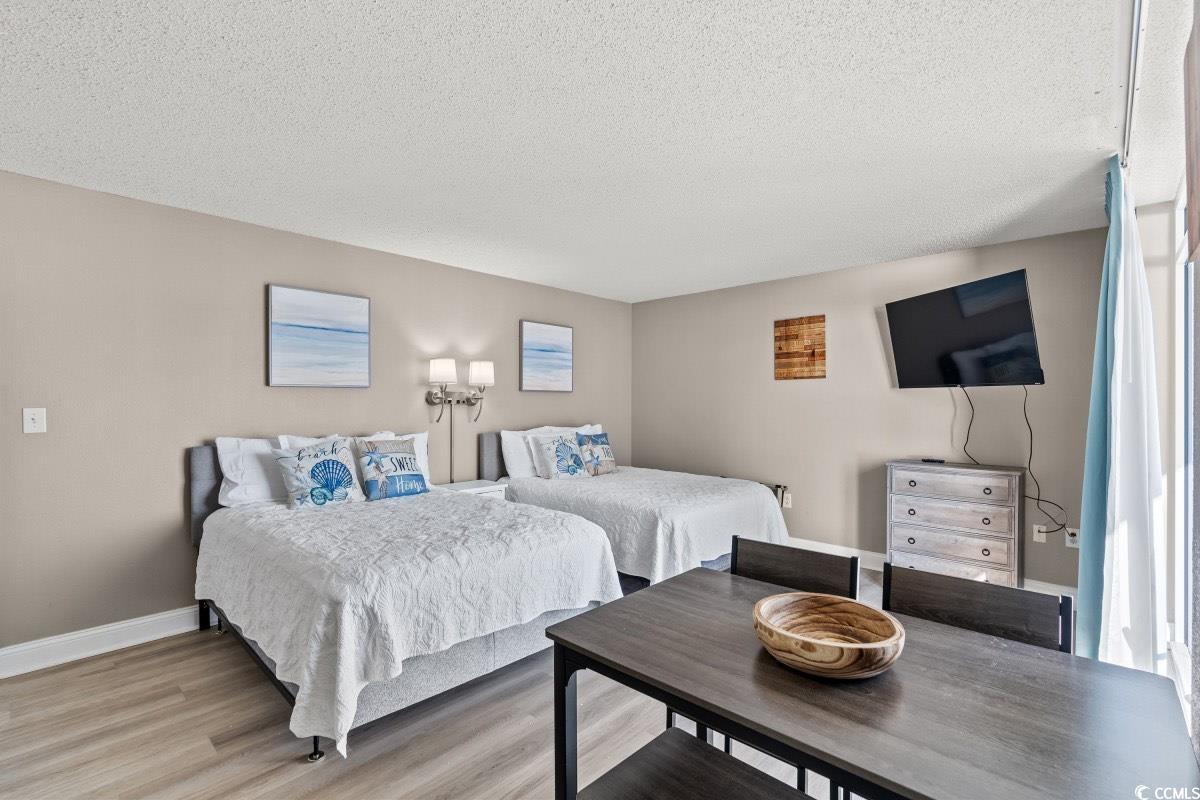 Welcome to the BEACH! This super clean ocean view Baywatch North Tower 4th floor end unit is just what you need! Freshly updated decor, and floors, and a new refrigerator, make this efficiency one that you will be proud to show off to guest, friends, and family. Use as a Short Term Rental if you wish as it is on a program with a local management company and has rental history. The ocean view is just perfect off the balcony which is large enough for a few chairs, sunbathing, or morning sunrise coffee. The end unit gives you a fantastic open view over the balmy beach, tranquil waves, and golden sunrises every day. The Baywatch Resort provides many amenities such as a Tiki Bar, The Sand Trap Grille, ice cream shop, indoor and outdoor swimming, a lazy river and hot tubs too! Baywatch also has an exercise facility so you nor your guests ever have to miss the gym. This location is so close to wonderful areas like Barefoot Landing, Main Street North Myrtle Beach, amazing shopping, restaurants and entertainment venues as well. This is where all the fun is. You and your guests will not run out of things to do! Paradise is waiting for you! Come see it today.