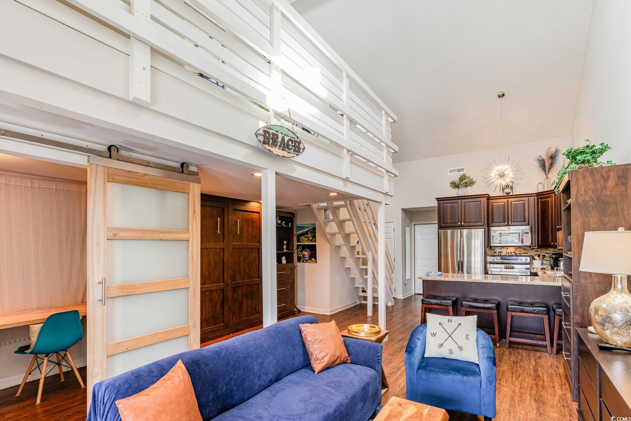 Welcome to 1860 Auburn Lane! Just 2 miles from the Atlantic Ocean, this stunning efficiency condo with a loft offers a sleek & modern living space. Fully furnished, in unit Washer & Dryer & HVAC is only 2 years old! The open-concept floor plan combines the kitchen, living, and sleeping areas into a unified space, creating a cozy and efficient environment. The kitchen is well-appointed with stainless steel appliances, ample counter space and plenty of storage. The standout feature of this condo is the loft area, which adds an elevated & flexible space. Perfect for a bedroom, home office, or additional storage! Accessed by the updated staircase, the loft opens up the main living area, providing an airy feel while maintaining a sense of separation. Large skylight windows allow natural light to flood the space. If you're looking for a new primary residence, second home or investment property, this is the one for you!! Schedule your showing today!!