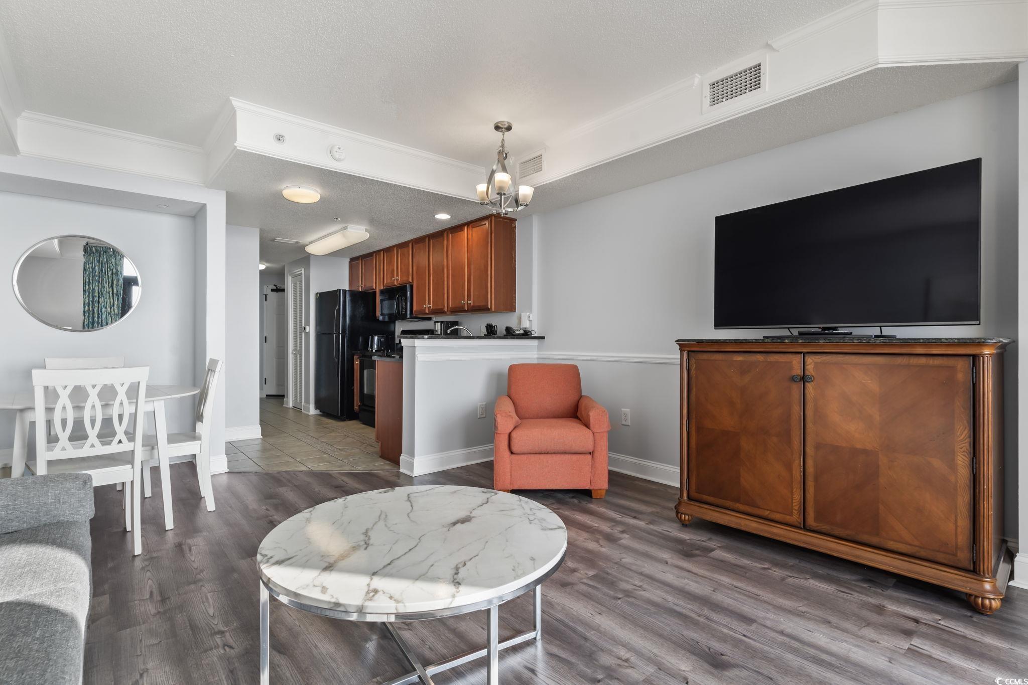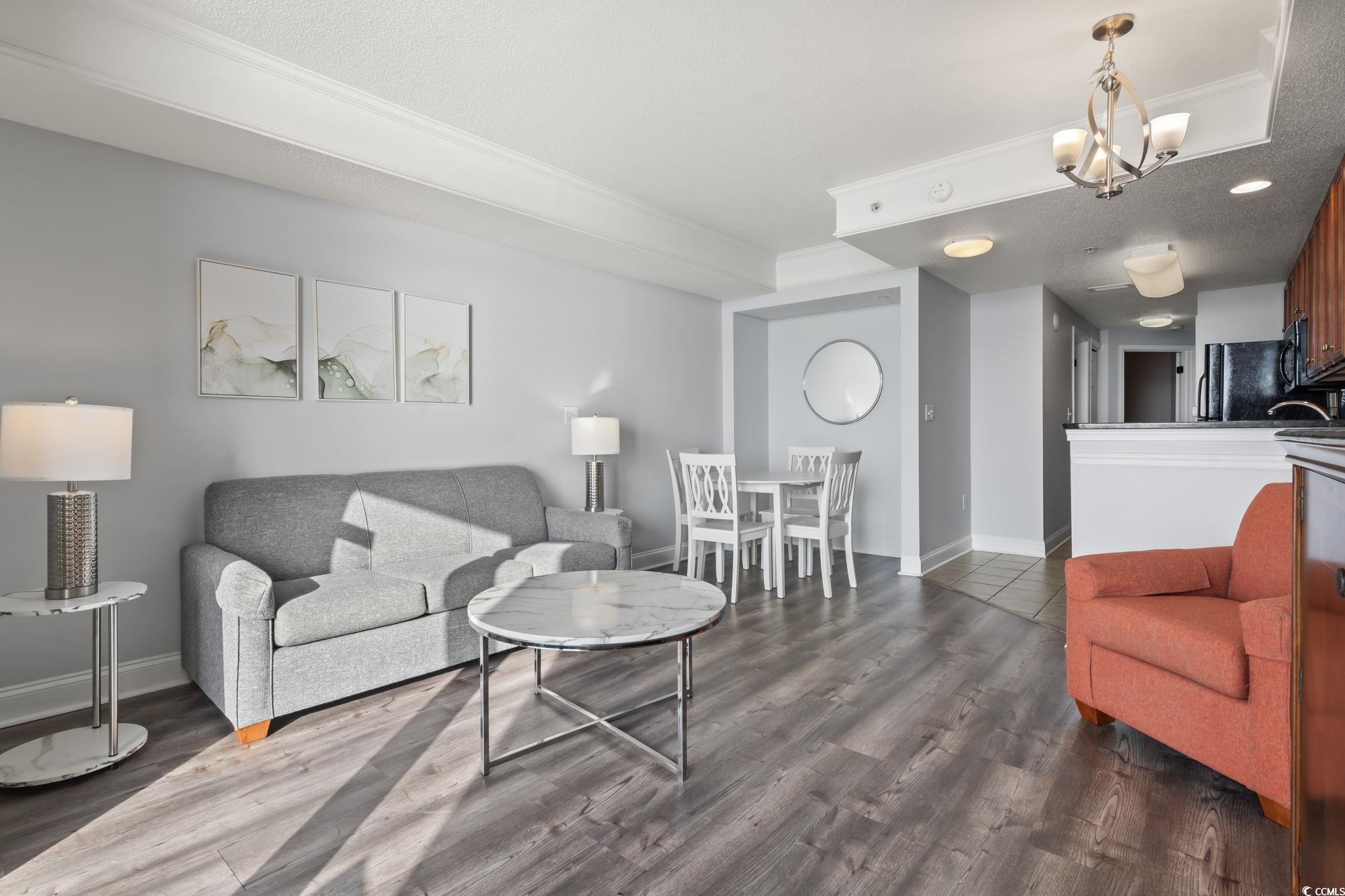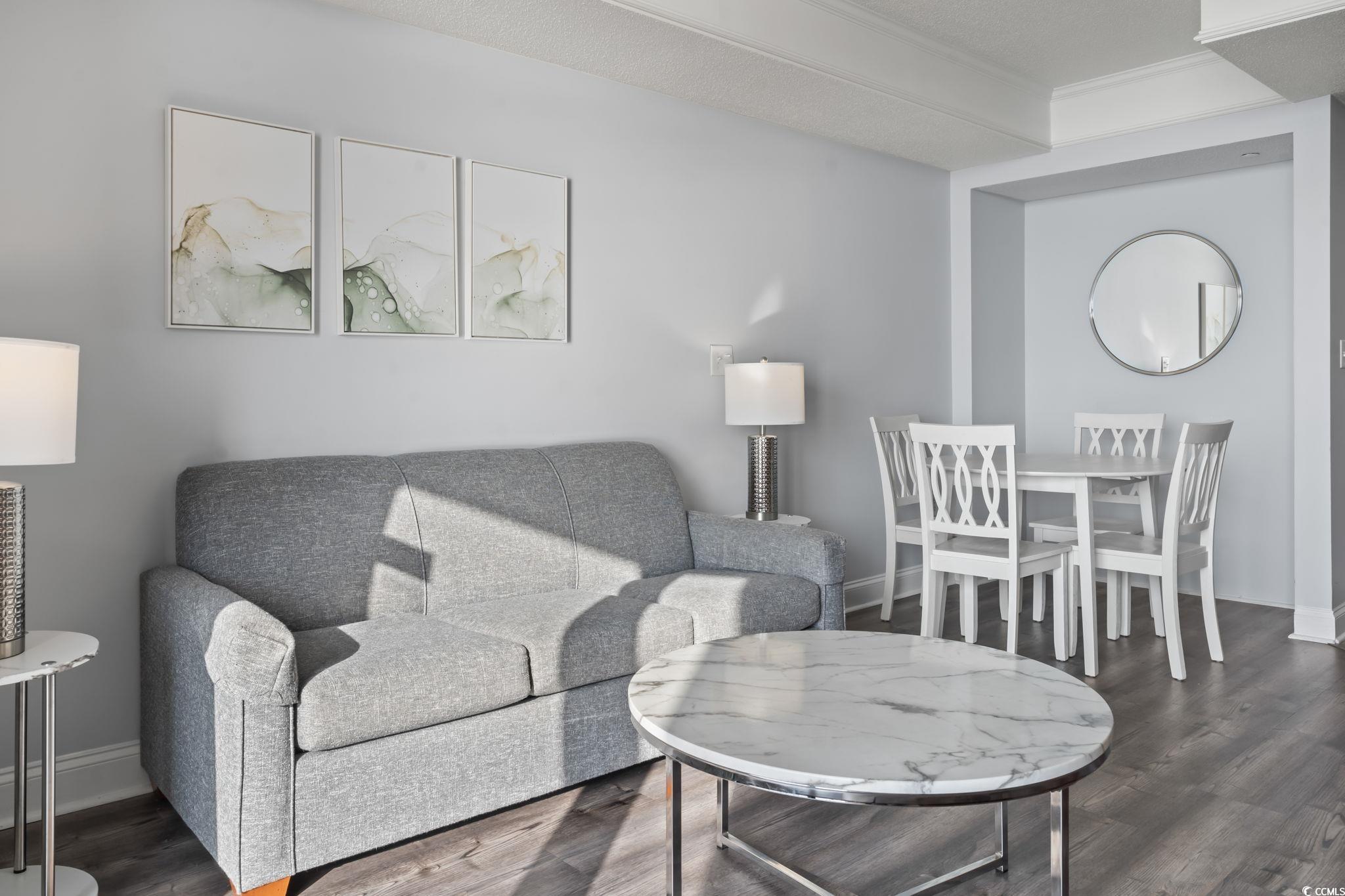 Welcome to luxury coastal living at the prestigious Anderson Ocean Club and Spa! This beautifully furnished one bedroom, one bath condo offers breathtaking direct oceanfront views and all the upscale amenities of a premier resort. This condo features a private balcony, where you can enjoy expansive ocean views and stunning sunrises! This unit offers a full size kitchen, washer and dryer, a new dining set, new coffee table, side tables, lamps and new sleeper sofa and mattress and new vinyl plank flooring. The spacious bedroom features a king size bed and plenty of room for all your beach necessities and storage. The amenities at Anderson Ocean Club and Spa are incredible! Enjoy a full service spa and salon, tiki bar, coffee shop, fitness center, lazy river, indoor and outdoor pools, hot tub, on-site mini golf and direct beach access! Conveniently situated near the Myrtle Beach Convention Center, Broadway at the Beach and walking distance to the Boardwalk and Skywheel, this condo is perfect for your vacation home or investment property. The combination of a well-appointed condo and extensive amenities makes Anderson Ocean Club and Spa a premier choice for those seeking a luxurious beachfront lifestyle in Myrtle Beach.