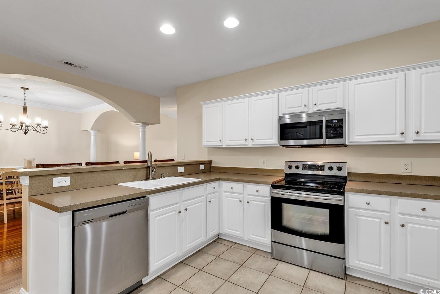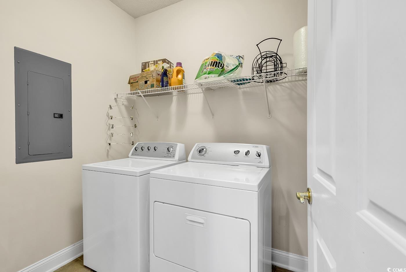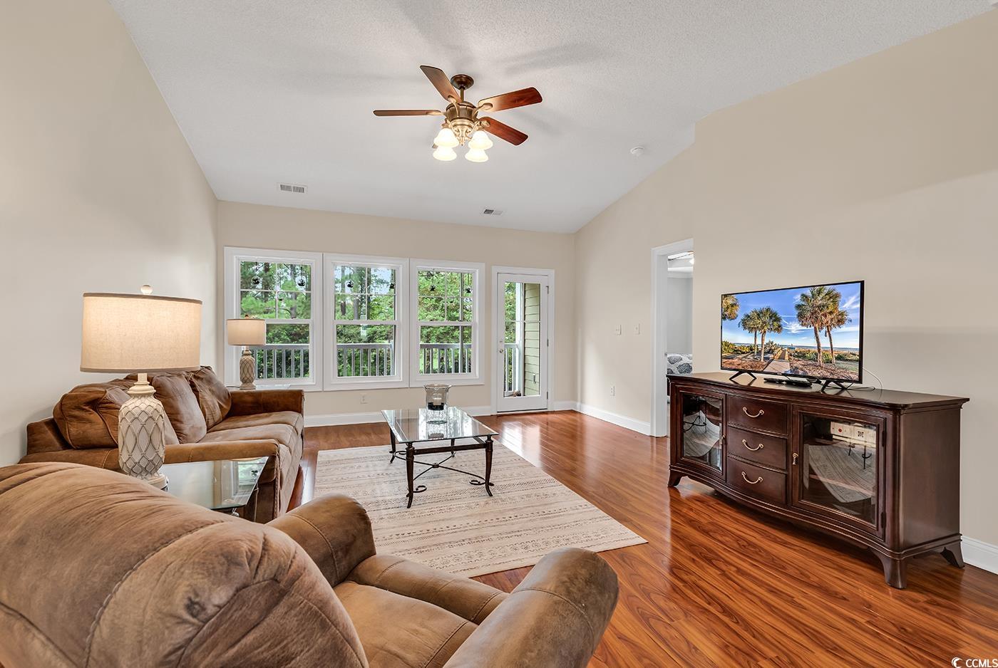 *Price Improvement* 'Unit also has new hot water heater, stove washer dryer and refrigerator'!#321 The Woodlands is a stunning 3-bedroom, 3 full-bath condominium located in a small, gated community within the highly sought-after golf course and waterway neighborhood of Barefoot Resort in North Myrtle Beach, SC. From the first-floor entry foyer, you'll have access to the 1-car garage. Up the wood-floor staircase, you'll find an open and spacious layout featuring wood laminate flooring in the stairs, dining area, and living room, and tile flooring in the kitchen, foyer, and all three bathrooms. A soaring cathedral ceiling in the living room, and a wall of windows overlooking the renowned Barefoot Resort Golf Course. Ceiling fans are located in the living room, all bedrooms, and the rear screened-in porch. The open kitchen is a cooks delight, equipped with BRAND NEW stainless steel appliances, including a smooth-top stove, refrigerator, dishwasher, and microwave. A large pantry, and a raised bar. Adjacent to the kitchen is a separate laundry room that now features a brand new full-size side-by-side washer and dryer. The owners suite is peaceful, featuring a tray ceiling, crown molding, a walk-in closet, and a luxurious bathroom with double sinks, a large garden tub, a separate shower, marble sink-top, framed mirrors, and stylish lighting. The second bedroom serves as a guest suite with its own en-suite bathroom, including a tub/shower combo. The third bathroom, also with a tub/shower combo, reflects the same elegant finishes. Whether you're seeking a primary residence or a second home, #321 The Woodlands is perfectly positioned in one of North Myrtle Beach's most desirable communities. Residents enjoy access to a quiet community pool within the gated neighborhood, the expansive resort-style pool along the Intracoastal Waterway, and a private beachfront cabana exclusive to Barefoot Resort homeowners. Live the beach life in comfort and style#321 The Woodlands is move-in ready and waiting for you!