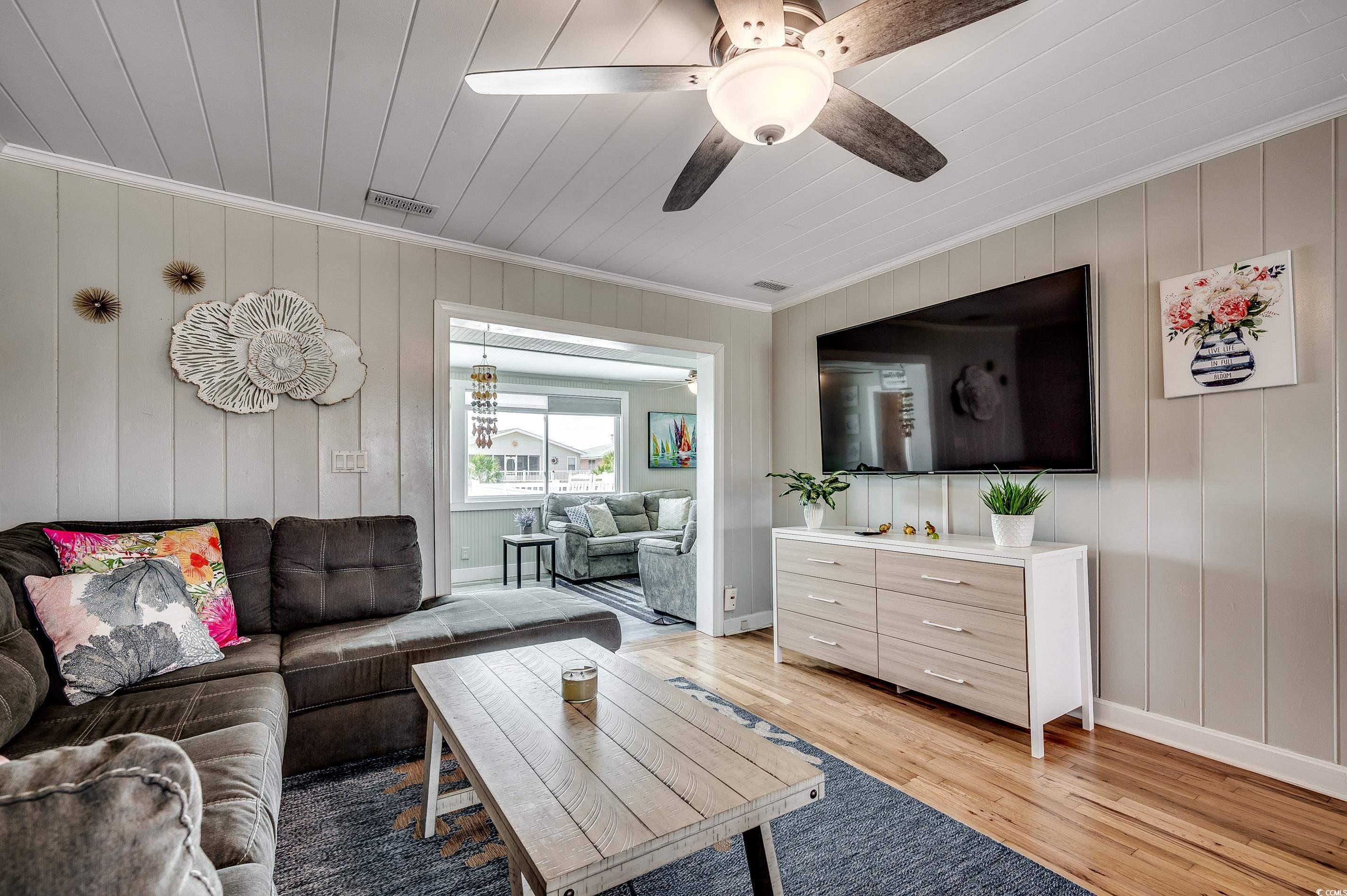 Cherry Grove channel home with EXCEPTIONAL water views! Beautifully renovated and fully furnished, waterfront home in the Cherry Grove section of North Myrtle Beach, just over a block from the beach. Enjoy boating, kayaking, fishing from your private dock and outdoor living by the pool. This home offers a thoughtfully designed interior featuring an updated kitchen with custom soft close cabinetry, quartz countertops, a tile backsplash, stainless steel appliances, a farmhouse sink and custom built window bench with hidden storage. Refinished hardwood floors run throughout main living level, complemented by updated lighting and fans. The spacious den includes a wall of windows showcasing panoramic water and sunset views. All bathrooms have been updated in recent years. The lower level of home was renovated in 2023 into a 4th bedroom with mini split HVAC and features its own private entrance. You will love the backyard which features a new pool with tanning deck installed in 2024, concrete patio , pergola with shade sail - ideal for entertaining and relaxing. Outdoor shower for your convenience and golf cart storage. A new roof was installed in April 2022 and commercial grade 6"" gutters with decorative rain barrels, upgraded underground electrical panel and fencing gates were installed in 2021, along with new vinyl railings installed on both the front and rear porches and stairwells. New upper deck installed in 2024, perfect for outdoor dining while taking in the views! This home is situated on a channel and has water views from the front and back. Hear the ocean waves crashing from your backyard, enjoy dining on deck or launch a boat, kayak or paddle board from your private dock! Don't miss out on this spectacular home. Great primary residence, vacation home or investment home, take advantage of the current rentals on the books for 2026!