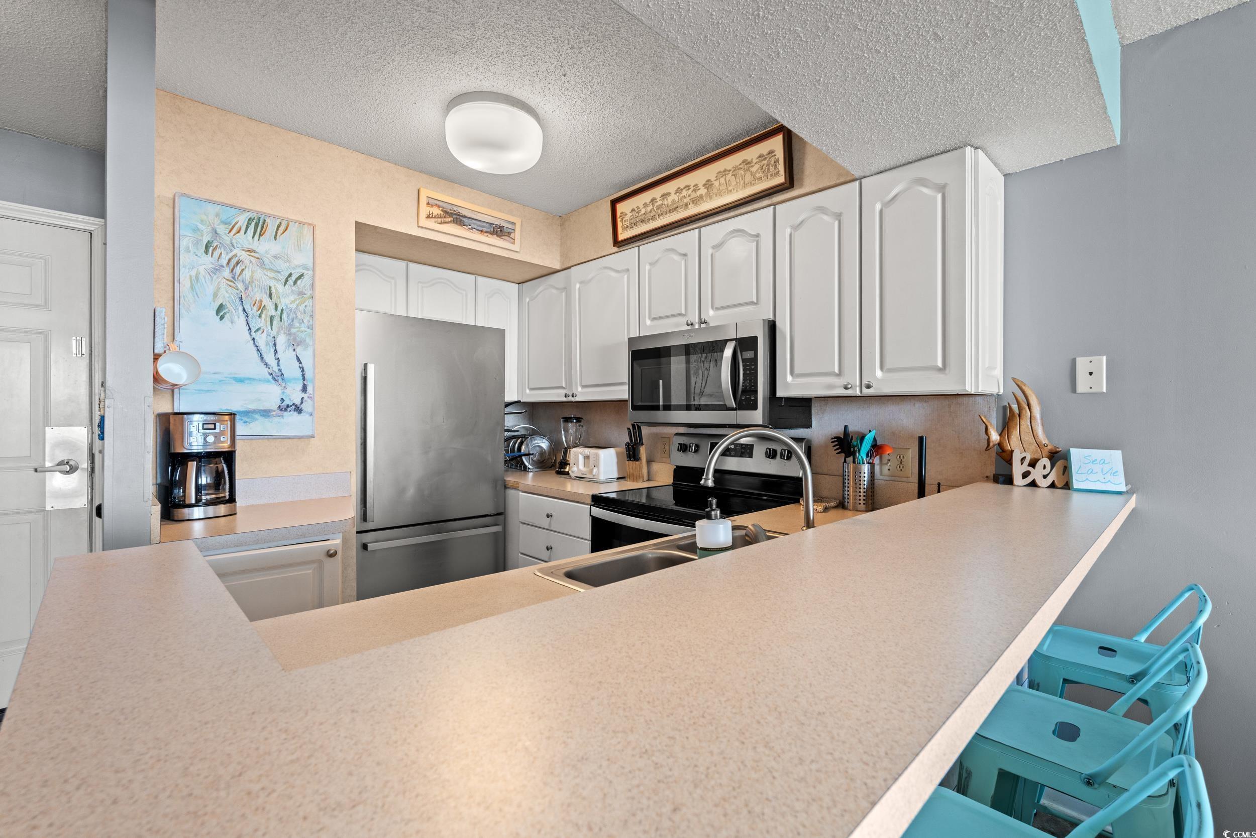 Direct Oceanfront Unit on Shore Drive with great rental history! Tucked away on a quiet stretch of beach near the marsh and Dunes Golf & Beach Club. This fully furnished 2-bedroom, 2-bath condo offers direct beach access and a turnkey setup for vacation use or rental income. The interior features a mix of tile and LVP flooring, a full kitchen with stainless steel appliances, wet bar, and comfortable furnishings throughout. Recently updated with a new HVAC system and water heater. Relax on the private balcony with direct ocean views, or walk to Ocean Annies for live music and a laid-back coastal atmosphere. Well-maintained and ready for its next owner, this unit makes it easy to enjoy everything the Myrtle Beach area has to offer. Sands Beach Club offers an indoor and outdoor pool, tennis courts, fitness center and covered parking options!