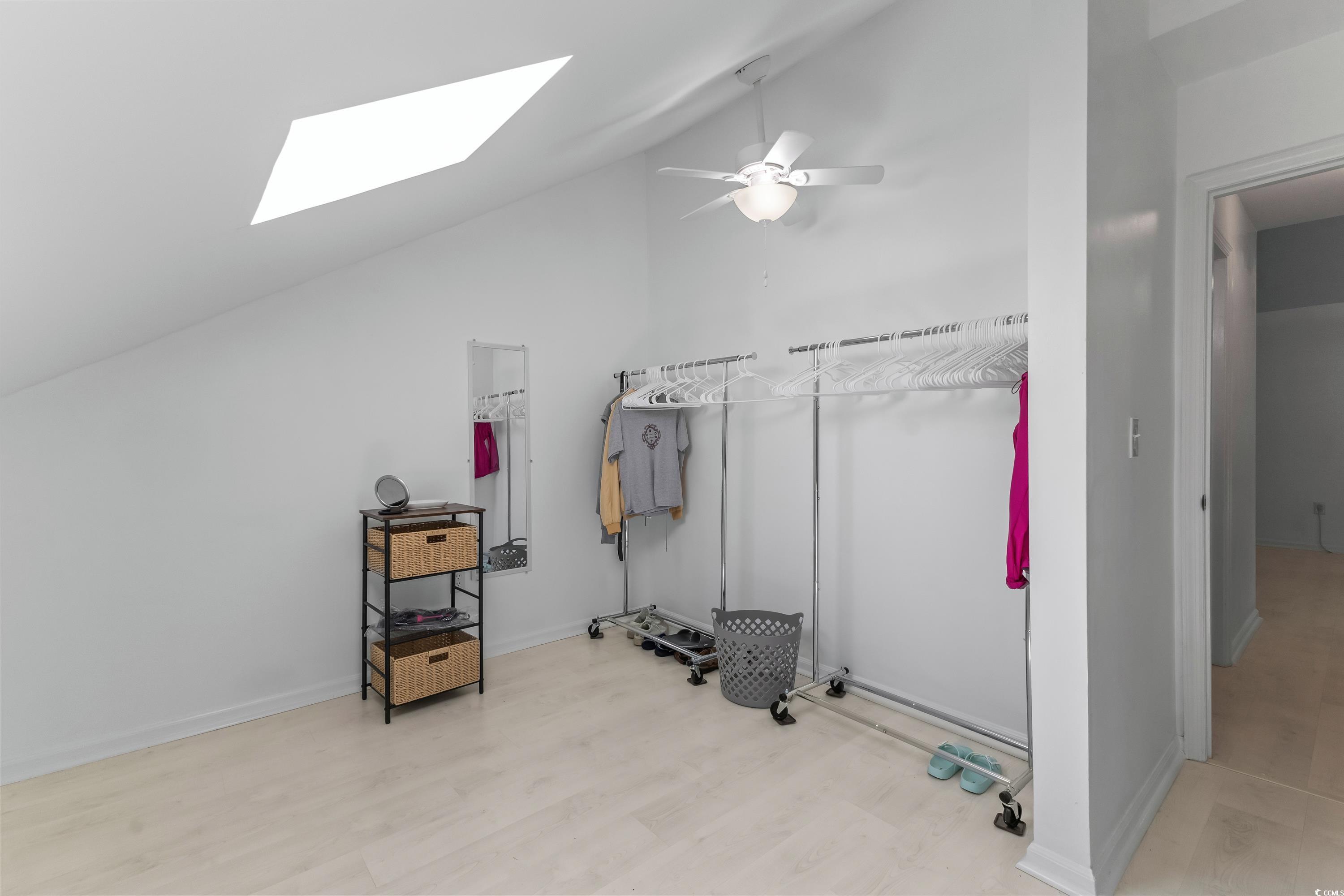This beautifully updated, light-filled two-story condo comes fully furnished and ready to enjoy beach life. Ideally located in the heart of Myrtle Beach on 38th Avenue North, between Oak Street and North Kings Highway, it is just two blocks from the beach. Inside, you'll find stylish tile throughout the main living areas and durable luxury vinyl plank flooring in the bedrooms. The main level offers two spacious bedrooms, two full bathrooms (with laundry conveniently located in one), a comfortable living room, a well-appointed kitchen, and a charming screened-in porch with carpetingperfect for relaxing or entertaining. Upstairs, a versatile loft area features the third bedroom, an additional full bath, and plenty of open space for storage or flexible use. Cathedral ceilings and large windows flood the home with natural light, creating an airy and inviting atmosphere. Enjoy the outdoors from your private screened-in porch or take advantage of the condominium's communal fenced-in yardideal for gathering or unwinding.