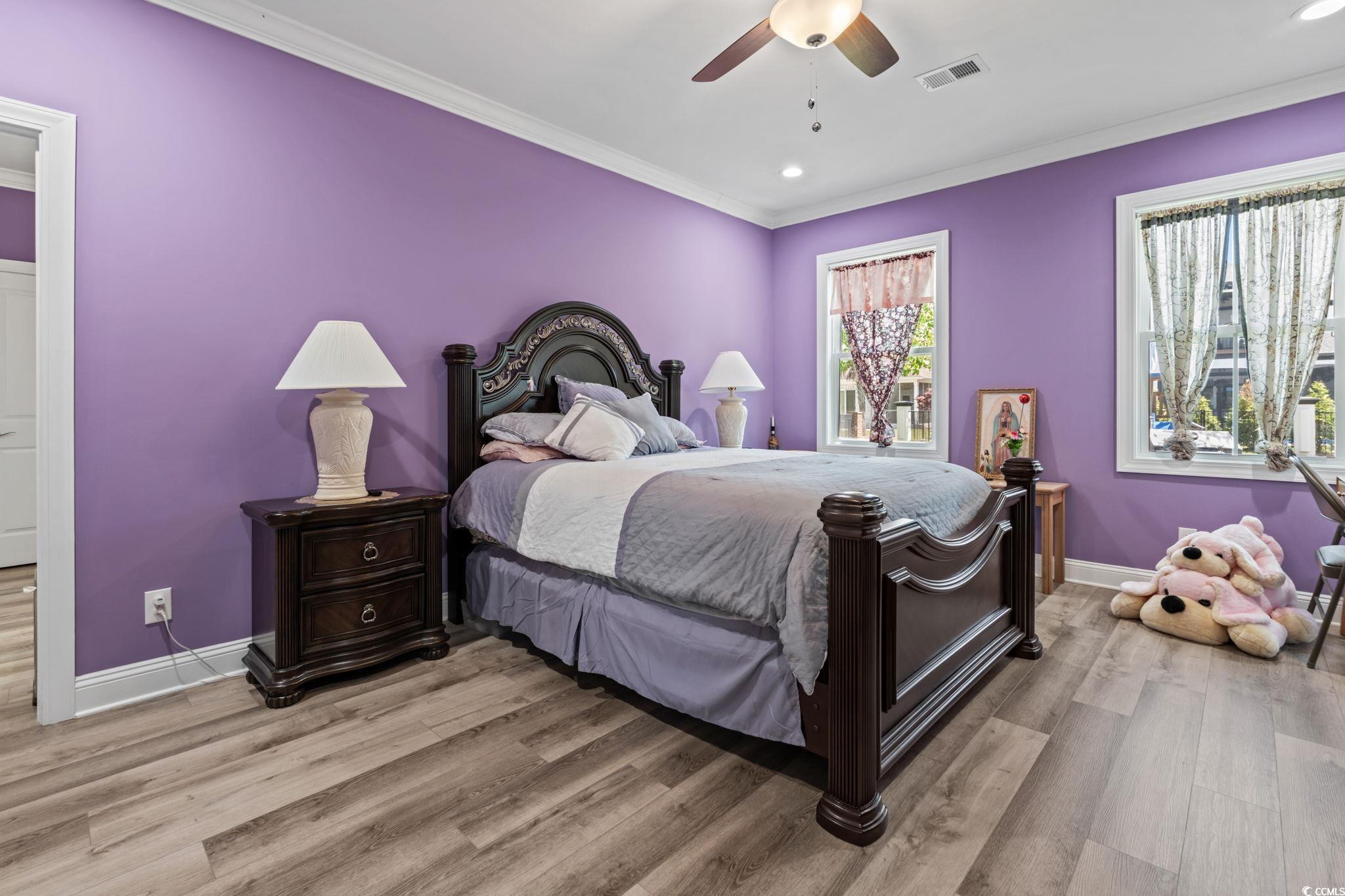 Welcome to this beautiful 5-bedroom, 4.5-bath home in the sought-after gated community of Carolina Waterway, right along the Intracoastal Waterway. From the moment you walk in, you'll love the open layout, high ceilings, and the bright, airy feel throughout the main living spaces. The kitchen is a standout, boasting a large island, modern appliances, and ample cabinet space. It flows right into the dining and living areas, making it perfect for everyday life and entertaining friends and family. You'll also notice the crown molding throughout the first floor, adding a touch of charm and style. The primary bedroom, situated on the main level, provides ample space, featuring a large bathroom with dual vanities and a spacious shower, as well as a generous walk-in closet. Upstairs, you'll find four more spacious bedrooms, great for kids, guests, or even a home office or two. This home also includes an irrigation system to keep your yard looking great with less effort. Carolina Waterway offers excellent amenities, including tennis and pickleball courts, a large community pool, a clubhouse, and secure boat storage with easy access to the water. Whether you are into boating, staying active, or want a quiet, upscale neighborhood to come home to, this place has something for everyone.