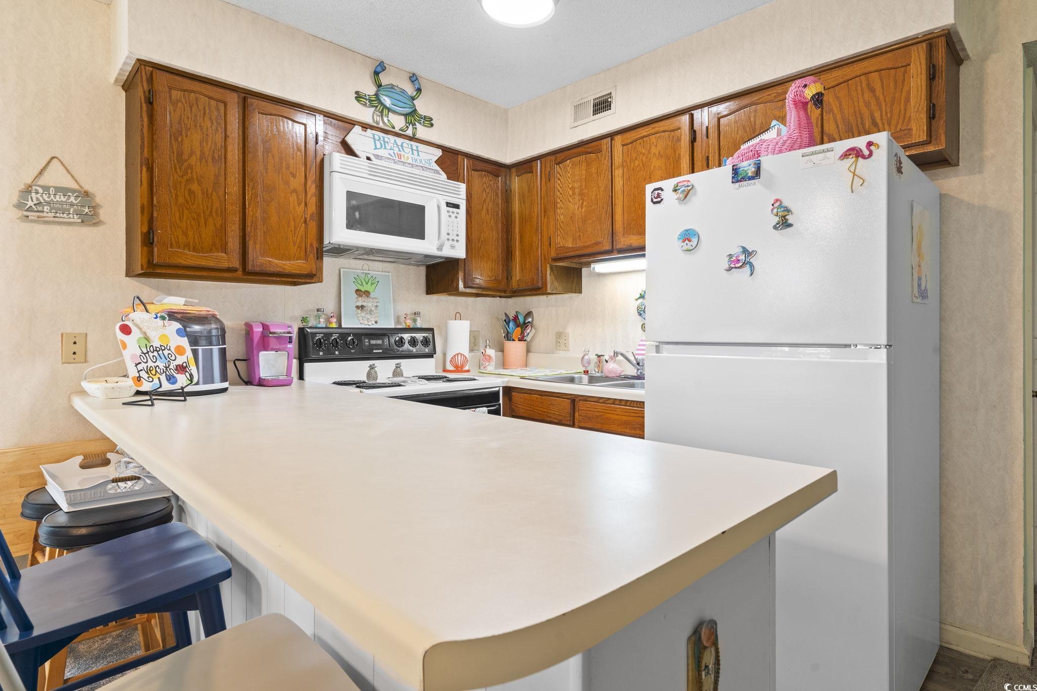 Welcome to your new coastal escapejust a breezy golf cart ride from the beach in the heart of North Myrtle Beach! This beautiful, well maintained 2-bedroom, 2-bathroom end unit condo in the desirable Ocean Greens community blends comfort, charm, and convenience in perfect harmony. Located just minutes from the sands of the Grand Strand, this home is your ideal sanctuary. Step inside to a bright and airy living space, thoughtfully designed with coastal-inspired touches and flooded with natural light. The open-concept layout effortlessly connects the living, dining, and kitchen areascreating a warm and welcoming space thats perfect for both relaxing and entertaining. The kitchen is a true delight, complete with contemporary appliances, generous cabinetry, and a breakfast bar that's perfect for casual meals or morning coffee. Whether you're whipping up a quick snack or preparing a meal after a day at the beach, this kitchen makes it a pleasure. Both bedrooms are spacious and serene, offering peaceful retreats with ample closet space. The primary suite features its own private bathroom, providing added comfort and convenience. Step outside and soak in the relaxed vibes of coastal living. Ocean Greens offers wonderful community amenities including a sparkling pool, lush green spaces, and easy access to golf courses, local shopping, dining, and entertainment. Live each day like a vacationwhether it's a sunrise walk along the beach, an afternoon by the pool, or an evening drink on your private balcony, this home captures the essence of laid-back beach life. Dont miss this opportunity to own your slice of paradise. Schedule your showing today and start living the North Myrtle Beach dream!