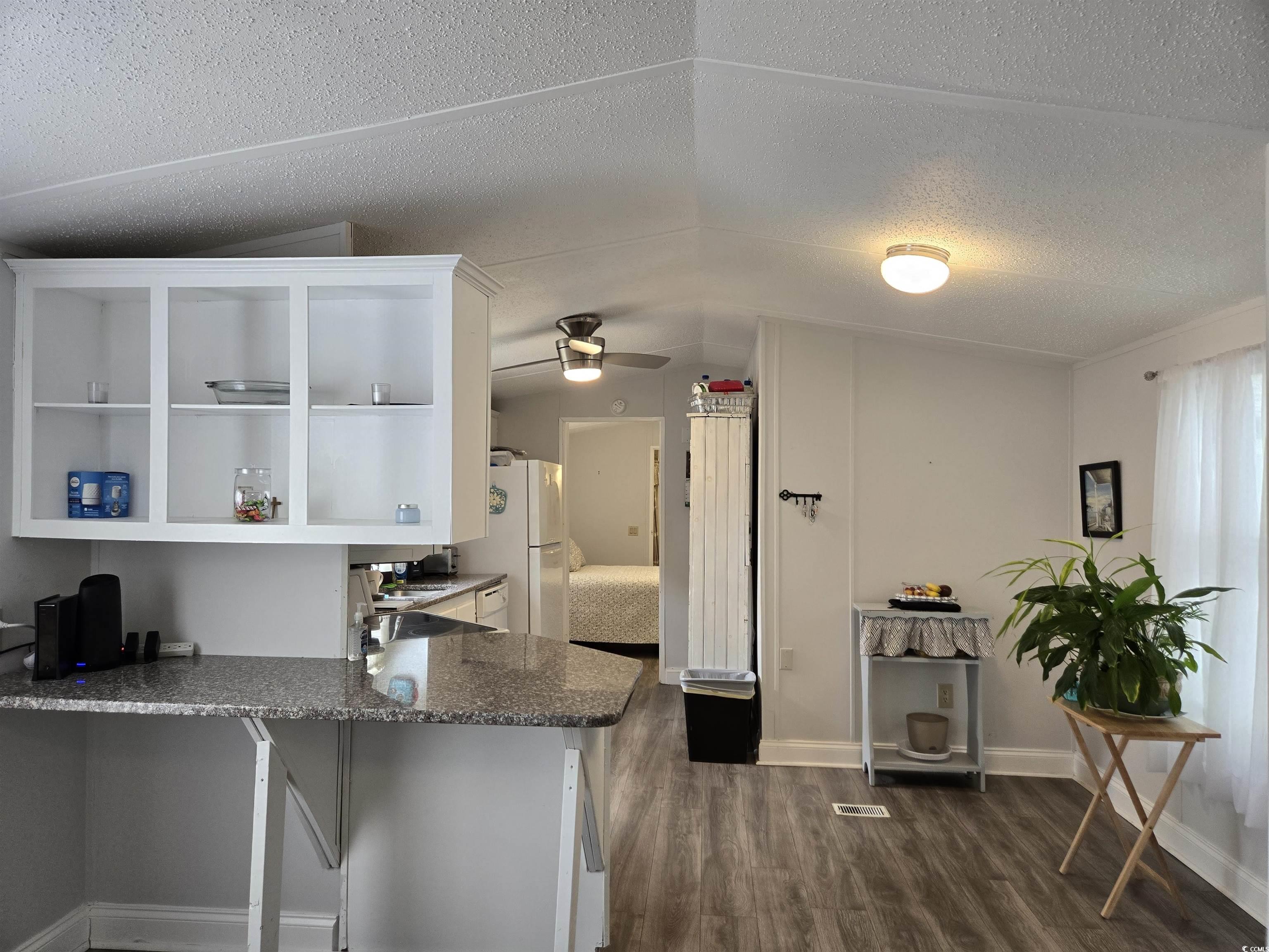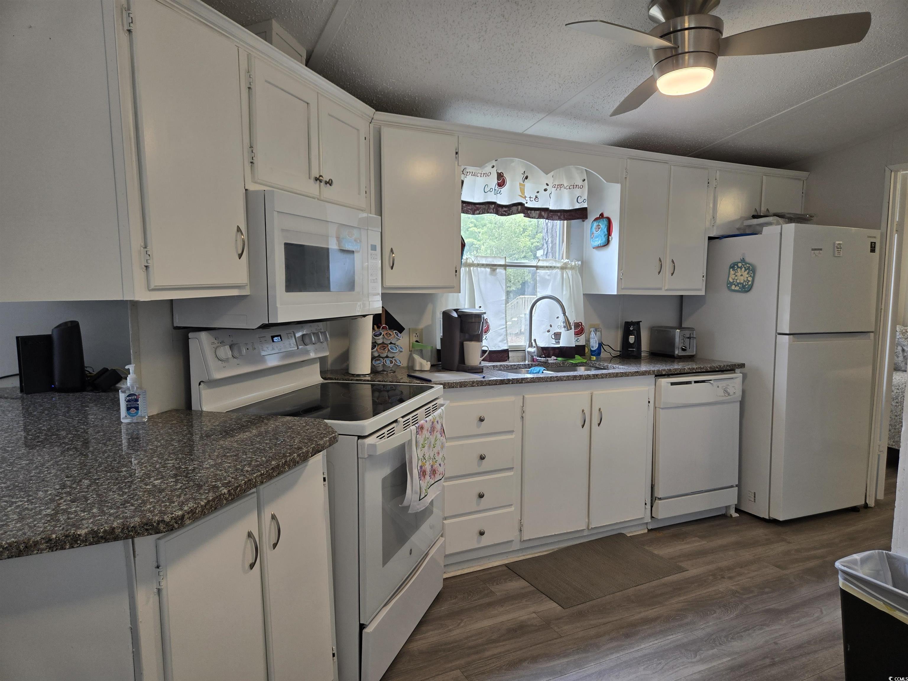 Home features a brand new metal roof and HVAC System! Appliances are under 3 years old. Home has newer flooring, ceiling fans, granite counter tops in the kitchen, and luxury tile walk in shower in the master bath. Over the counter microwave was recently purchased. Home also features a ramp making it handicap accessible as well as a large side covered deck and side pavers for a welcoming environment for hosting. With a community boat ramp, gazebo, picnic table and fishing pier this a very desirable community within walking or a golf cart ride to the marsh and Garden City Beach. Move in special going on now. Lease may be able to be paid monthly for the 1st year!