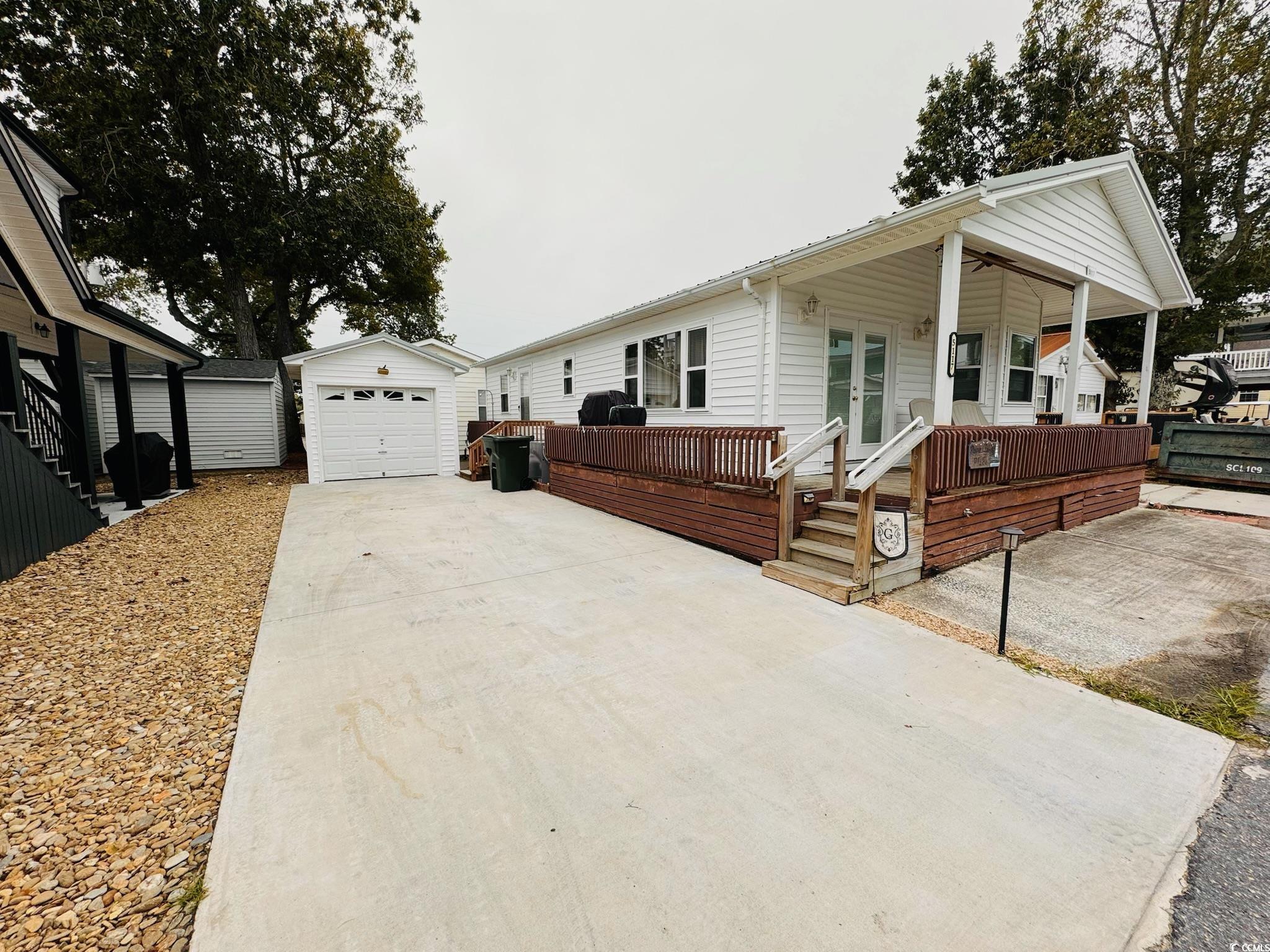 Ocean Lakes Family Campground is the place to be and this cute, covered front porch beach home could be yours!!! This home has two nice sized bedrooms and a living room with plenty of room for entertaining. The covered front porch offers great space for morning coffee or evening relaxing. The new concrete driveway leads to a 10x12 storage shed that houses your golf cart that will take you to the beach in less than three minutes. Ocean Lakes offers 24/Hr security, 1 mile of beach front, water park, indoor and outdoor pool, multiple snack bars, basketball courts, volleyball, shuffleboard, corn hole, horseshoes, 5 lakes for fishing, dog park, nature center, grocery store, laundromat and so much more!!! Schedule a showing today and let beach living become part of your life with this wonderful opportunity to purchase this home in Ocean Lakes. All measurements and squrefootage is to be verified by the buyer. Home comes partially furnished.