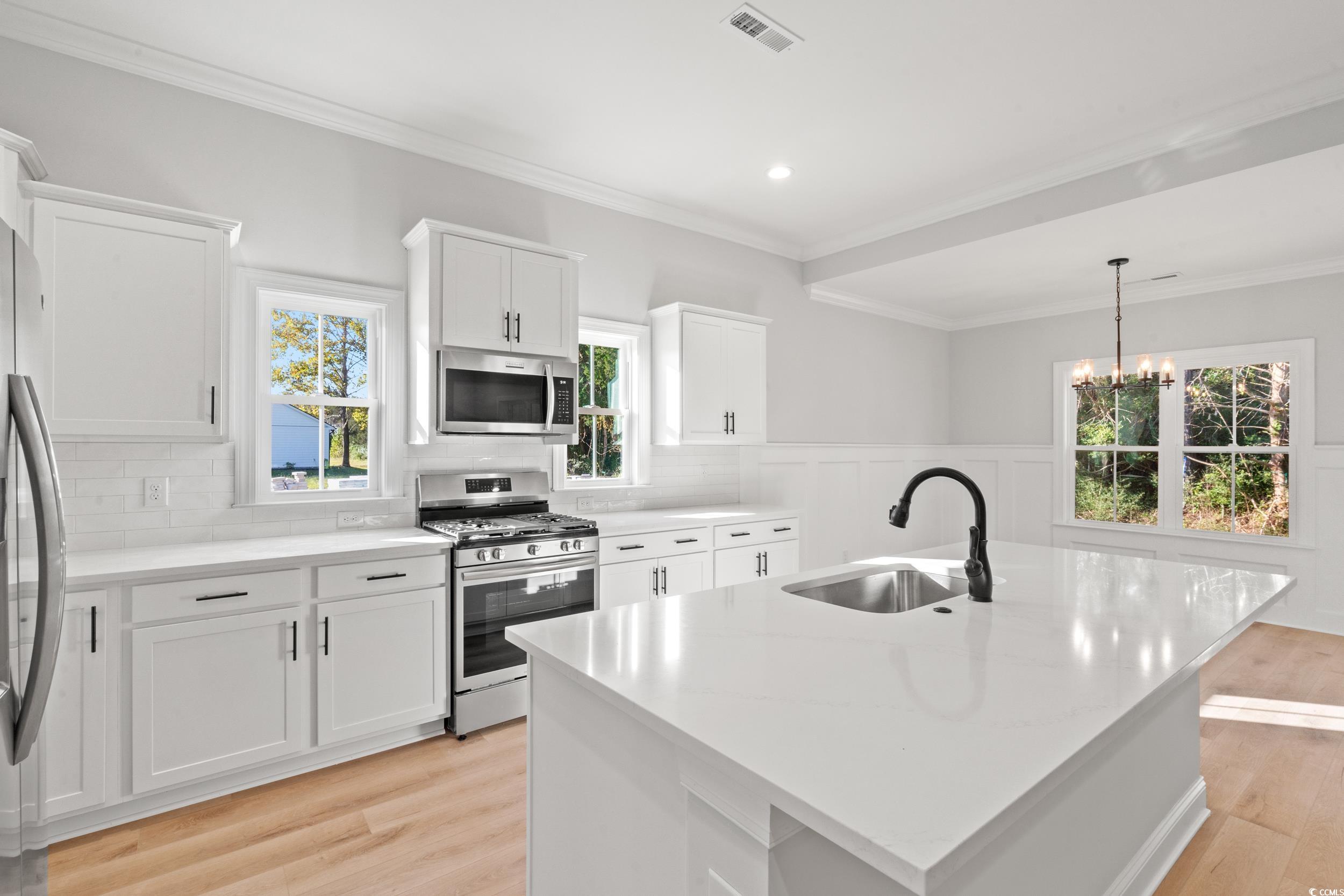 Building This best selling Sullivan floor plan in a Prime location! It features 3 spacious bedrooms, 2 & 1/2 luxurious bathrooms, with a two-car garage, perfectly situated in a prestigious Intracoastal Waterfront community in the heart of North Myrtle Beach. Step into a bright and airy open-concept living space, thoughtfully designed with contemporary finishes and high-end fixtures throughout. The gourmet kitchen boasts state-of-the-art appliances, quartz countertops, a large center Island, natural gas range and ample cabinetry perfect for culinary adventures and entertaining guests. Relax in your luxurious main floor master suite, featuring a spacious bedroom, walk-in closet, and en-suite bathroom, with dual sinks and a gorgeous zero entry tiled shower. Located just moments away from renowned golf courses, shopping, and a variety of local dining options, every day brings a new adventure. Enjoy easy access to exciting attractions and entertainment, ensuring there's always something to explore. Public Beach Access, Central Park boasting Pickleball, tennis, Basketball courts, and more, as well as the NMB Aquatic and Fitness Center are all conveniently located less than 5 minutes away. Kingswood on the Waterway offers the perfect blend of relaxation and convenience. Don't miss out on this incredible opportunity to live in one of North Myrtle Beach's most desirable locations! Building Lifestyles for over 40 years, we remain the Premier Homebuilder in the Grand Strand, crafting new communities and custom homes. Honored as four-time Best Home Builder by WMBF News and voted Best Residential Real Estate Developer in consecutive years by the Myrtle Beach Herald Readers Choice Awards. Proudly rooted in the Grand Strand, we invite you to experience the local pride that we build in Horry and Georgetown Counties. Pictures are of a similar home and are for Illustration purposes only!