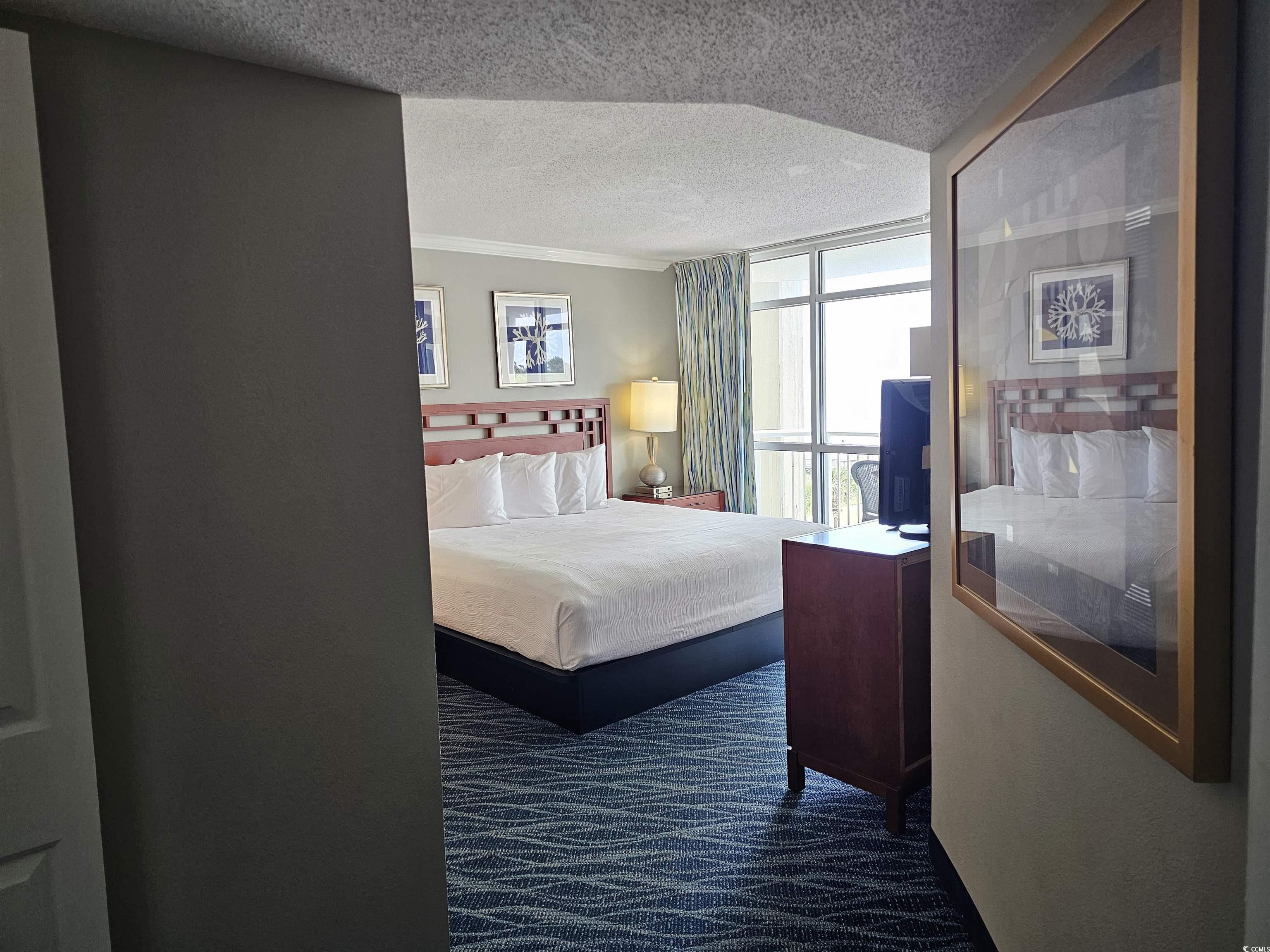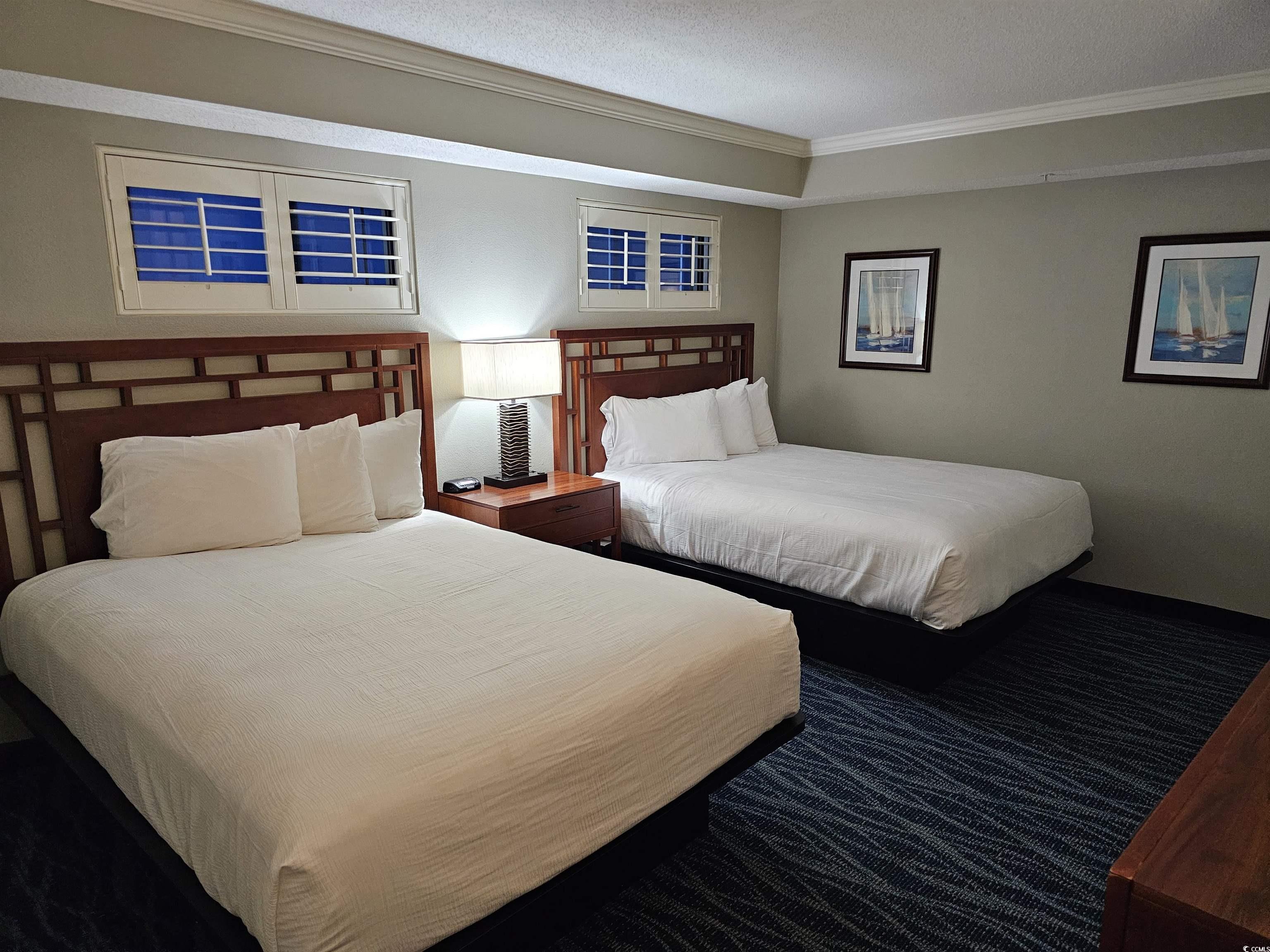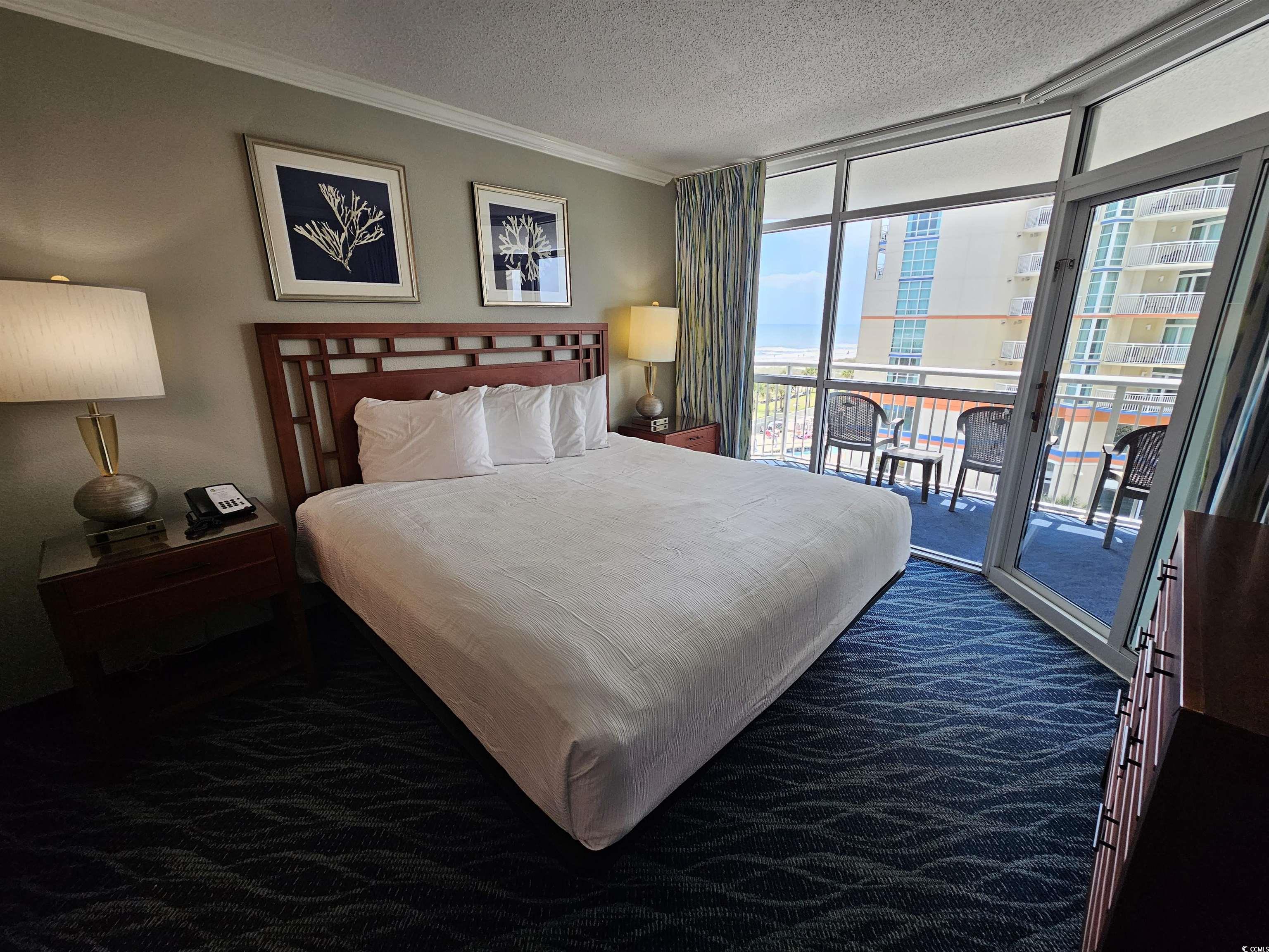 This unit offers amazing views of the ocean with a large balcony and floor to ceiling windows in the living room and main bedroom. This 2-bedroom/2-bath condo enjoys all the year-round benefits of Dunes Village Resort. With plenty of room this unit will sleep 8, featuring two queen beds in the guest room, and a king in the master suite plus a queen size sofa sleeper in the living room. The villa also offers a full kitchen with full size stove, microwave, dishwasher, garbage disposal and granite counter tops. The unit features many upgrades, kitchen backsplash, wall paper in the bathrooms, NEW mattresses in all bedrooms in 2024 and coming in MAY of 2025 NEW LVP flooring throughout. The fun continues with a year-round activities department, tennis courts, basketball courts, beach volleyball court, putt putt course and playground. While the family enjoys the water parks, tennis and basketball courts, relax and get a massage in the onsite Spa or workout in the exercise room. The resort also offers two restaurants and a Starbucks Coffee Shop. The Dunes Village Resort has just been awarded the #1family resort in Myrtle Beach, as well as the #4 family resort in the entire U.S by the Today Show and TripAdvisor. If you ever find time to leave this amazing property you will find many of Myrtle Beach's top attractions just moments away. Don't miss out on this property, make sure you stop in for a viewing.
