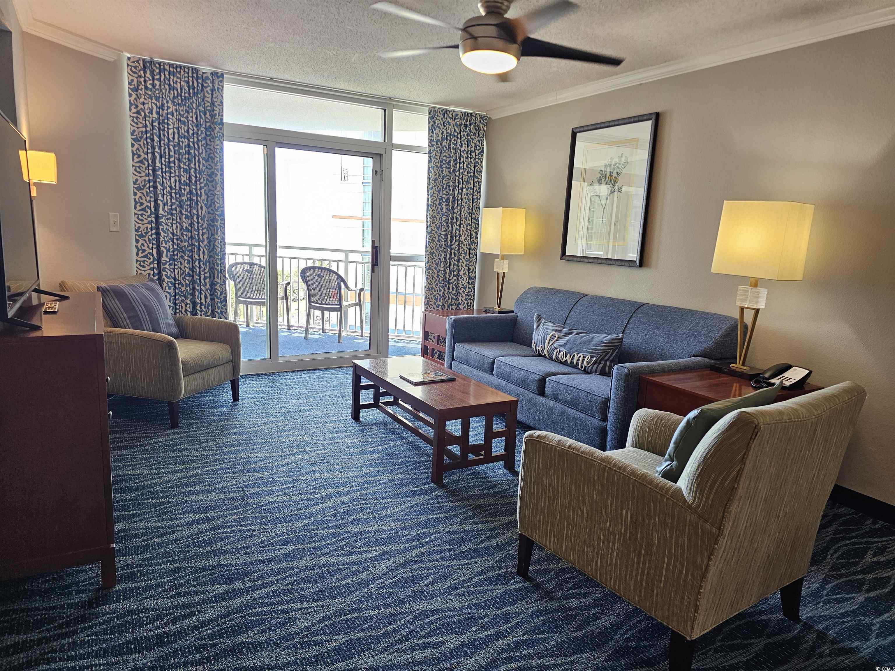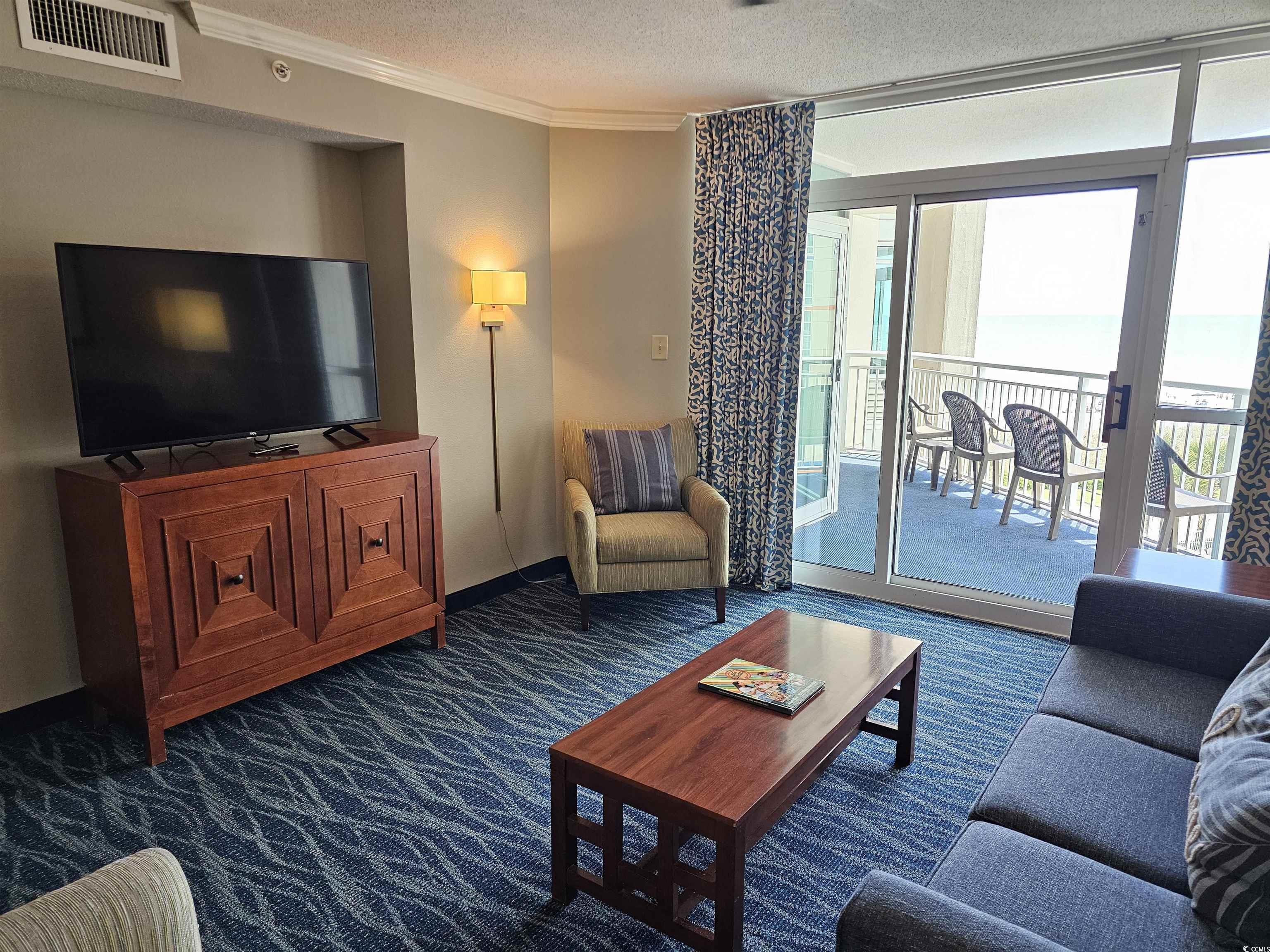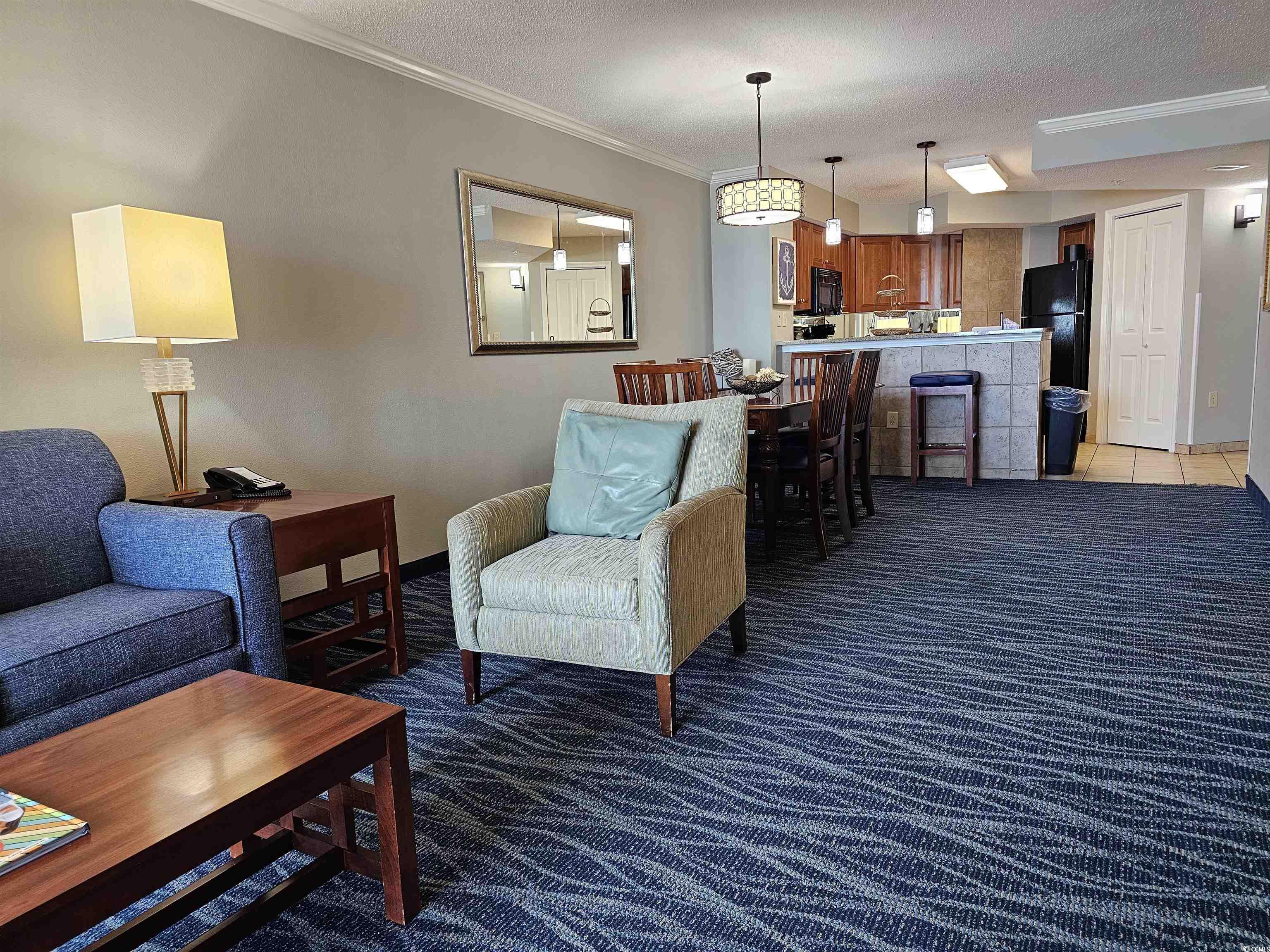 This unit offers amazing views of the ocean with a large balcony and floor to ceiling windows in the living room and main bedroom. This 2-bedroom/2-bath condo enjoys all the year-round benefits of Dunes Village Resort. With plenty of room this unit will sleep 8, featuring two queen beds in the guest room, and a king in the master suite plus a queen size sofa sleeper in the living room. The villa also offers a full kitchen with full size stove, microwave, dishwasher, garbage disposal and granite counter tops. The unit features many upgrades, kitchen backsplash, wall paper in the bathrooms, NEW mattresses in all bedrooms in 2024 and coming in MAY of 2025 NEW LVP flooring throughout. The fun continues with a year-round activities department, tennis courts, basketball courts, beach volleyball court, putt putt course and playground. While the family enjoys the water parks, tennis and basketball courts, relax and get a massage in the onsite Spa or workout in the exercise room. The resort also offers two restaurants and a Starbucks Coffee Shop. The Dunes Village Resort has just been awarded the #1family resort in Myrtle Beach, as well as the #4 family resort in the entire U.S by the Today Show and TripAdvisor. If you ever find time to leave this amazing property you will find many of Myrtle Beach's top attractions just moments away. Don't miss out on this property, make sure you stop in for a viewing.