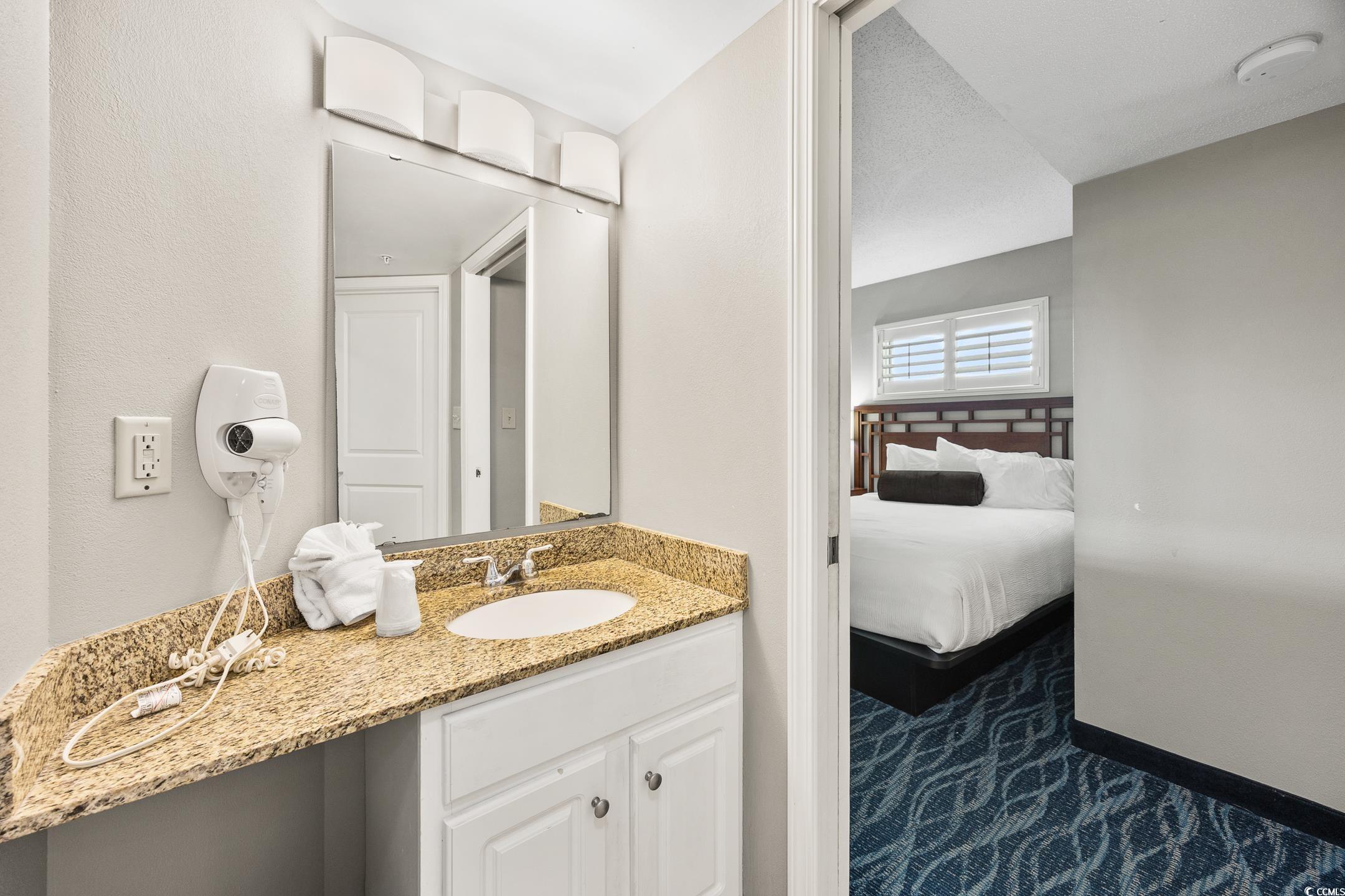 Spacious and upgraded unit in the highly sought-after Dunes Village Resort on the Golden Mile. Features include a full kitchen with granite countertops and appliances, two large bedrooms with en-suite baths, a sleeper sofa, and an oversized wraparound balcony with stunning ocean views. The primary suite offers a king bed and direct balcony access. Resort amenities: two indoor water parks, outdoor pools/hot tubs/lazy river, fitness center, spa, on-site dining, coffee bar, tennis, basketball, kids club, and gated parking. Unit has an excellent rental history. Close to top Myrtle Beach attractions, airport, shopping, dining, and golf. Make an appointment today!