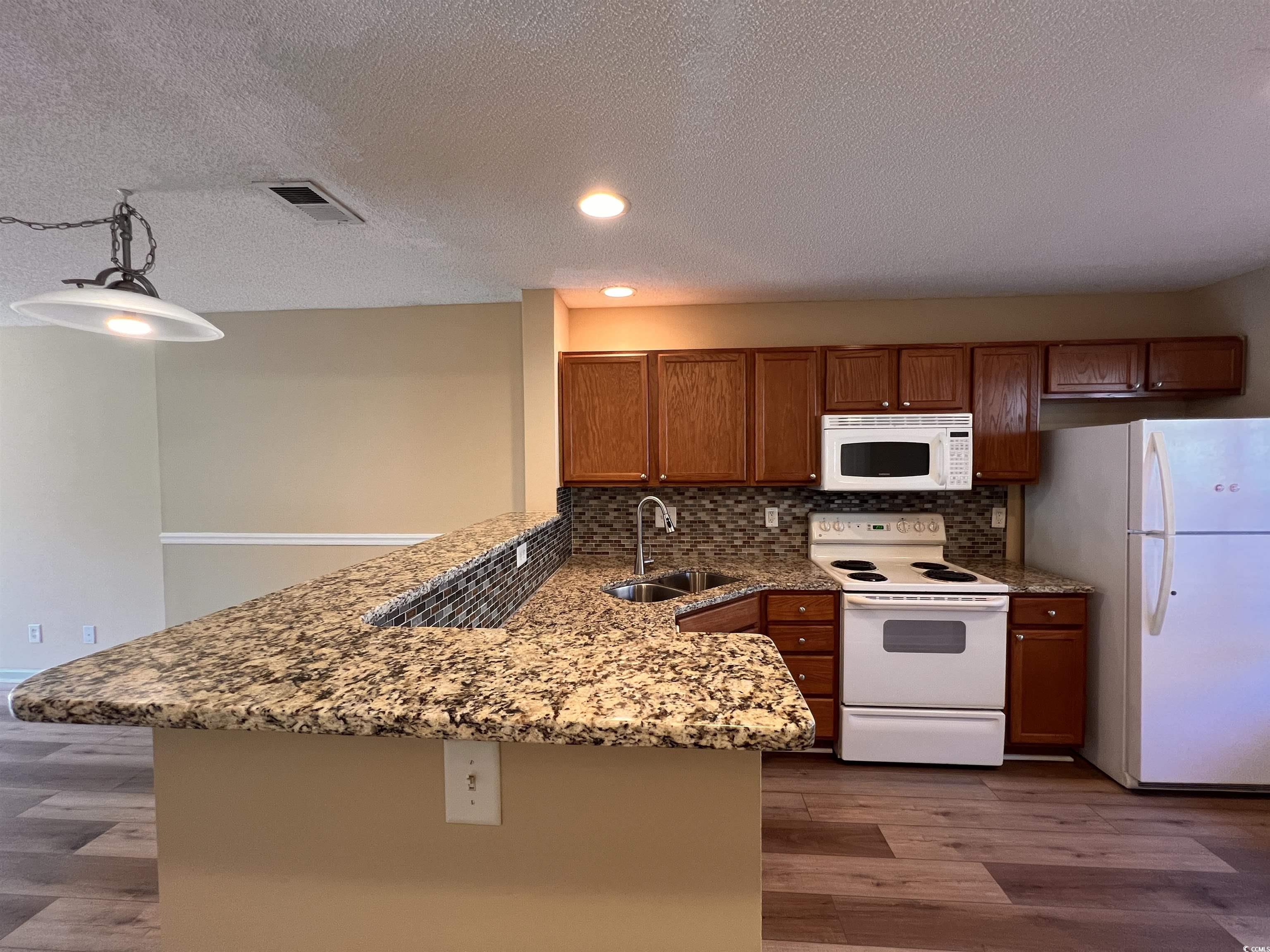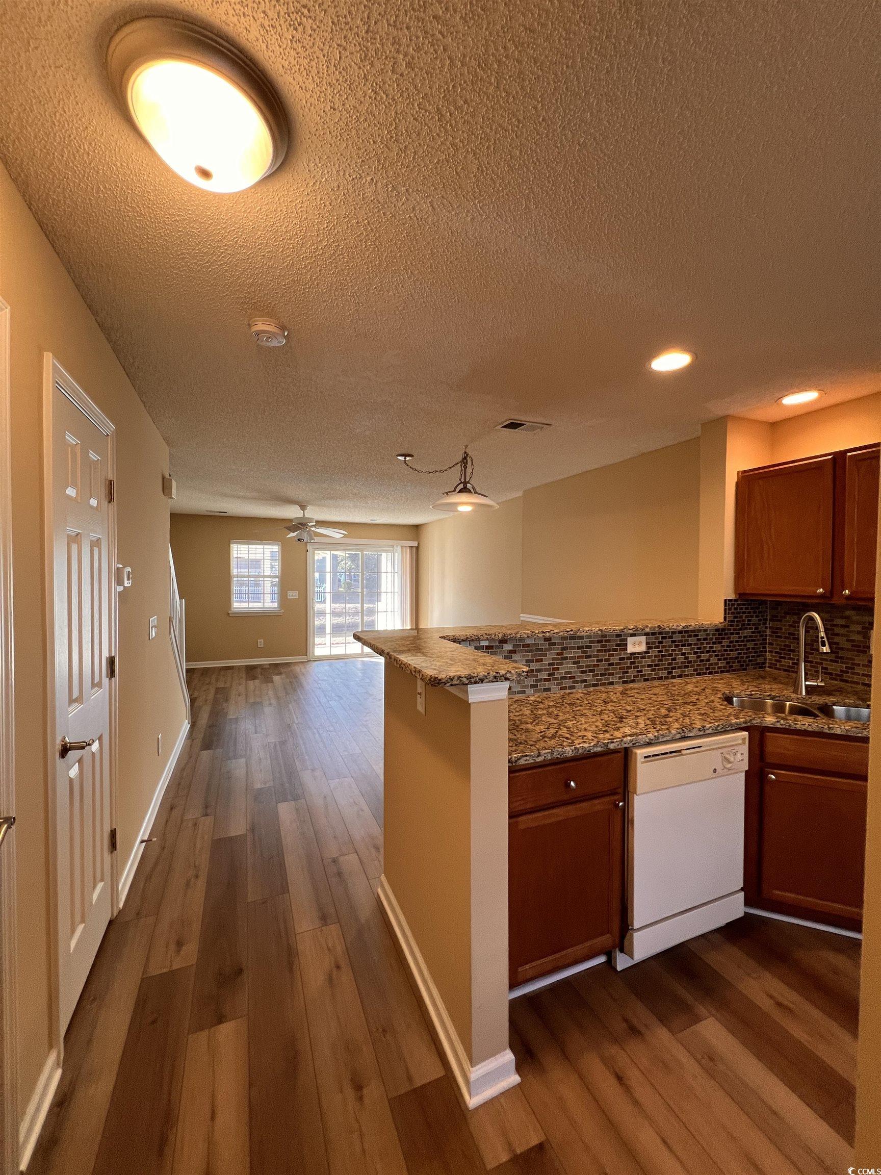 Beautifully updated 2BR/2.5BA townhouse with peaceful pond views in the sought-after Sawgrass East community of Carolina Forest. This move-in ready home features an open-concept layout with pond views. Fresh paint throughout the interior, screened porch, and storage room. Recent upgrades include new commercial-grade LVP flooring throughout, new granite countertops and breakfast bar, deep double sink, Moen Spot Resist kitchen faucet, new hot water heater, new ceiling fans, updated air registers, new window and porch screens, and a refinished storage room. Both bedrooms are private suites with full baths; the primary overlooks the pond and fountain. Enjoy outdoor living on the screened-in porch with water views. Community amenities include a pool, clubhouse, and walking/biking trails. Ideally located near top-rated schools, CCU, Conway Medical Center, golf, shopping, dining, Publix, and only 15 minutes to the beach via International Drive. Great as a primary home, vacation spot, or rental investment.