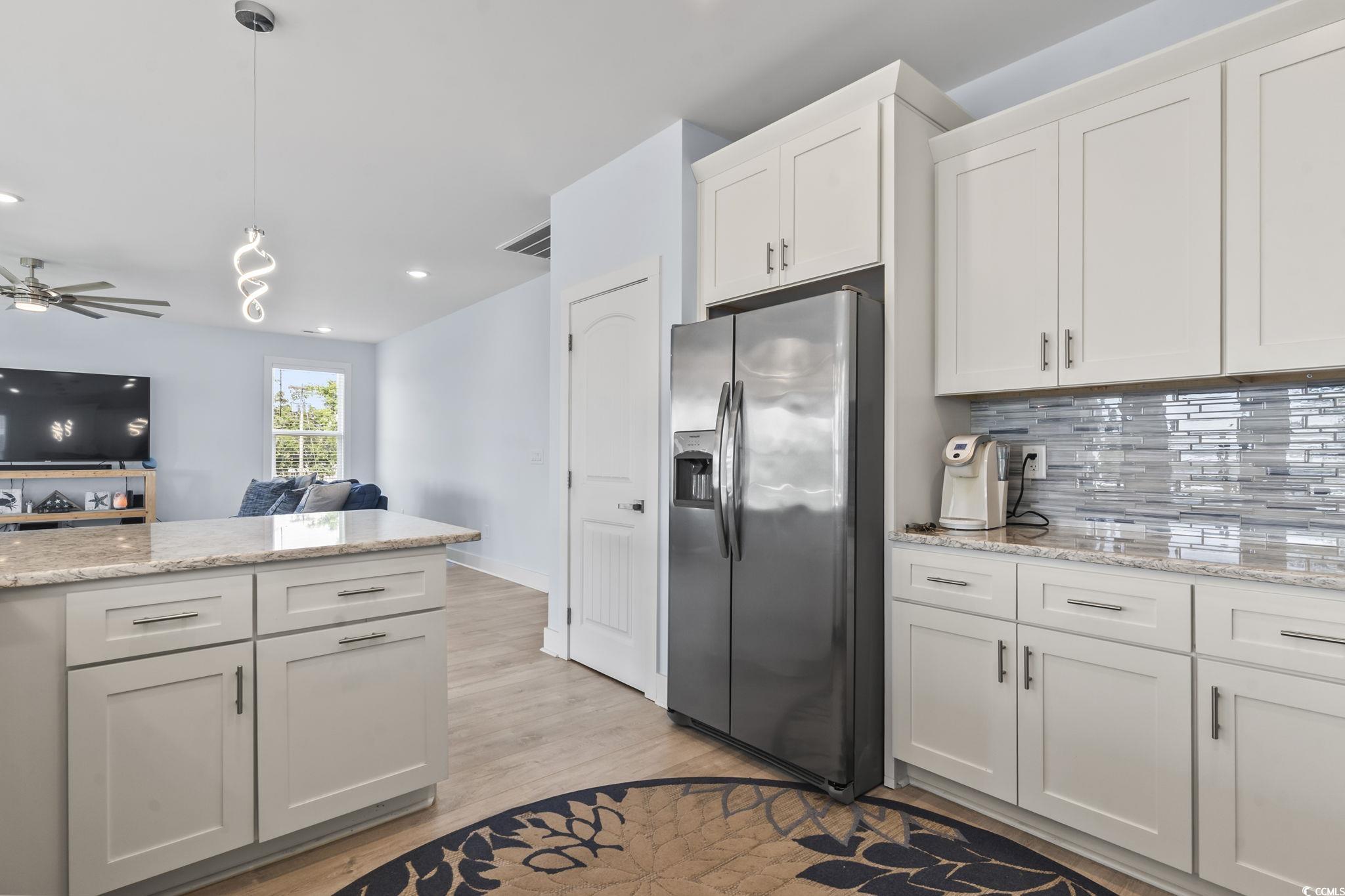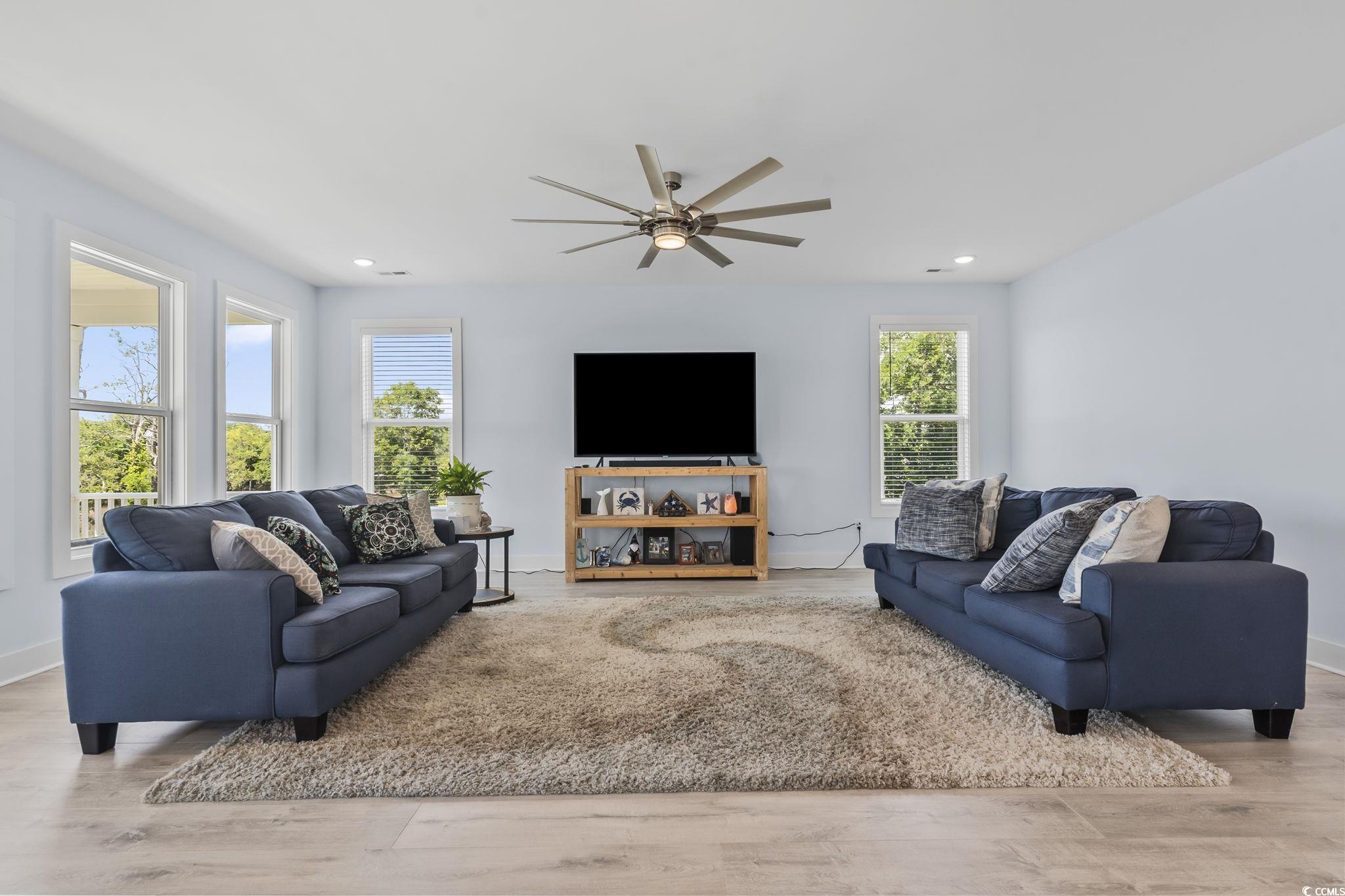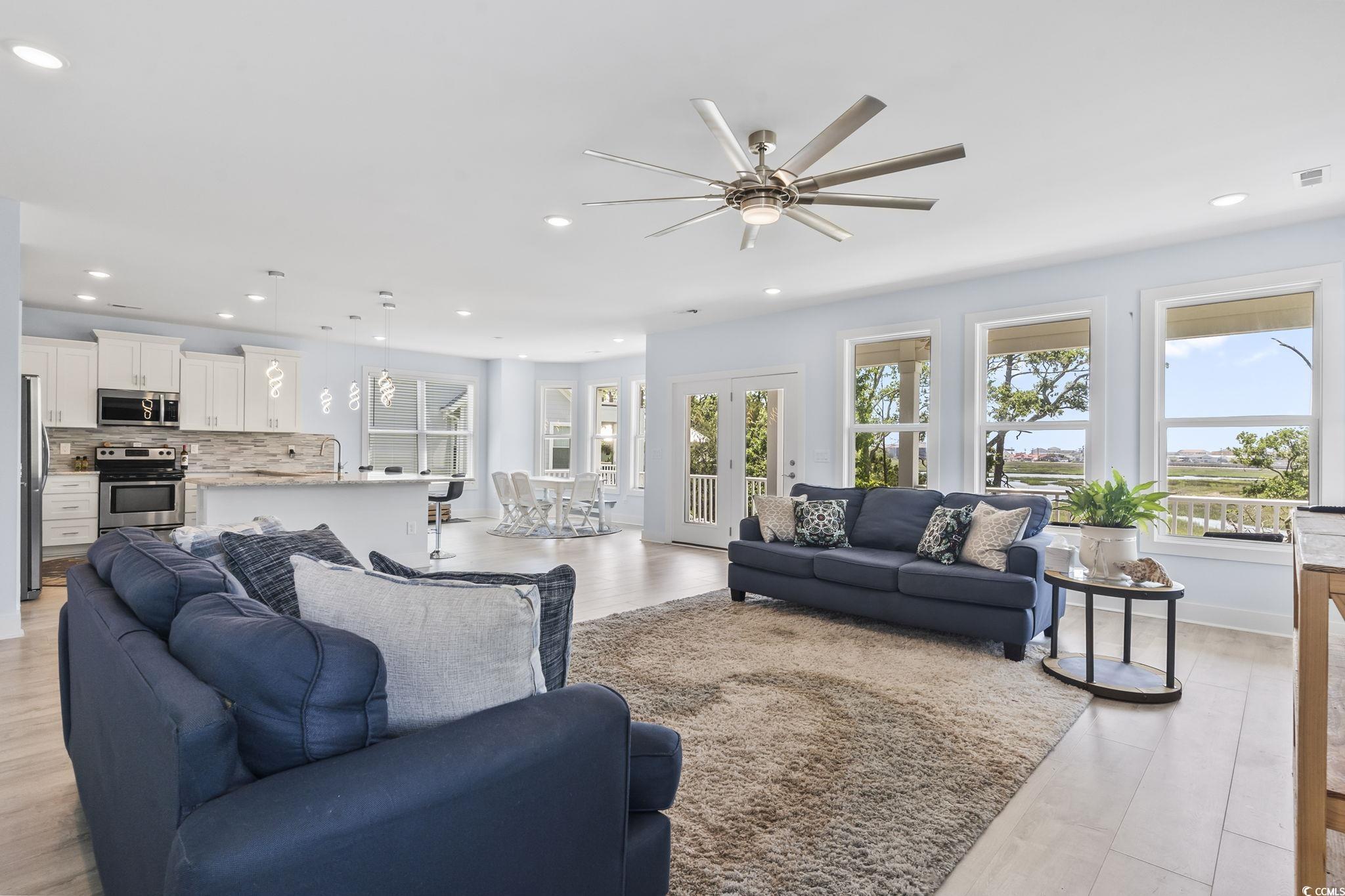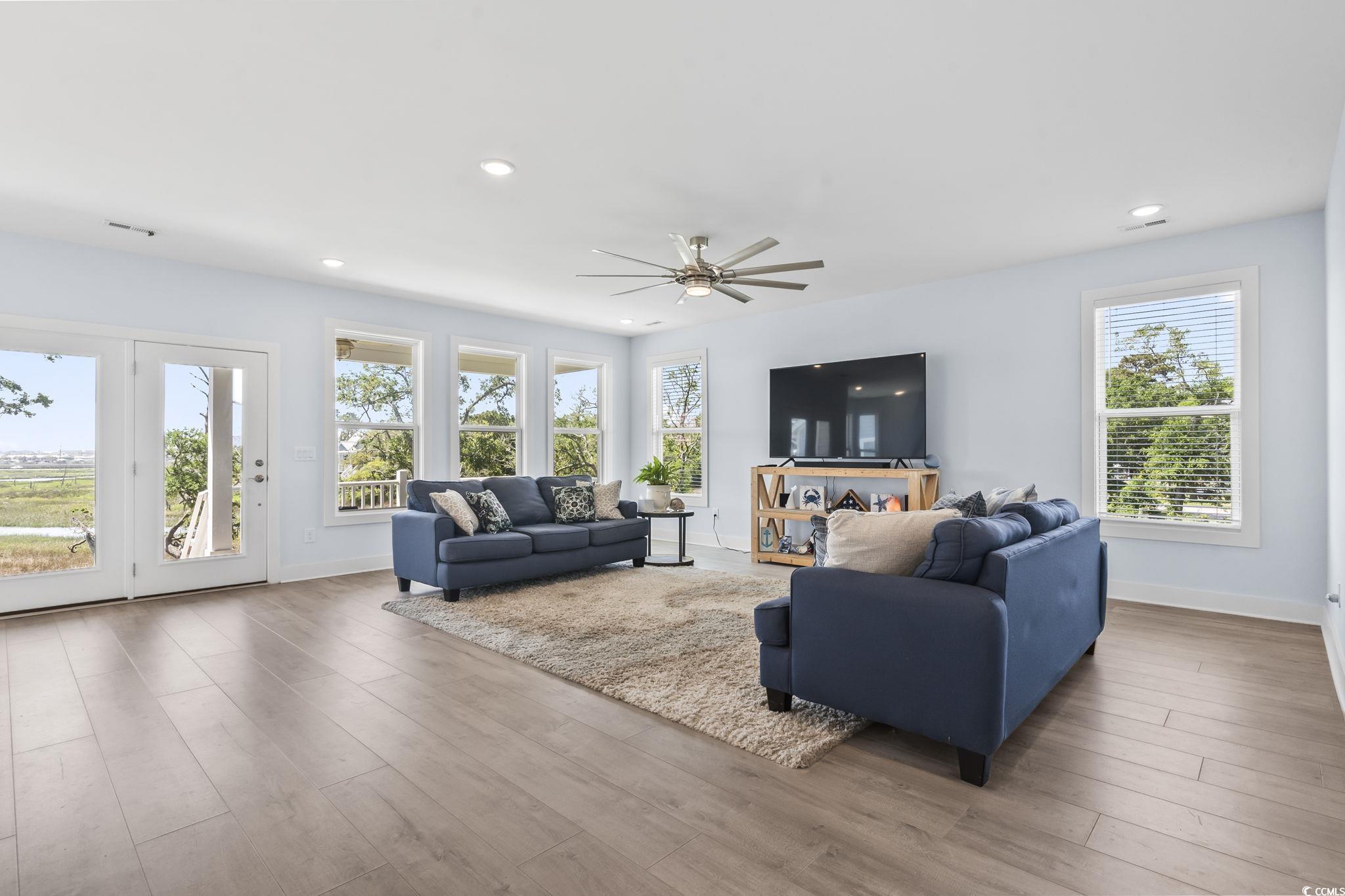 Built in 2022 on the marsh in Garden City with **NO HOA** and ample parking, this low country-style home is just a golf cart ride from Atlantic Ave, the beach, iconic Sam's Corner, and Garden City Pier. Rarely available in this prime location, it features Hardie Plank siding, two full-length porches, one off the master for private sunbathing, the other overlooking the marsh for stunning sunrises and an open floor plan with floor-to-ceiling windows, neutral LVT flooring, white soft-close cabinets, quartz countertops, stainless appliances, a large island, pantry, and dining area with expansive views. All bedrooms include walk-in closets and showers, and the oversized garage/flex space (16'2 x 17'2) includes a full bath. Golf cart to Sanford Cox Park for playground fun, crabbing, BBQs, and peaceful pier fishing, the only thing missing is you. Schedule your showing today and envision the possibilities of calling this place your new home! Square footage is approximate and not guaranteed. Buyer responsible for verification.