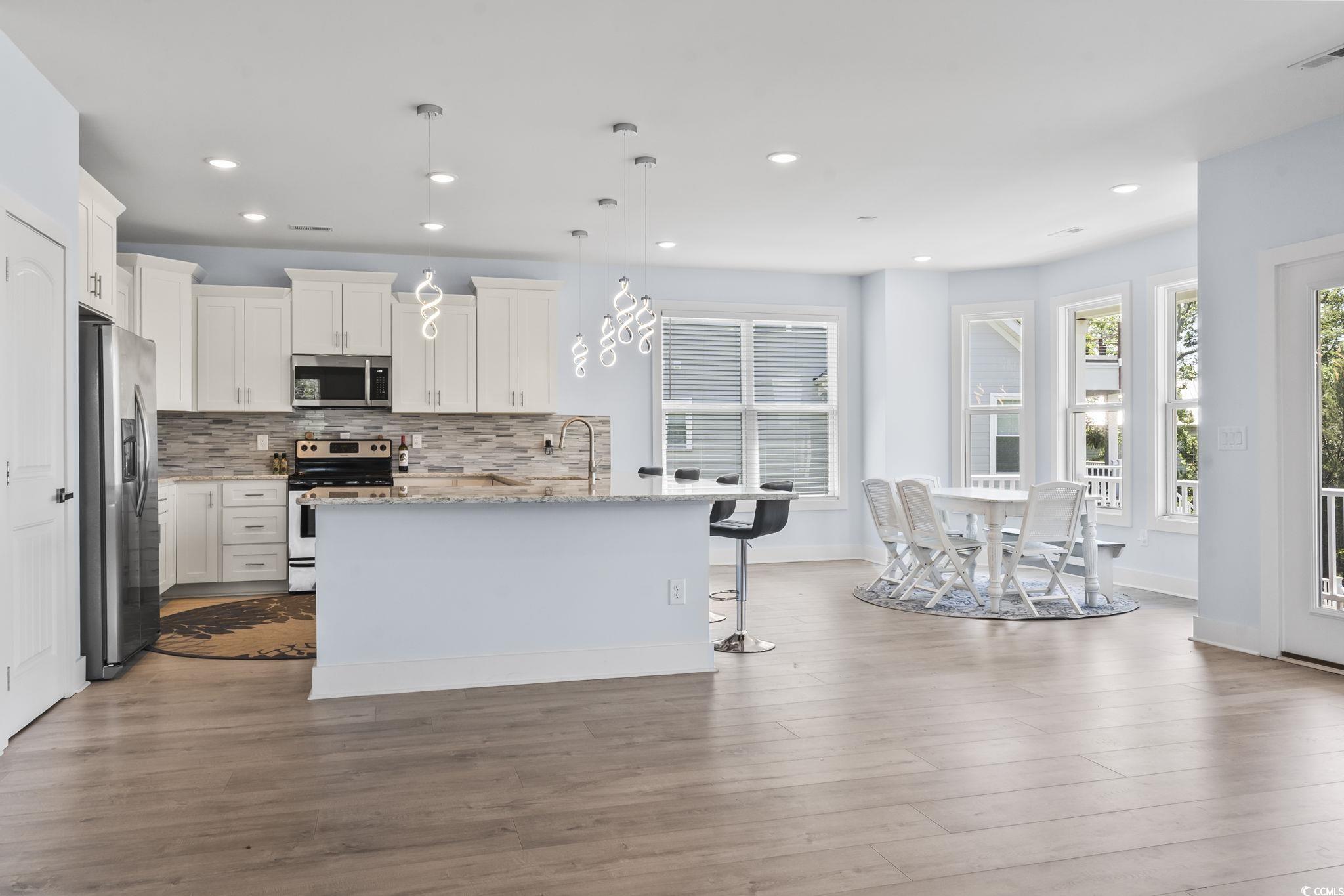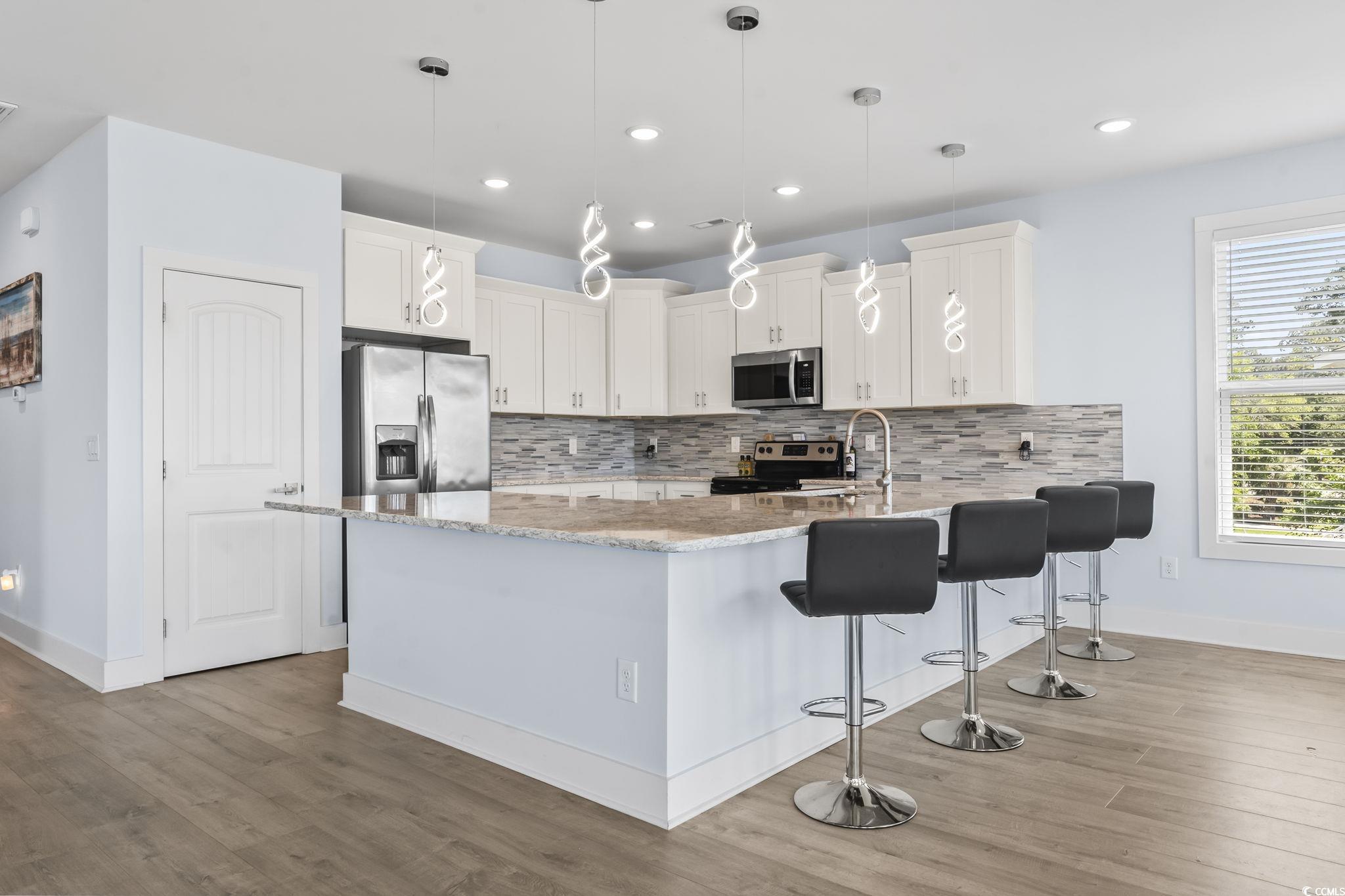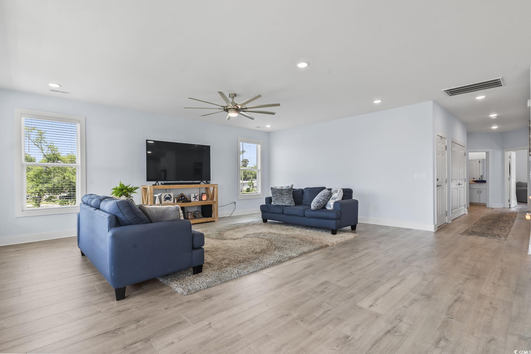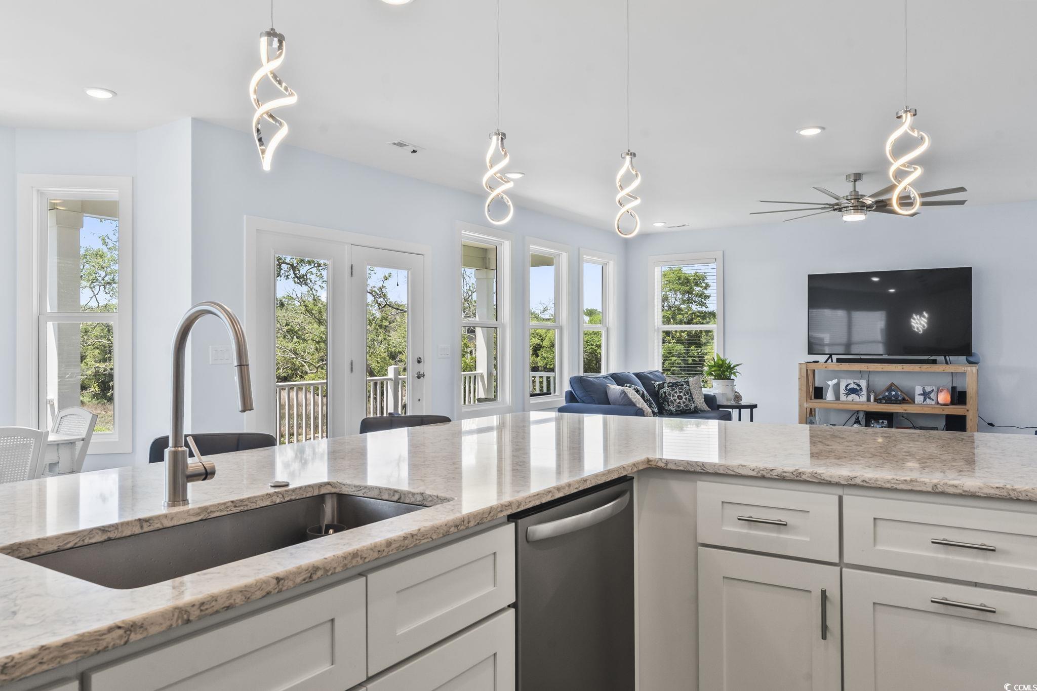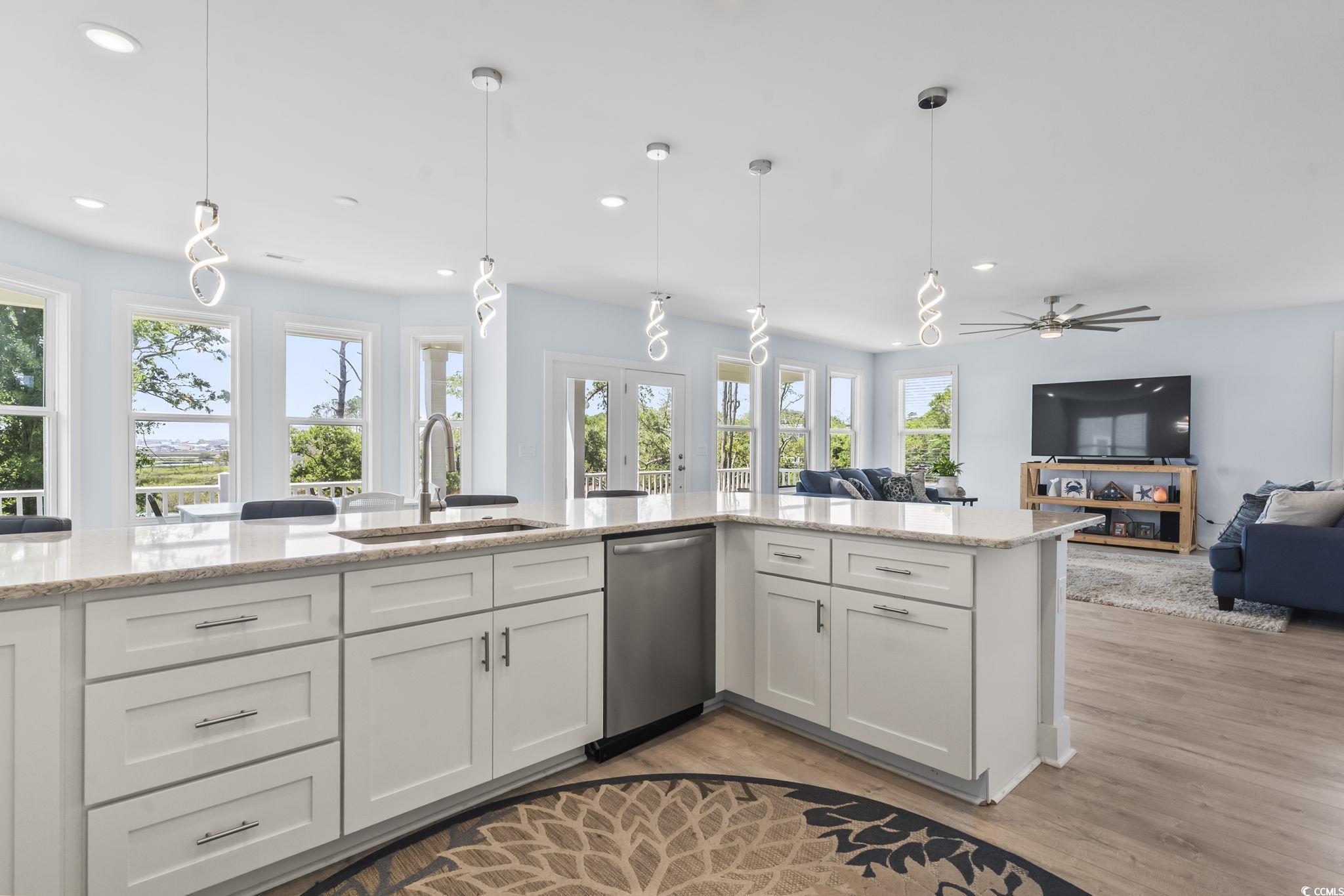 Built in 2022 on the marsh in Garden City with **NO HOA** and ample parking, this low country-style home is just a golf cart ride from Atlantic Ave, the beach, iconic Sam's Corner, and Garden City Pier. Rarely available in this prime location, it features Hardie Plank siding, two full-length porches, one off the master for private sunbathing, the other overlooking the marsh for stunning sunrises and an open floor plan with floor-to-ceiling windows, neutral LVT flooring, white soft-close cabinets, quartz countertops, stainless appliances, a large island, pantry, and dining area with expansive views. All bedrooms include walk-in closets and showers, and the oversized garage/flex space (16'2 x 17'2) includes a full bath. Golf cart to Sanford Cox Park for playground fun, crabbing, BBQs, and peaceful pier fishing, the only thing missing is you. Schedule your showing today and envision the possibilities of calling this place your new home! Square footage is approximate and not guaranteed. Buyer responsible for verification.