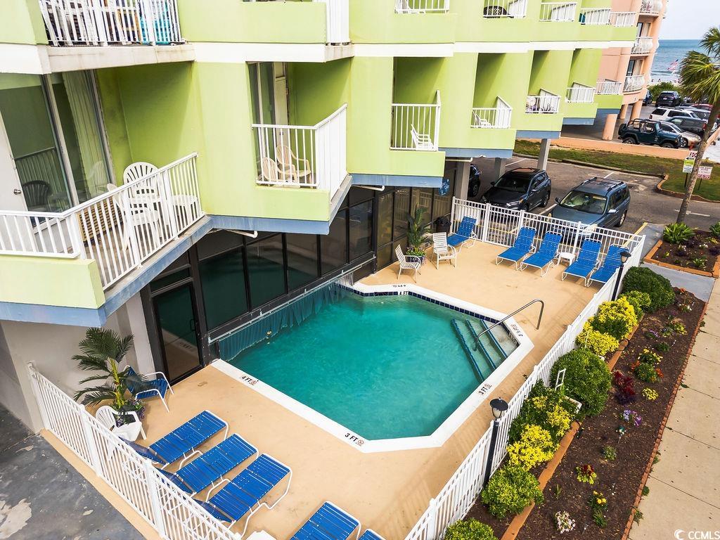 Seller motivated to sell! Located in the north end of Myrtle Beach, enjoy one of the lowest HOAs in the area. The HOA includes electric in the unit, Internet, basic cable, water, sewer and trash, insurance and much more. Making it a great investment property or even for a full-time resident. High GRI from 2024 t0 2025. Also, with a view of the ocean, sit back and enjoy the sunsets and sunrises from your own private balcony. Its hard to beat this price. Heated indoor and outdoor pool, fully stocked kitchenette. This spectacular unit includes a king-size bed, plus a custom sofa with full-size pull-out sleeper w/6inch mattress. Closed in vanity in the bathroom and tile floors throughout. New GE HVAC unit installed in 2019. Owners lock out closet built in 2021. Has been freshly painted with amazing costal colors throughout. Located in the lobby is the well-known Aqua Petite Spa which provides spa and massage services at great prices. Steps from the beach and the famous St. Clements Bar! Broadway at the Beach, Barefoot Landing, The Market Common, shopping, entertainment and restaurants are all nearby. Book your showing today!