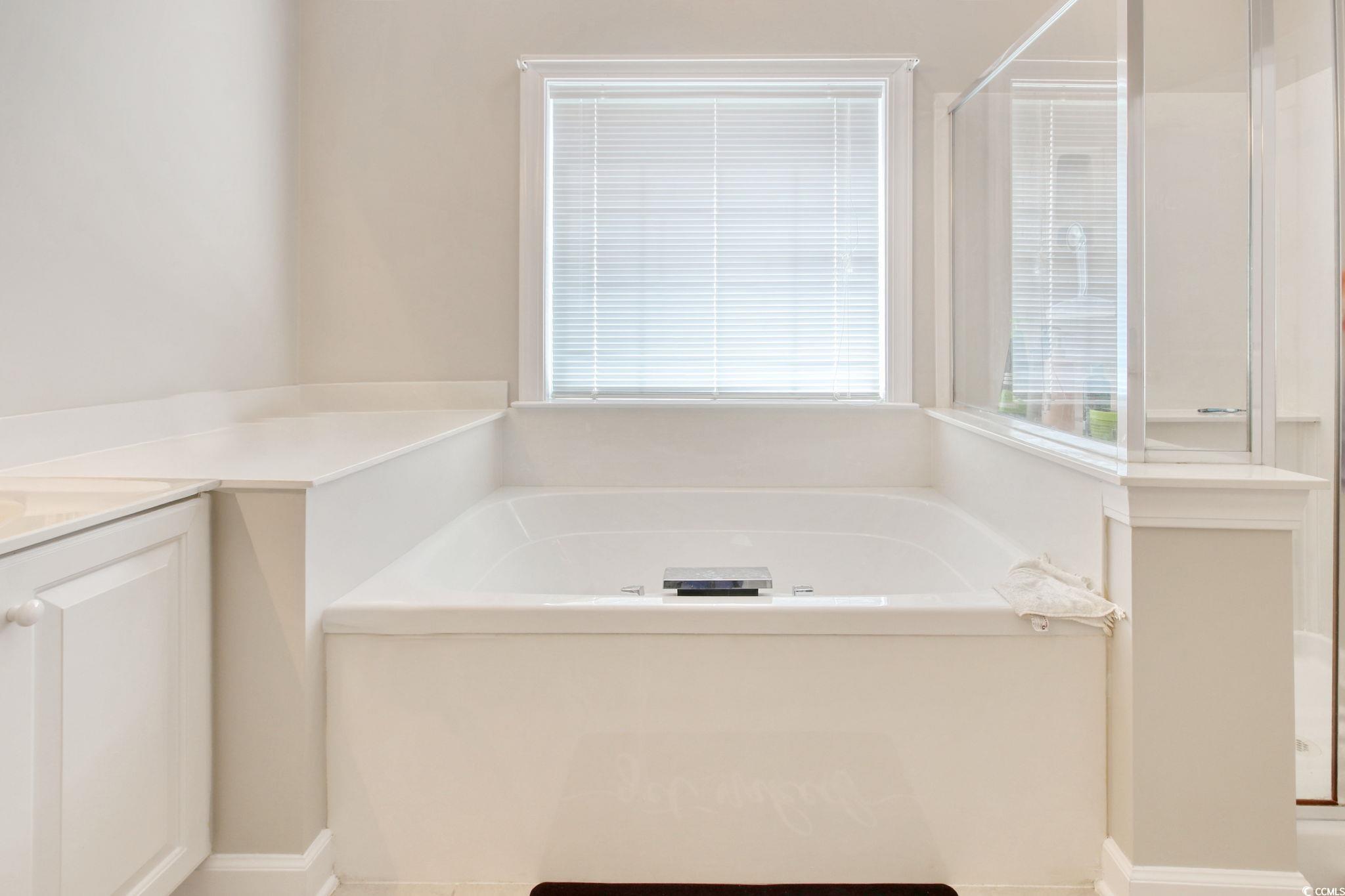 Interior Features: Attic, CeilingFans, DualSinks, Fireplace, JettedTub, MainLevelPrimary, PullDownAtticStairs, PermanentAtticStairs, SplitBedrooms, Skylights, SeparateShower, Vanity, WalkInClosets, WindowTreatments, BreakfastBar, BedroomOnMainLevel, BreakfastArea, KitchenIsland, SolidSurfaceCounters