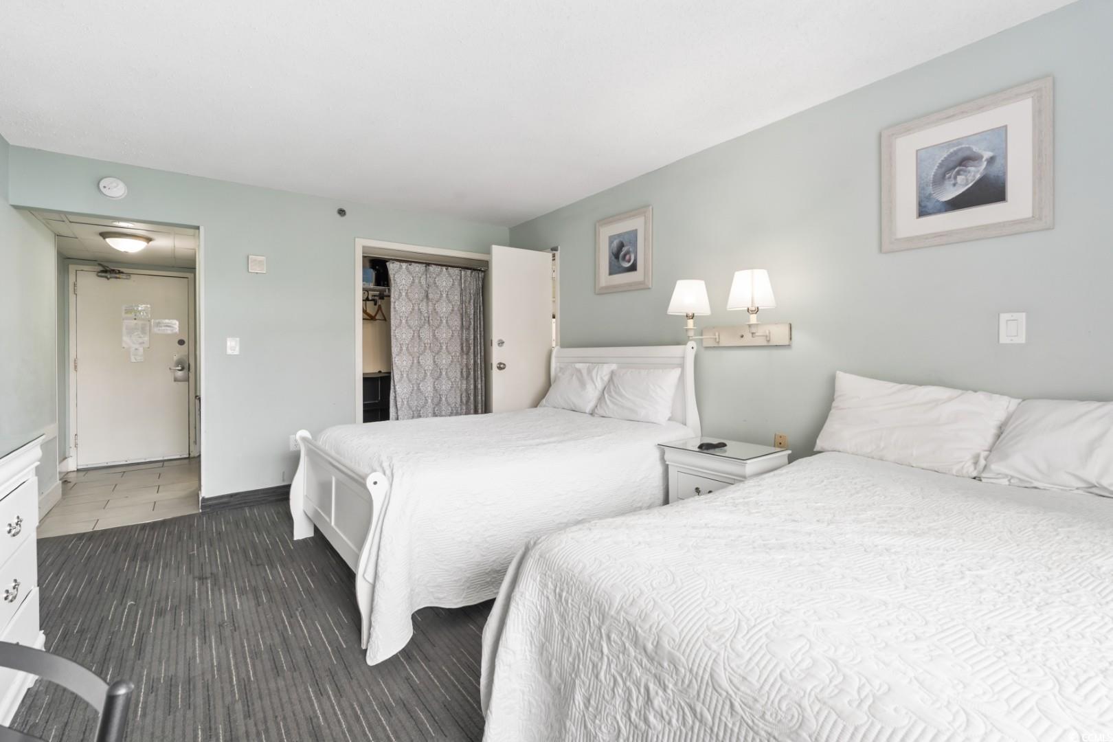 This presents an exceptional opportunity to acquire a fully furnished lockout unit at Sand Dunes Resort. The lockout offers versatility, allowing you to rent the units as a two-bedroom, two-bathroom complex or rent them individually. The larger unit boasts a spacious bedroom with two beds, a full bathroom featuring double vanities, a complete kitchen, a bar, a living room, a washer/dryer, and a balcony overlooking the pools and ocean. The smaller unit comprises two beds, a full bathroom with a mini-fridge and microwave, and an ocean view balcony. Both units are equipped with newly installed porcelain tile flooring, new bathroom vanities, and fresh paint. You have the flexibility to utilize this unit as your primary residence, vacation property, or leverage its proven rental history to generate substantial investment returns. Sand Dunes Resort boasts an array of desirable amenities, including multiple pools (both indoor and outdoor), hot tubs, an arcade, a convenience store, a restaurant, and an on-site parking garage.