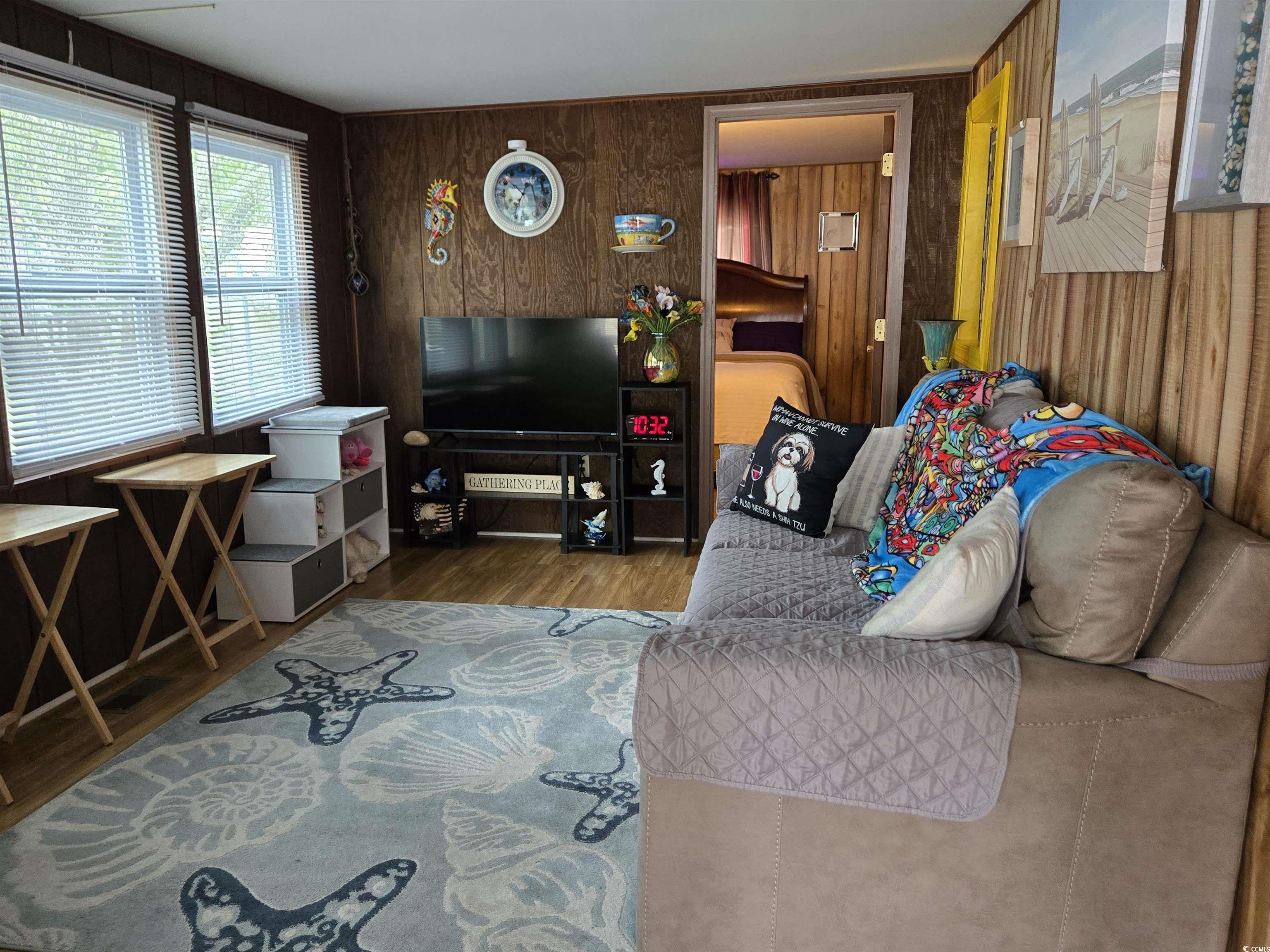 The marsh invites you to make this beautiful beach home yours! Fully furnished and move-in ready, it is more than accommodating with a stylish surfboard outdoor shower after a long relaxing day at the beach. Large outdoor storage for your golf cart, fishing rods, and beach gear. A bonus Carolina room and a 3rd bedroom has been added to the single wide to give you extra space for family and guests. Waterford Oaks community is within walking distance to Garden City Beach, all while giving you the benefit of having access to the community gazebo, fishing pier, and boat ramp. Right around the corner from the marsh, this is a beautiful and serene location, convenient to shopping, restaurants, medical facilities, and endless entertainment! This won't last long, make an offer so you can call it home!! Move in special going on now. Lease may be able to be paid monthly for the 1st year!