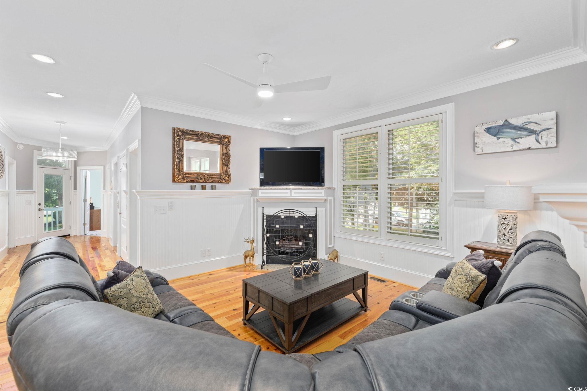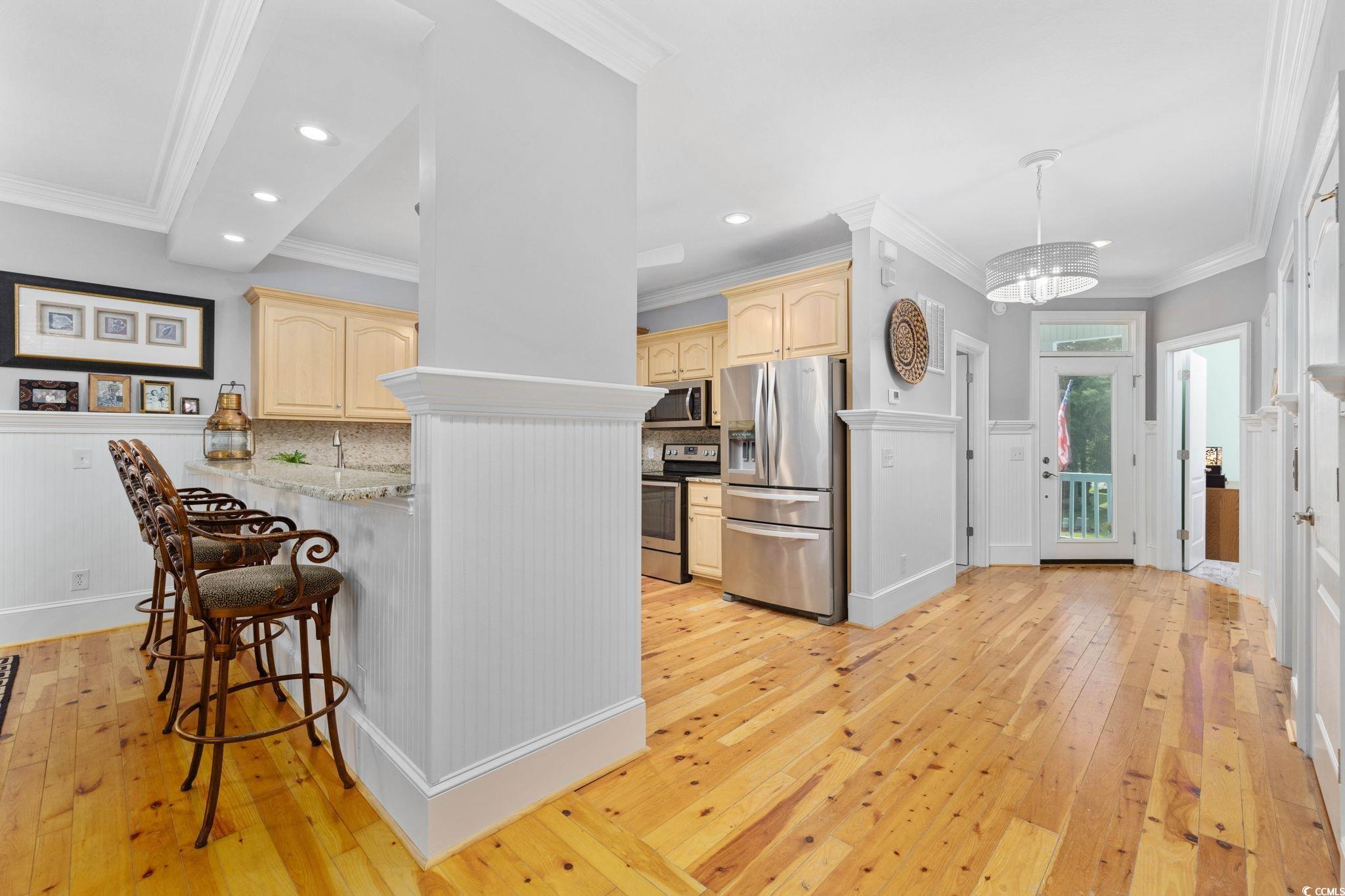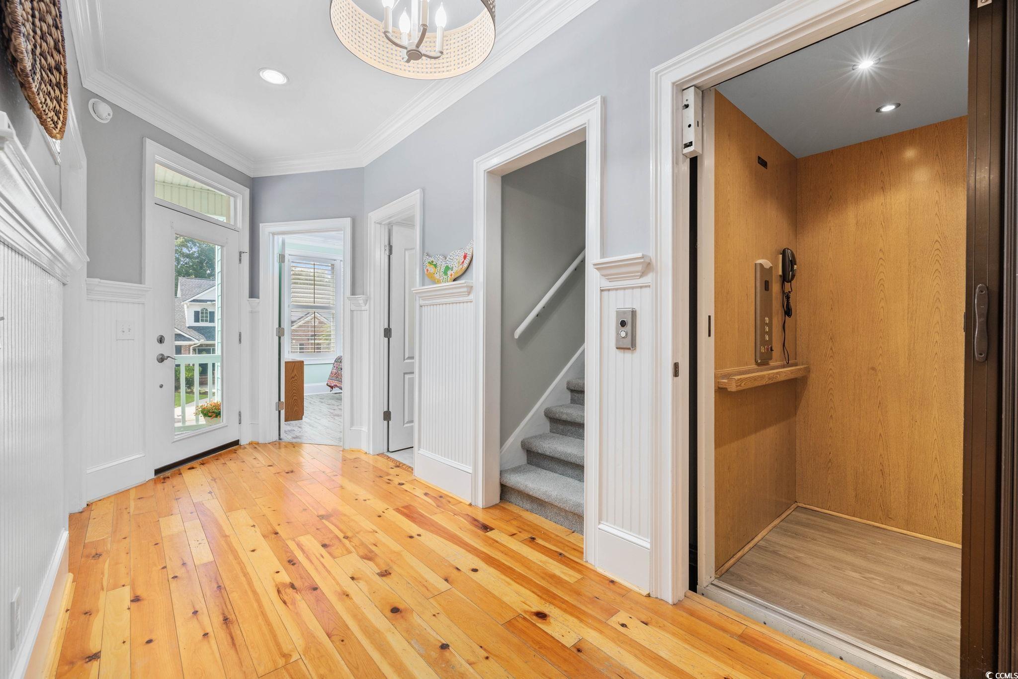 HOLIDAY OPEN HOUSE WEEKEND - SATURDAY DECEMBER 13TH @12-3pm and SUNDAY DECEMBERC 14TH @ 1-4pm. Coastal Luxury Meets Everyday Comfort - RAISED BEACH HOUSE with ELEVATOR set alongside of the HISTORIC MURRELLS INLET MARSHWALK steps from the tranquil waters of the inlet. Well appointed 3 Bedroom & 3 Full Baths boasting; WRAPAROUND PORCH on 2nd floor and a GARAGE LARGE ENOUGH to STORE a BOAT & VEHICLE at the same time! The massive garage has a CLIMATE CONTROLLED HOME OFFICE and BUILT IN STORAGE maximizing use. Moving through the homes interior you will find; WHOLE HOME CENTRAL VACUUM SYSTEM, KNOTTY PINE FLOORS, a bright & welcoming OPEN-CONCEPT FLOOR PLAN paired with a spacious kitchen, GRANITE COUNTERTOPS & BREAKFAST BAR, STAINLESS STEEL APPLIANCES and quaint coastal-style cabinetry. The Master Suite & Ensuite can be found on the 3rd FLOOR - a QUICK EFFORTLESS ELEVATOR RIDE to the best views in the house. The owner has paid great attention to detail by adding a WETBAR / COFFEE & MINI FRIDGE AREA in the hall area off the master - making sure your coastal living experience is as effortless as it is luxurious! Grab your drink of choice and head out to your PRIVATE BALCONY to enjoy some R&R and the gentle sea breeze. Inside your master suite you will find a spacious WALK-IN CLOSET and a well-appointed spa-like En-suite designed for both relaxation & convenience. Highlights include; a DEEP SOAKING JETTED SPA TUB & SEPARATE WALK-IN SHOWER, BLUETOOTH CEILING EXHAUST FAN, GRANITE DOUBLE SINKS, LINEN CLOSET and LED MIRRORS. Step outside to tour the low-maintenance outdoor yard with IRRIGATION and mature palm trees or stroll over to the COMMUNITY POOL and meet some of the neighbors. Just minutes from sandy beaches, marinas, live music year round, boutique shopping, local dining & Fresh Seafood (Murrells Inlet is the Seafood Capital of SC), Charter fishing with Murrells Inlet Outpost, kayaking, Brookgreen Gardens and Huntington State Park. The only thing missing is you and the memories you will create, schedule your showing today and become a member of one of the most desirable inlet communities in the area ! The Inlet is Calling......