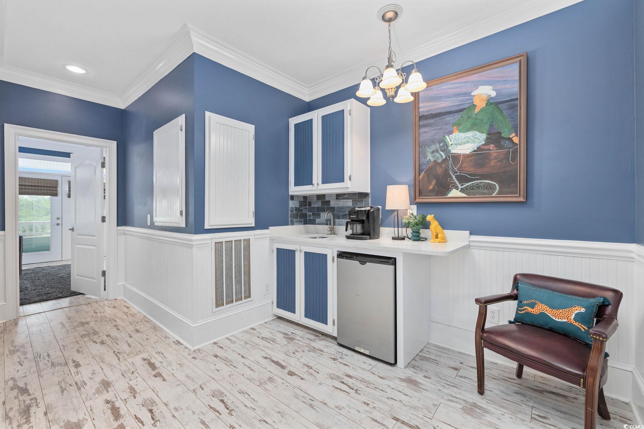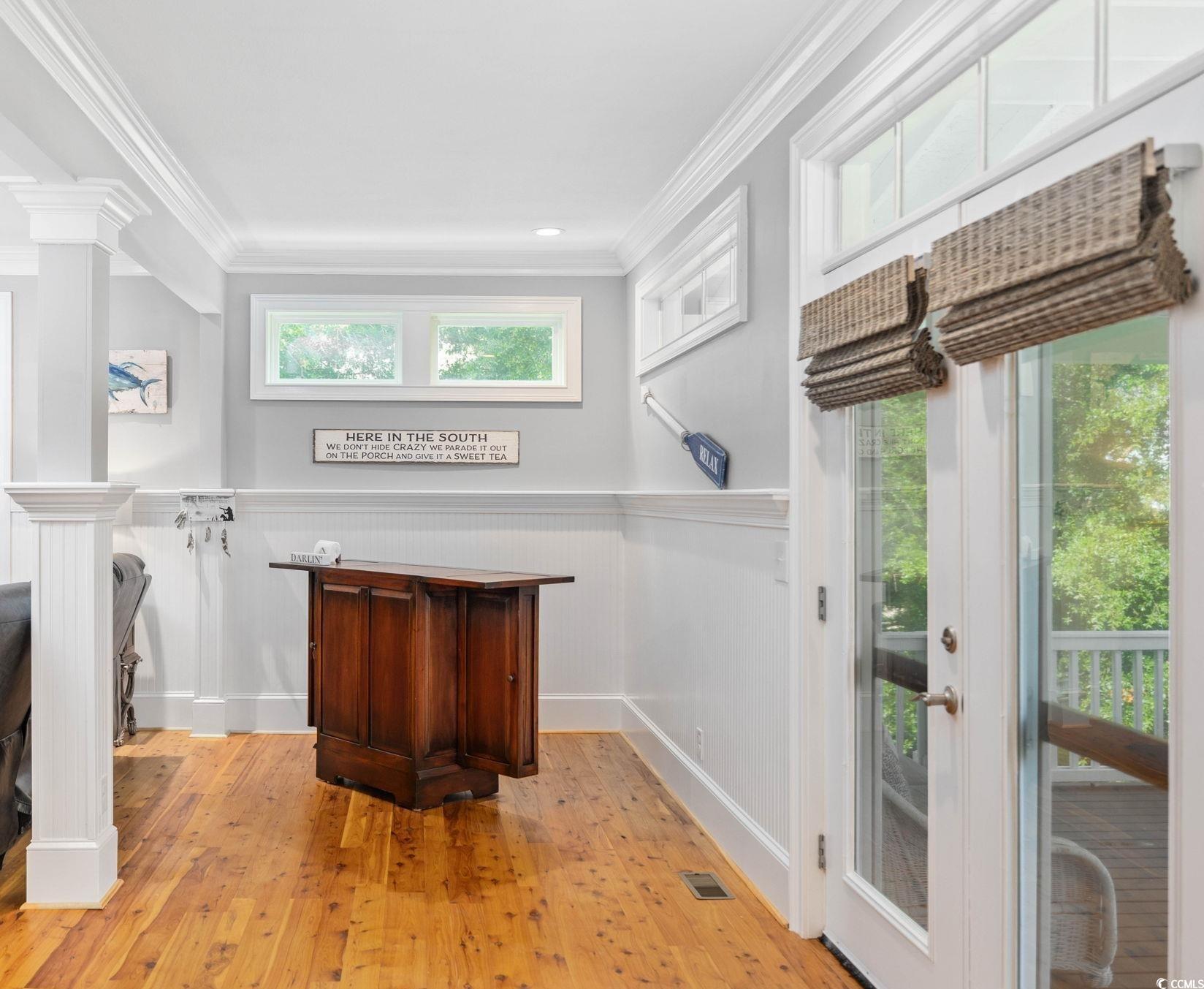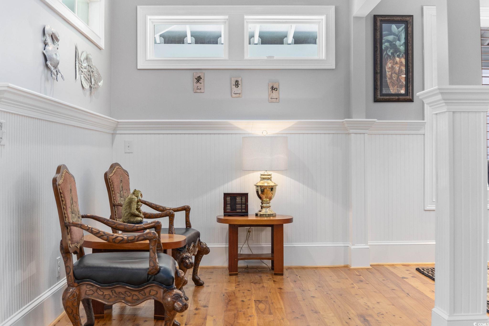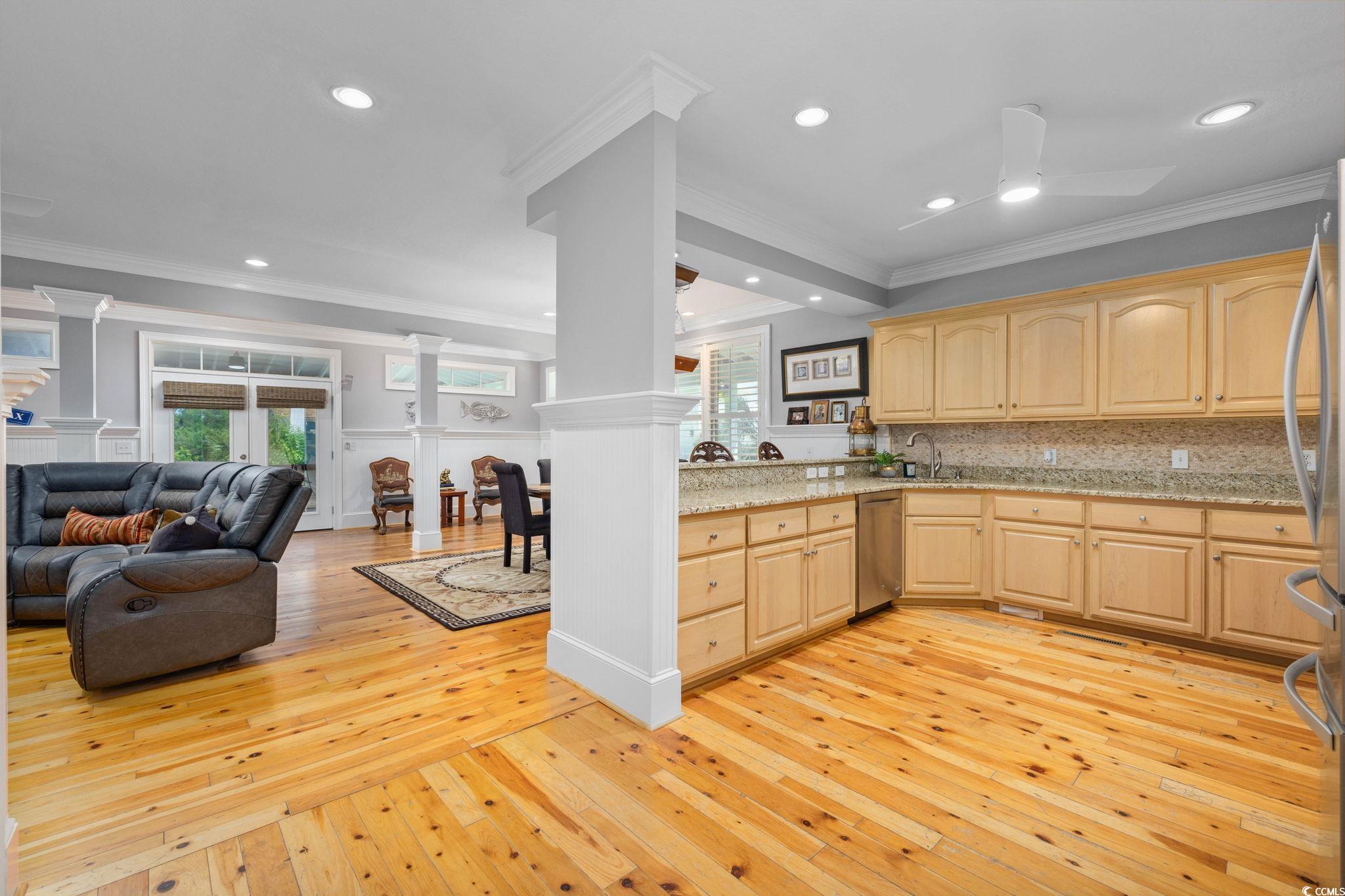 HOLIDAY OPEN HOUSE WEEKEND - SATURDAY DECEMBER 13TH @12-3pm and SUNDAY DECEMBERC 14TH @ 1-4pm. Coastal Luxury Meets Everyday Comfort - RAISED BEACH HOUSE with ELEVATOR set alongside of the HISTORIC MURRELLS INLET MARSHWALK steps from the tranquil waters of the inlet. Well appointed 3 Bedroom & 3 Full Baths boasting; WRAPAROUND PORCH on 2nd floor and a GARAGE LARGE ENOUGH to STORE a BOAT & VEHICLE at the same time! The massive garage has a CLIMATE CONTROLLED HOME OFFICE and BUILT IN STORAGE maximizing use. Moving through the homes interior you will find; WHOLE HOME CENTRAL VACUUM SYSTEM, KNOTTY PINE FLOORS, a bright & welcoming OPEN-CONCEPT FLOOR PLAN paired with a spacious kitchen, GRANITE COUNTERTOPS & BREAKFAST BAR, STAINLESS STEEL APPLIANCES and quaint coastal-style cabinetry. The Master Suite & Ensuite can be found on the 3rd FLOOR - a QUICK EFFORTLESS ELEVATOR RIDE to the best views in the house. The owner has paid great attention to detail by adding a WETBAR / COFFEE & MINI FRIDGE AREA in the hall area off the master - making sure your coastal living experience is as effortless as it is luxurious! Grab your drink of choice and head out to your PRIVATE BALCONY to enjoy some R&R and the gentle sea breeze. Inside your master suite you will find a spacious WALK-IN CLOSET and a well-appointed spa-like En-suite designed for both relaxation & convenience. Highlights include; a DEEP SOAKING JETTED SPA TUB & SEPARATE WALK-IN SHOWER, BLUETOOTH CEILING EXHAUST FAN, GRANITE DOUBLE SINKS, LINEN CLOSET and LED MIRRORS. Step outside to tour the low-maintenance outdoor yard with IRRIGATION and mature palm trees or stroll over to the COMMUNITY POOL and meet some of the neighbors. Just minutes from sandy beaches, marinas, live music year round, boutique shopping, local dining & Fresh Seafood (Murrells Inlet is the Seafood Capital of SC), Charter fishing with Murrells Inlet Outpost, kayaking, Brookgreen Gardens and Huntington State Park. The only thing missing is you and the memories you will create, schedule your showing today and become a member of one of the most desirable inlet communities in the area ! The Inlet is Calling......