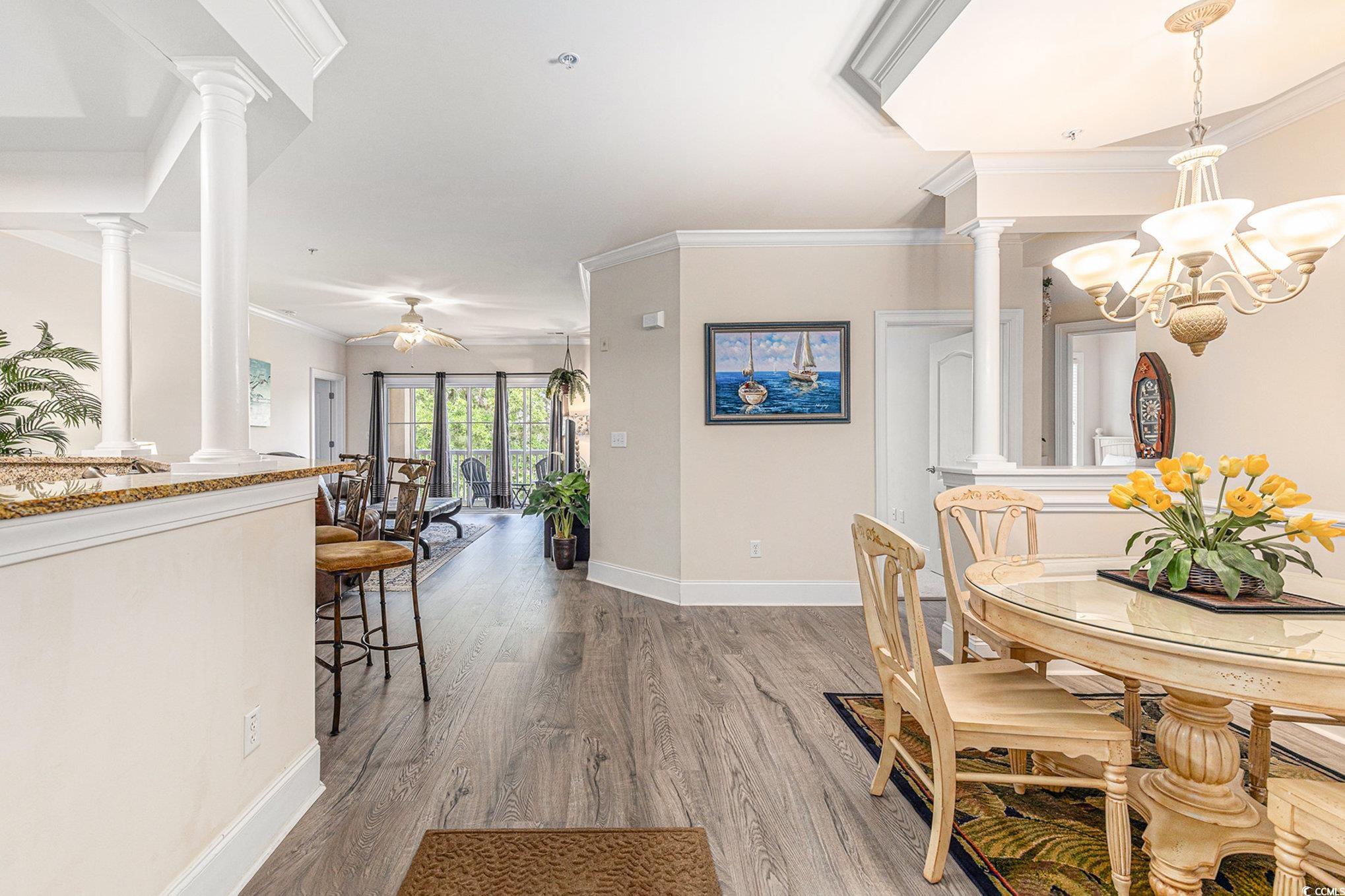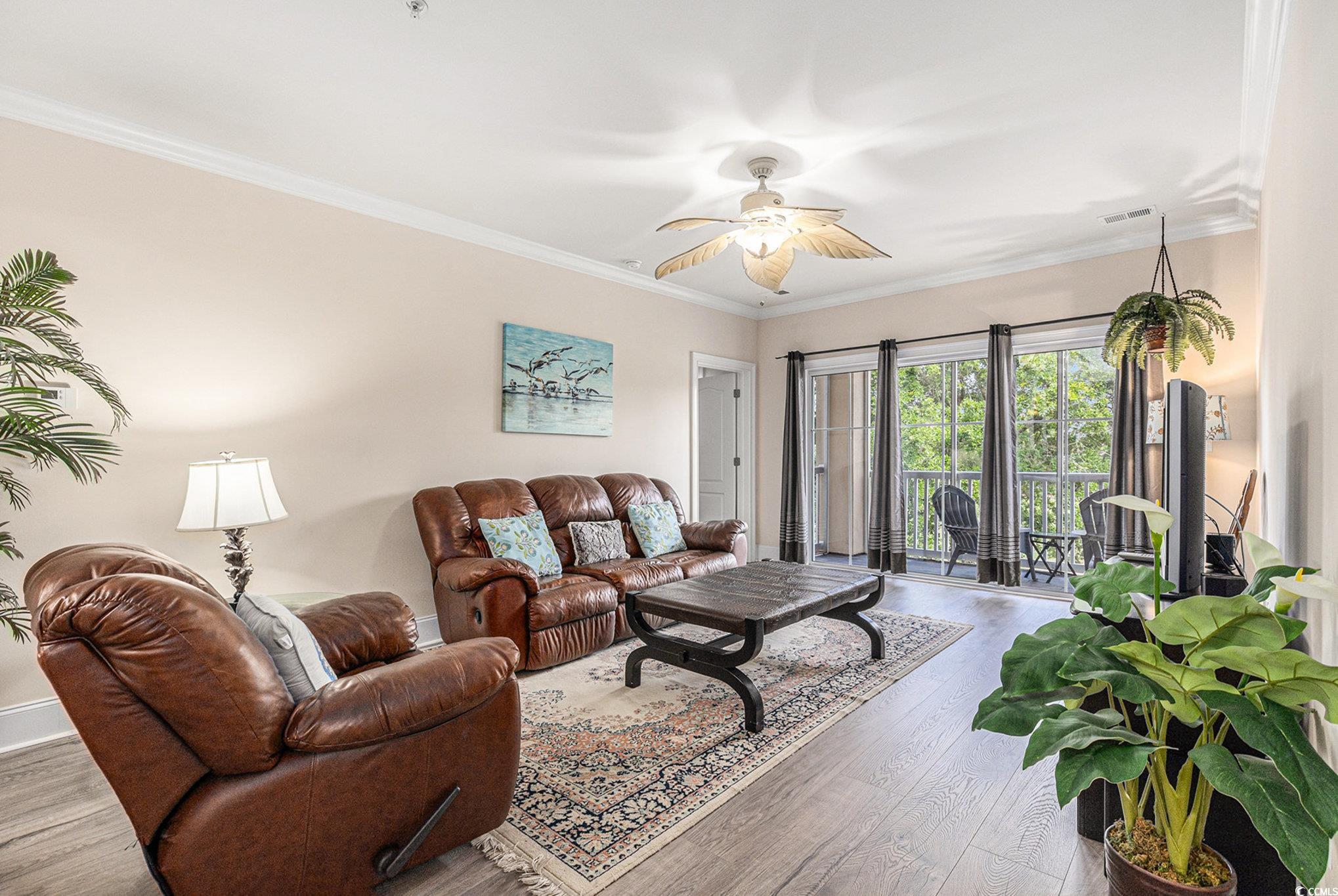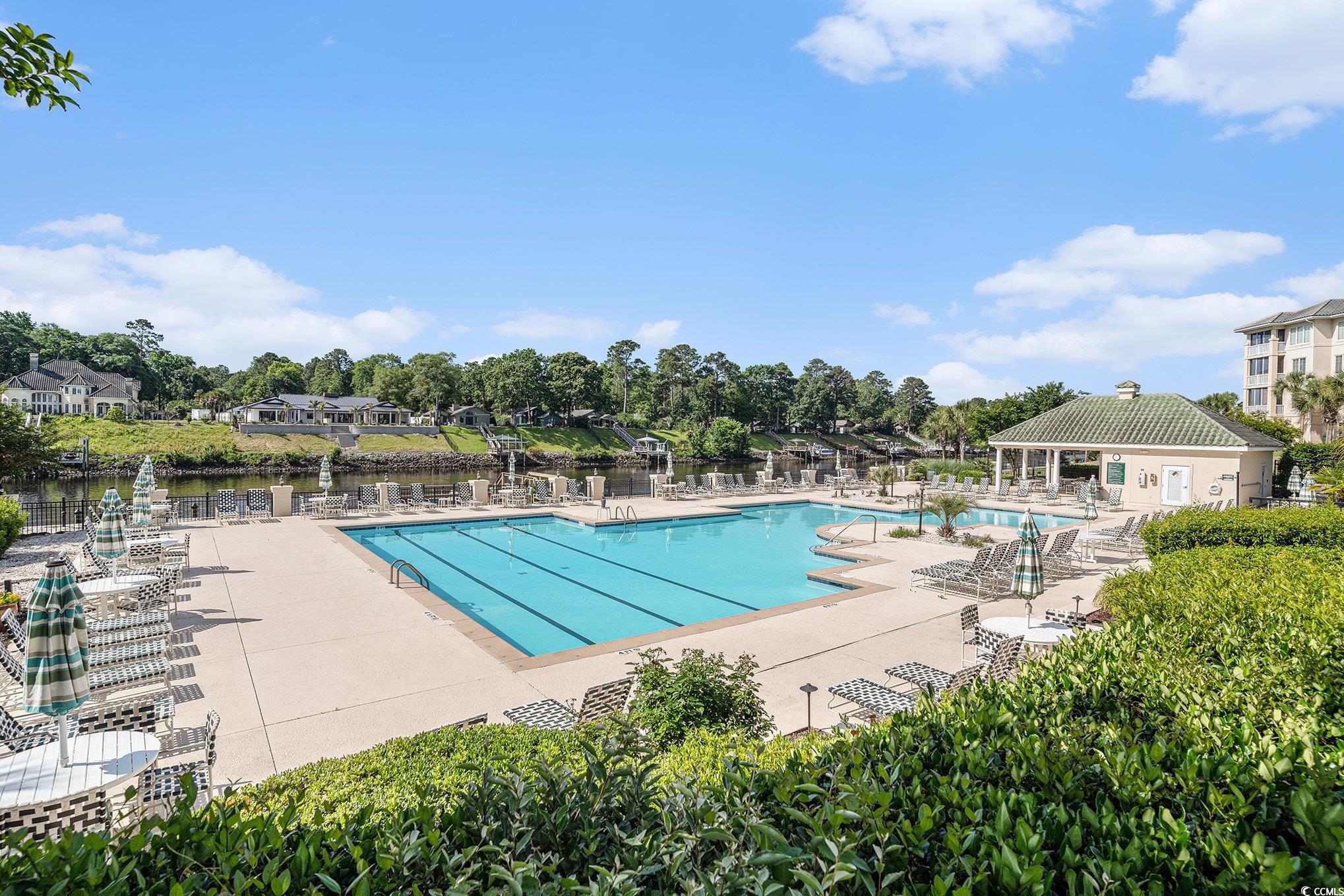 Experience luxury living with a direct golf course view in this elegant 3-bedroom, 2-bath condo at the gated Edgewater community within Barefoot Resort. Transferable golf membership! This fully furnished residence features an open floor plan, granite countertops, stainless steel appliances, walk-in closets, and a private screened-in balcony offering picturesque views of the Greg Norman golf course 15th hole. The unit also includes an assigned garage space and a private storage area conveniently located on the same floor. Lots of natural light and neutral colors. New flooring in main living area. Edgewater residents enjoy exclusive amenities such as a clubhouse, waterway pool, jacuzzi, grilling area, fitness center, day dock, and a scenic boardwalk along the Intracoastal Waterway. As part of Barefoot Resort, homeowners have access to four championship golf courses, a deep-water marina, miles of walking and biking trails, multiple pools including the states largest saltwater pool, on-site dining, shopping, and a private beachfront cabana with shuttle service.