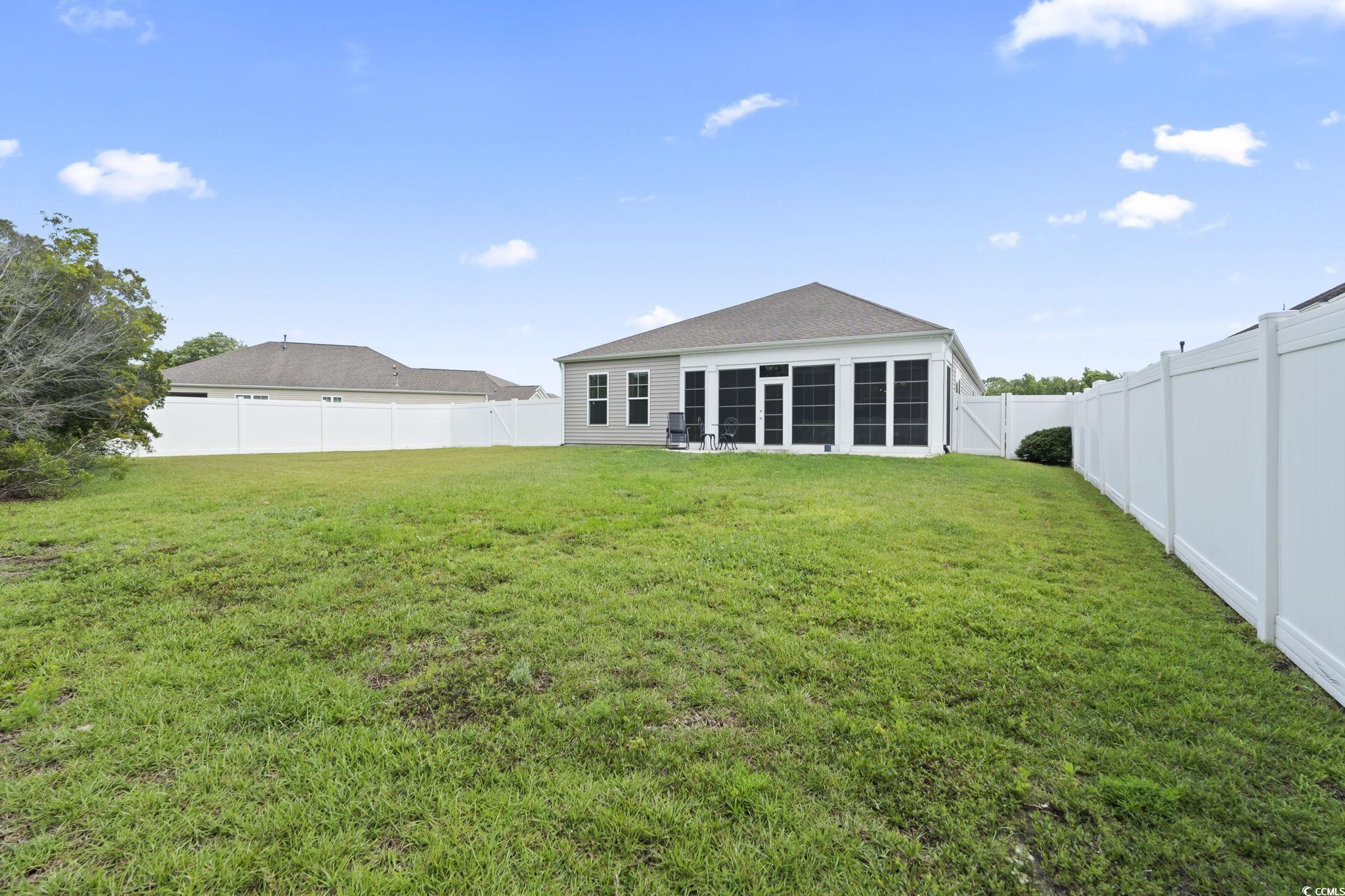 This is a must see 4 bed, 2 bath gem in the highly desirable Tuscany Resort neighborhood! Situated spaciously on .23 acres on the corner of a cul-de-sac, this house has a huge fenced back yard, and sits next to a large easement, granting extra space between neighbors. Walking in the front door you notice a towering foyer with 10 foot ceilings, jumping up to 11 feet as you walk into the main living area. Near the front of the house are two ample bedrooms, with a common area full bath in between. Across the hall is a tasteful mud room, with easy access to the laundry room and attached 2 car garage. In the garage is access to the enormous attic area, offering plenty of storage throughout. Next to the garage is a cozy family room/non-conforming bedroom, shuttered by wide french doors. Walking to the back of the house you notice the sprawling open floor plan, with the living area, dining area, and kitchen all within convenient reach of one another. The kitchen features gas appliances, a large island, and a wonderful walk-in pantry. Off of the living area is the massive master suite, featuring plenty of storage and living space in the both the bedroom and bathroom. In the back of the house there is a classic Carolina room, perfect for unwinding and enjoying the privacy of the back yard. HOA includes WiFi, amenities, garbage, and general community maintenance. Houses rarely become available in this neighborhood, so come see it soon!