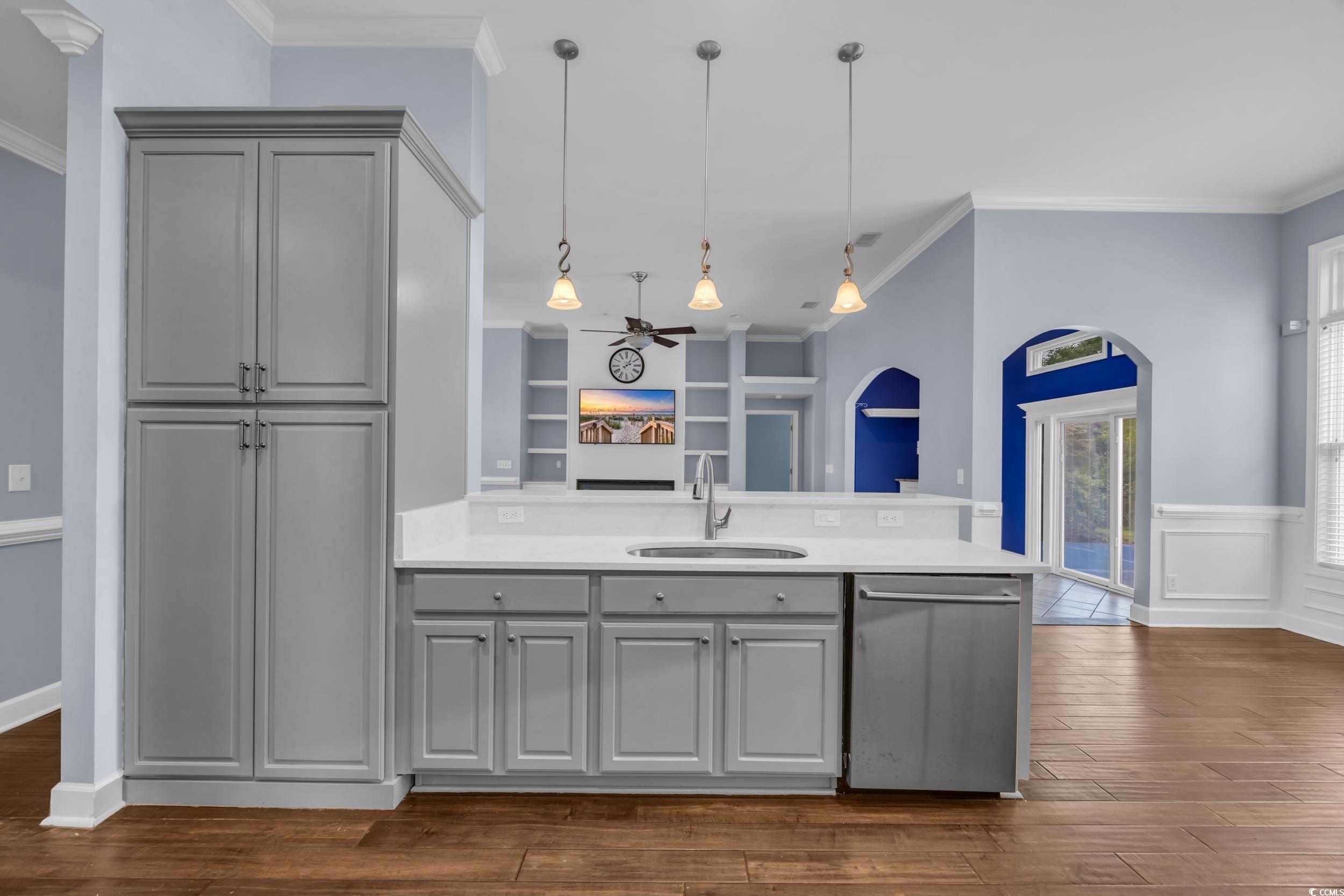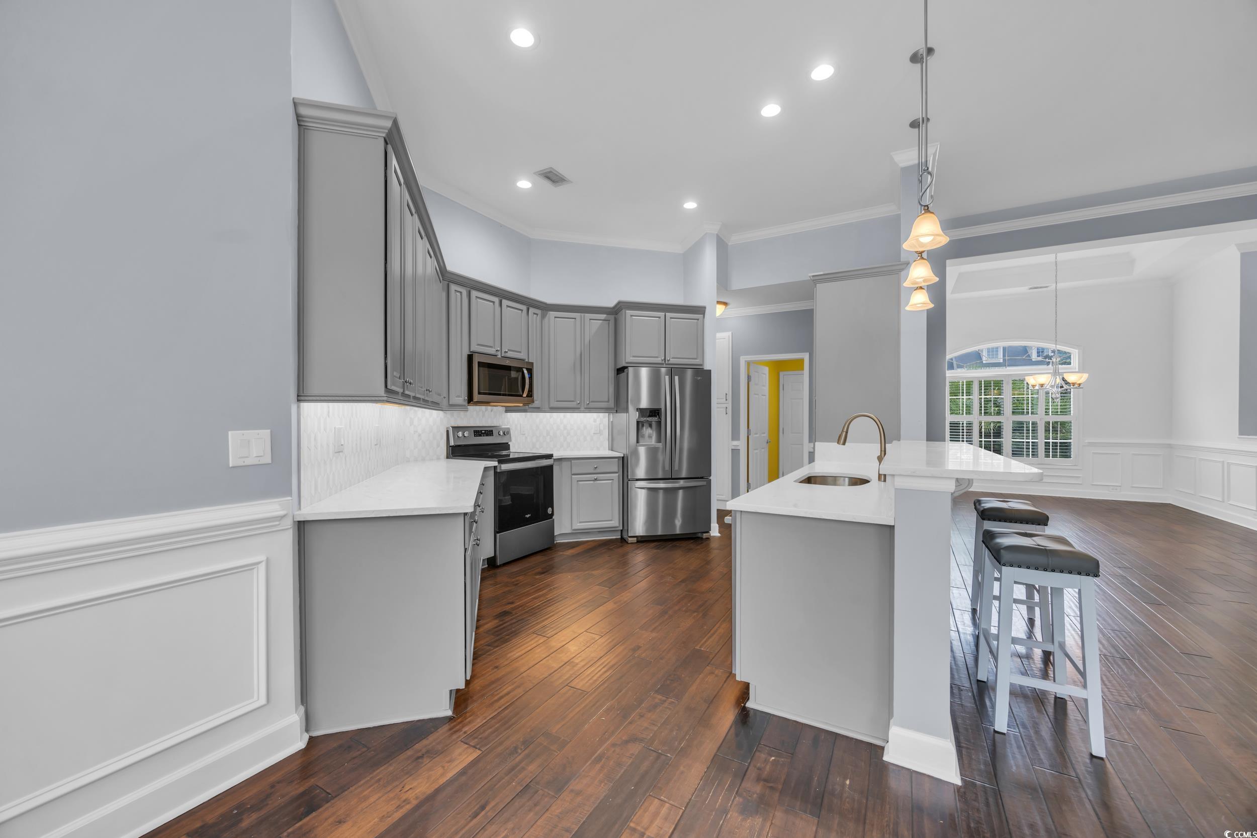 Welcome to this stunning, fully renovated 3 bedroom, 2 bathroom single-level home located in the highly sought-after community of The Farm at Carolina Forest. Every detail of this home has been thoughtfully upgraded to blend modern comfort with timeless style. Step into the brand-new kitchen featuring granite countertops, stainless steel appliances, a custom pantry, pull-out drawers, and dedicated sheet pan storagemaking organization effortless and cooking a joy. The spacious living area showcases a shiplap feature wall with an electric fireplace and custom built-ins, creating a cozy yet elegant space to relax or entertain. Hand-scraped engineered hardwood floors run throughout the main living areas, while the spacious primary suite offers brand-new, plush carpeting for added comfort. The completely remodeled en-suite bath is a spa-like retreat with a glass-enclosed walk-in shower and a custom built-in closet system to keep everything in its place. Additional updates include a newer HVAC system and hot water heater for peace of mind. Outside, mature landscaping offers privacy in the backyardperfect for quiet mornings or evening gatherings. The Farm at Carolina Forest boasts two community pools, a playground, and a clubhouse with bathhouse facilities. Conveniently located near top-rated restaurants, shopping, and just minutes from Myrtle Beachs sandy shores, this home truly has it all.