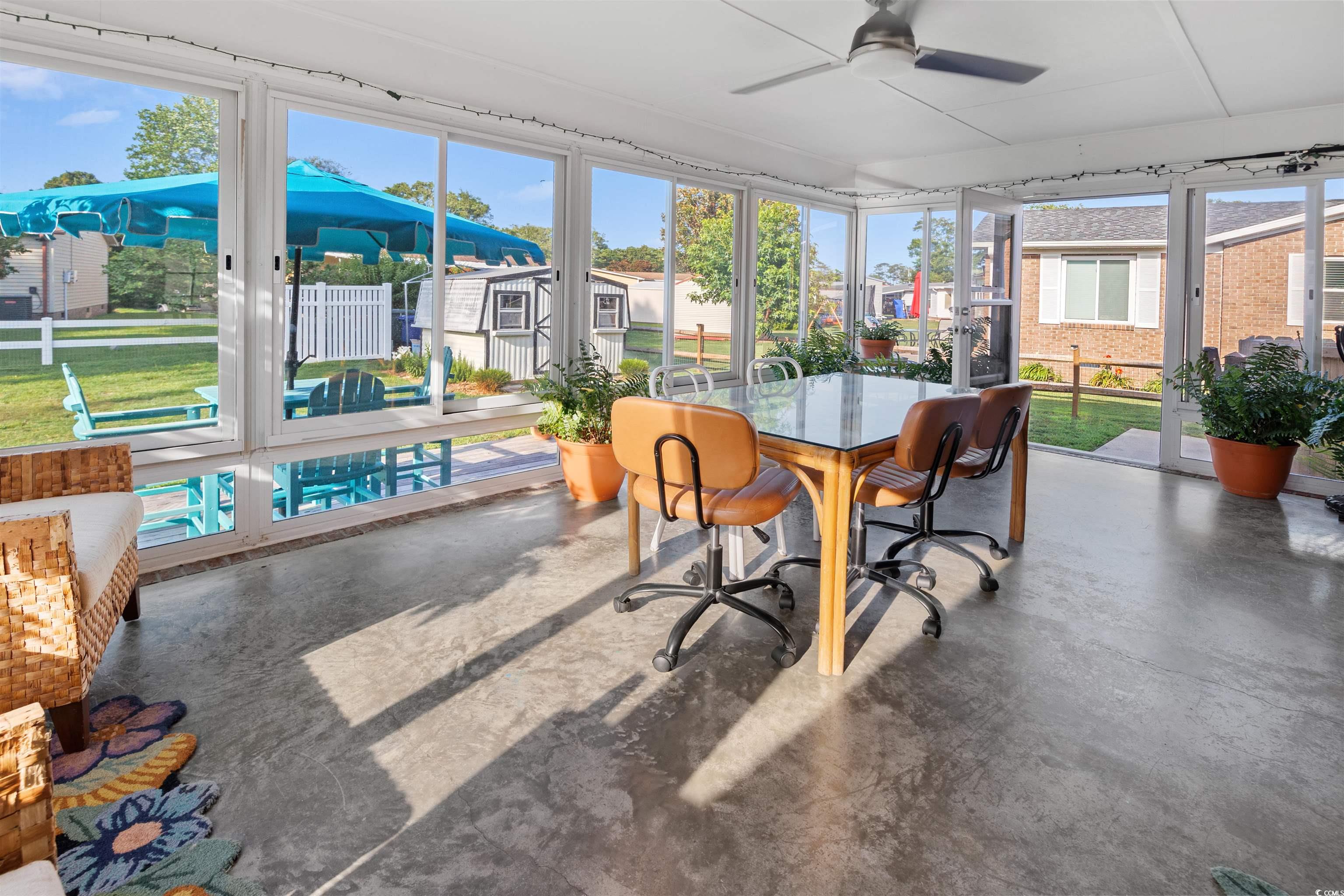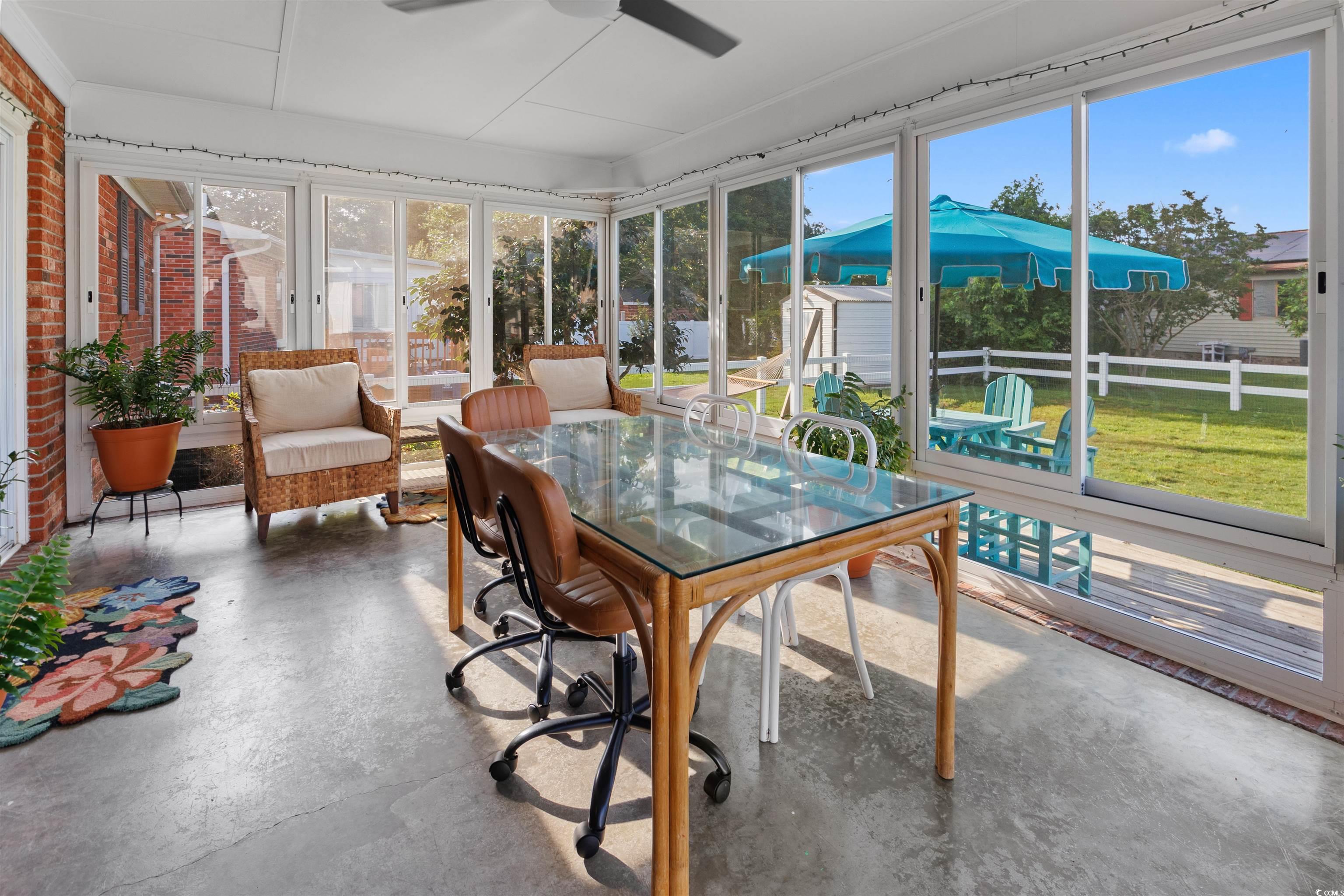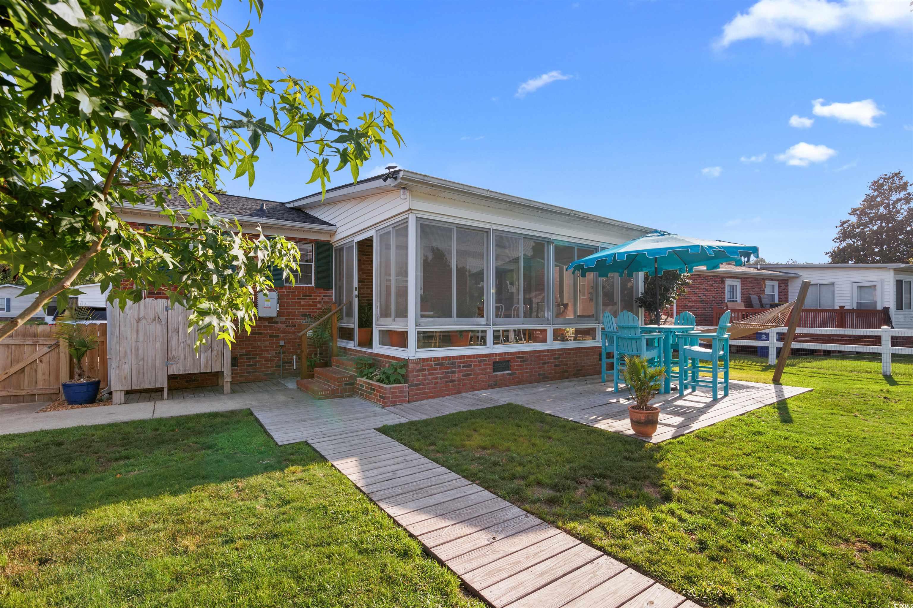 Welcome to your coastal retreat in North Myrtle Beach! This beautiful All-brick 2 bedroom, 2 bath home is just minutes from the beach, offering the perfect blend of relaxation and convenience. Nestled in a vibrant community with a pool, clubhouse, and designated parking for your boat, trailer or RV, this home is ideal for beach lovers and outdoor enthusiasts alike. Inside, you'll find spacious bedrooms and comfortable living spaces. Enjoy the warmth and natural light of the inviting sunroom, ideal for morning coffee or evening unwinding. Outside, a fenced backyard and a storage shed add functionality and privacy. Golf cart optional. With a low HOA this property is perfectly located near top dining, shopping, and entertainment spots. Whether you're looking for a primary residence or a beachside retreat, this one checks all the boxes! Don't miss your chance to live the beach life!